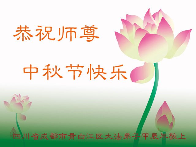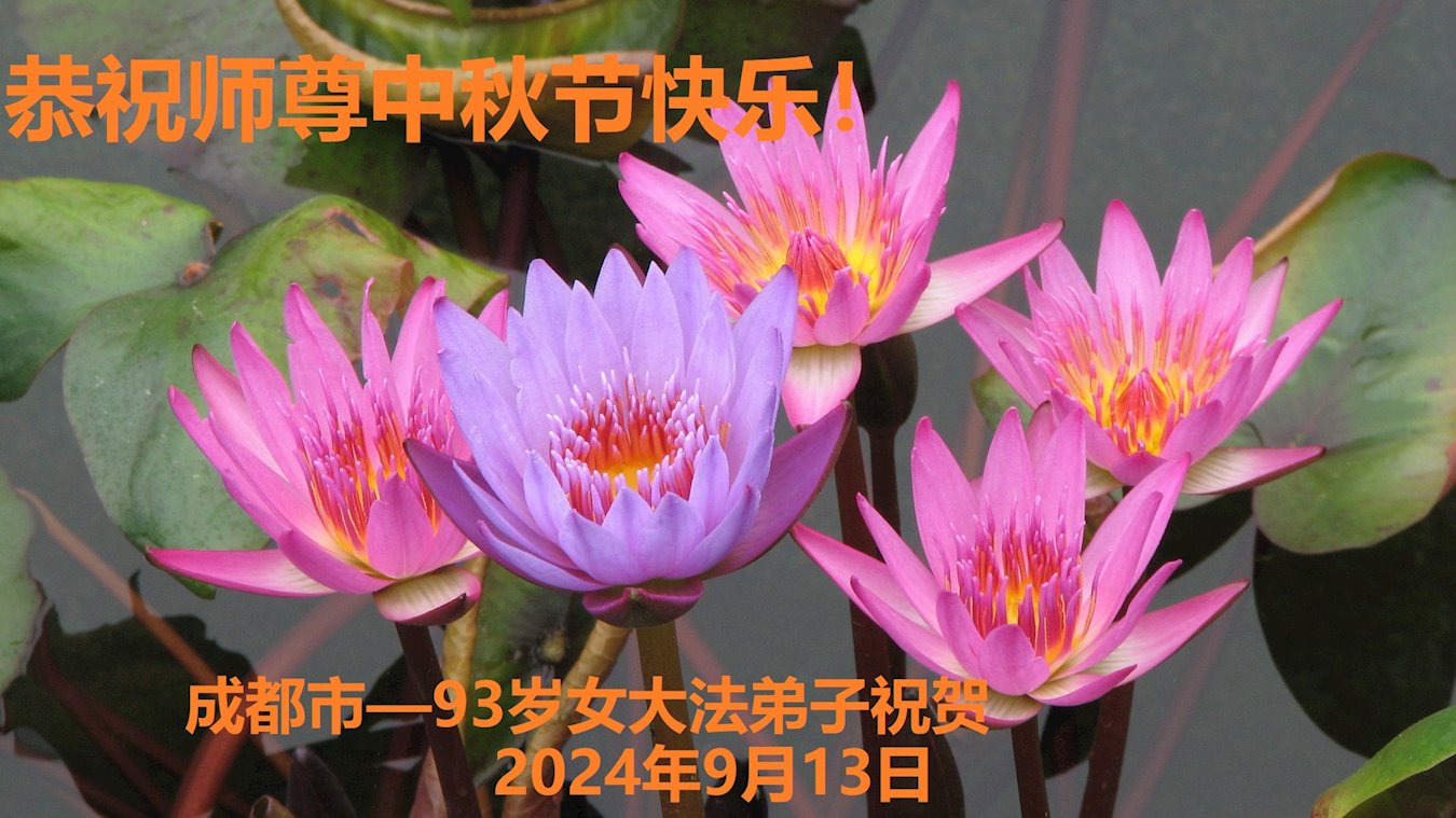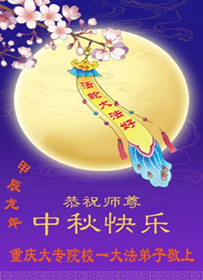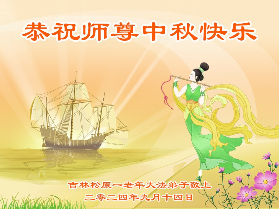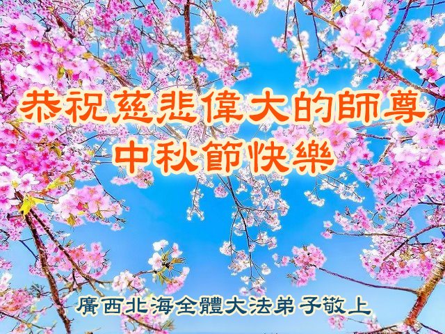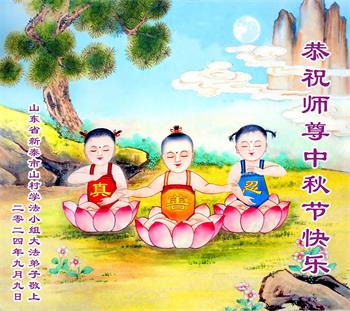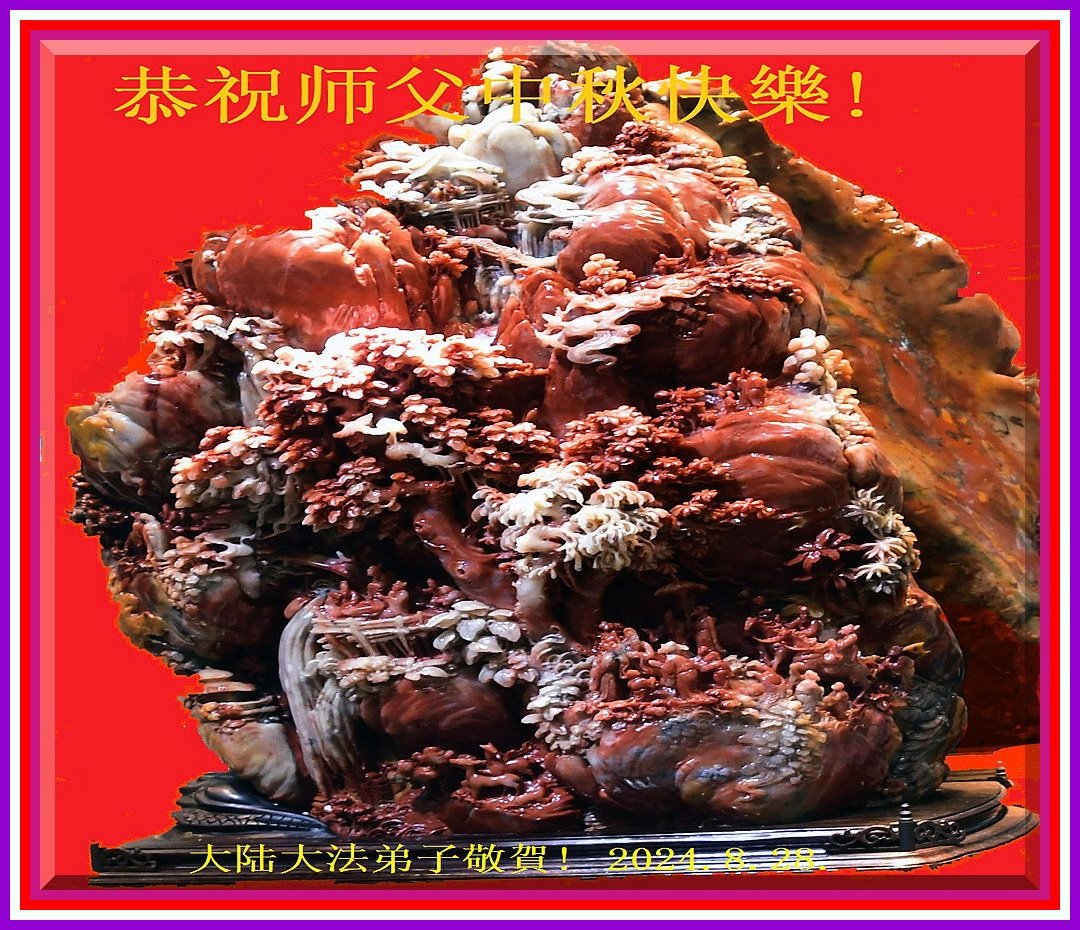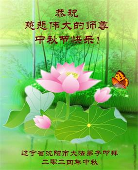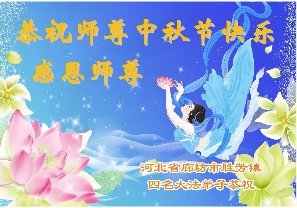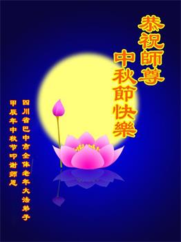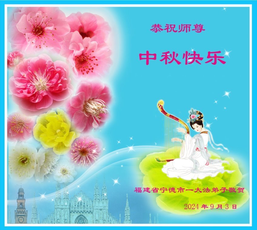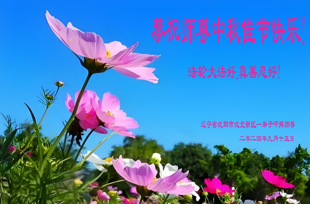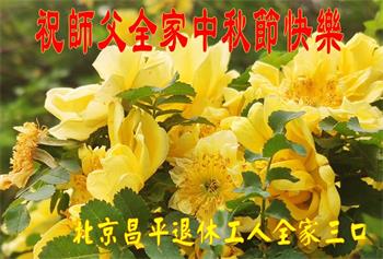 慈悲伟大的师尊好:我们在大陆都曾被邪恶残酷迫害,但我们不仅无悔,且深知能做师父的弟子是我们最大的荣耀与幸福。随师正法、救度众生是我们此生的意义与重任。弟子一定尽心、尽力去做,不负师尊的期望,不负众生的盼望。遥祝慈悲伟大的师尊中秋快乐!盼望师尊早日回大陆。