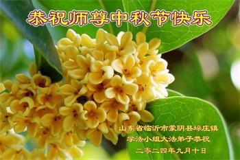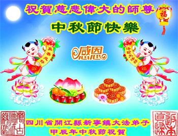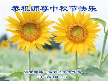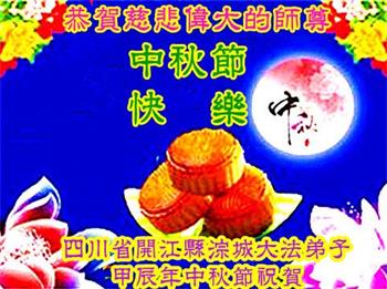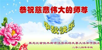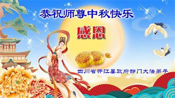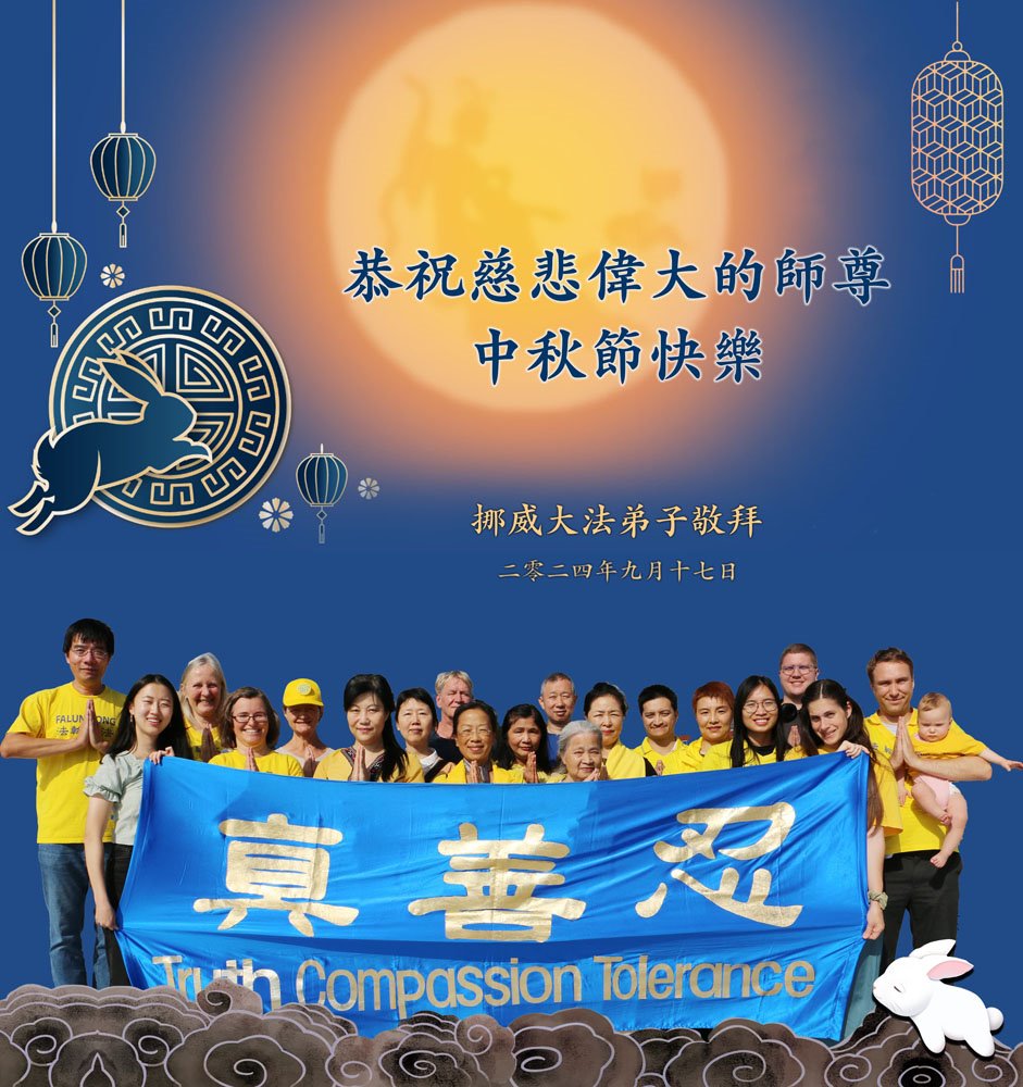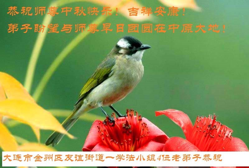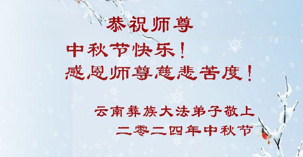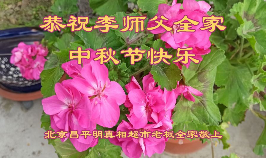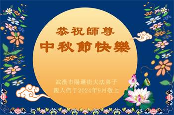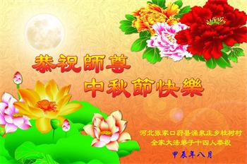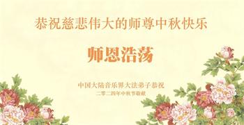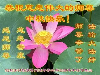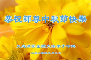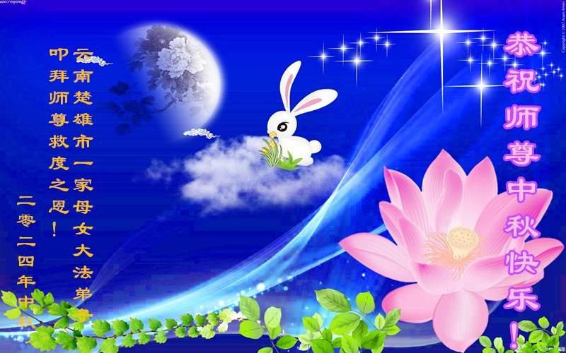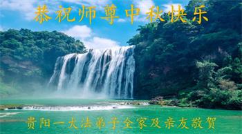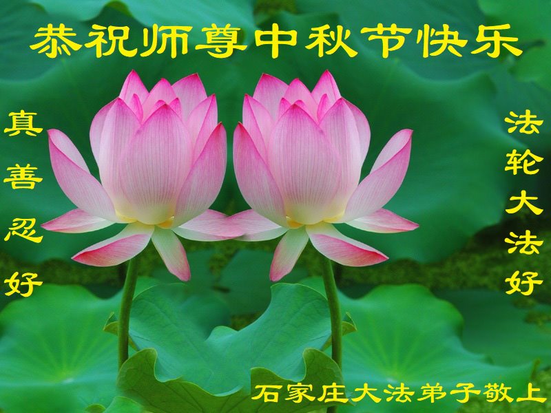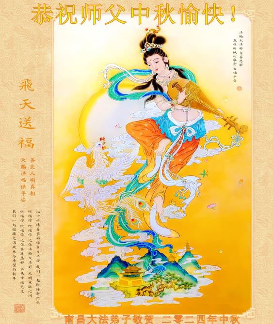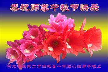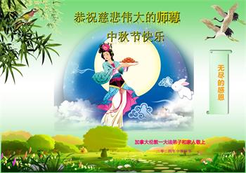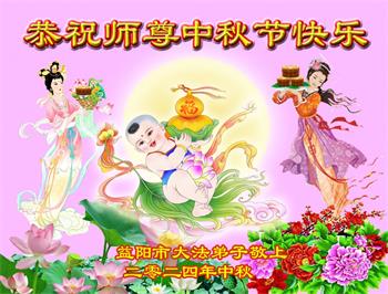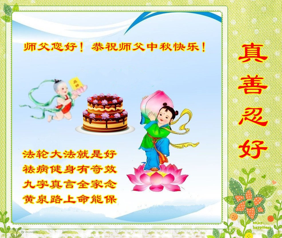 慈悲伟大的师尊好:我们在大陆都曾被邪恶残酷迫害,但我们不仅无悔,且深知能做师父的弟子是我们最大的荣耀与幸福。随师正法、救度众生是我们此生的意义与重任。弟子一定尽心、尽力去做,不负师尊的期望,不负众生的盼望。遥祝慈悲伟大的师尊中秋快乐!盼望师尊早日回大陆。