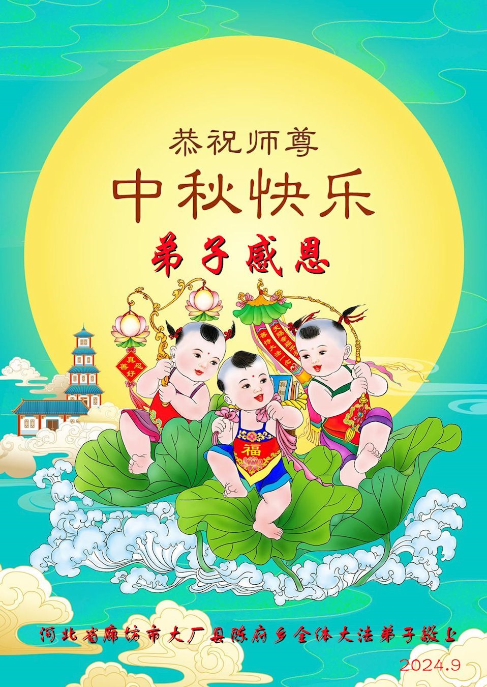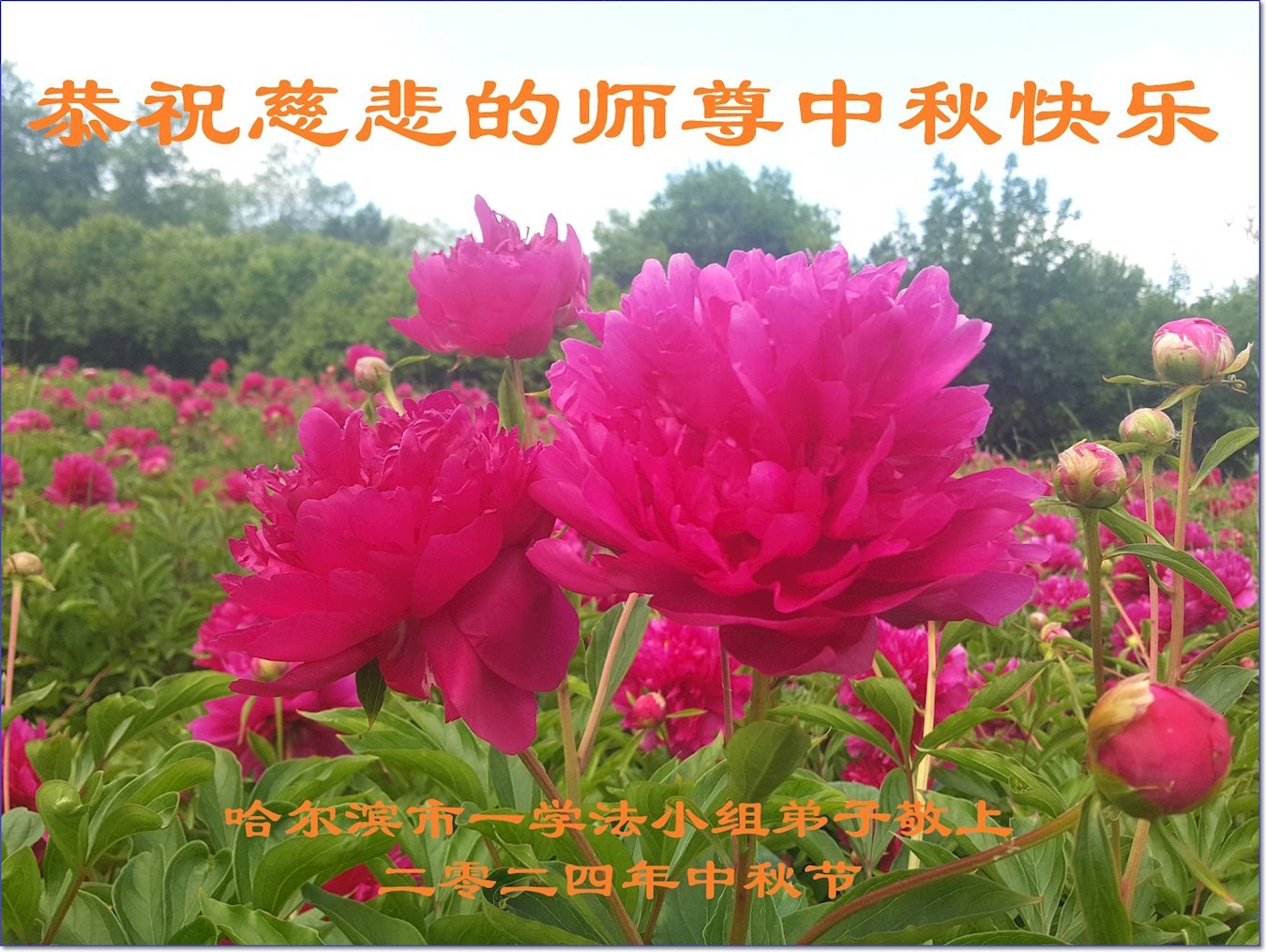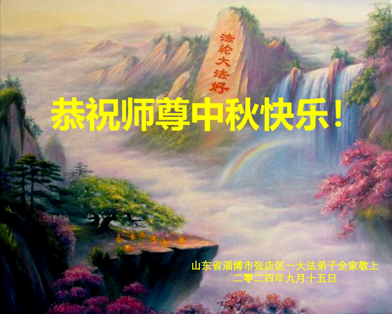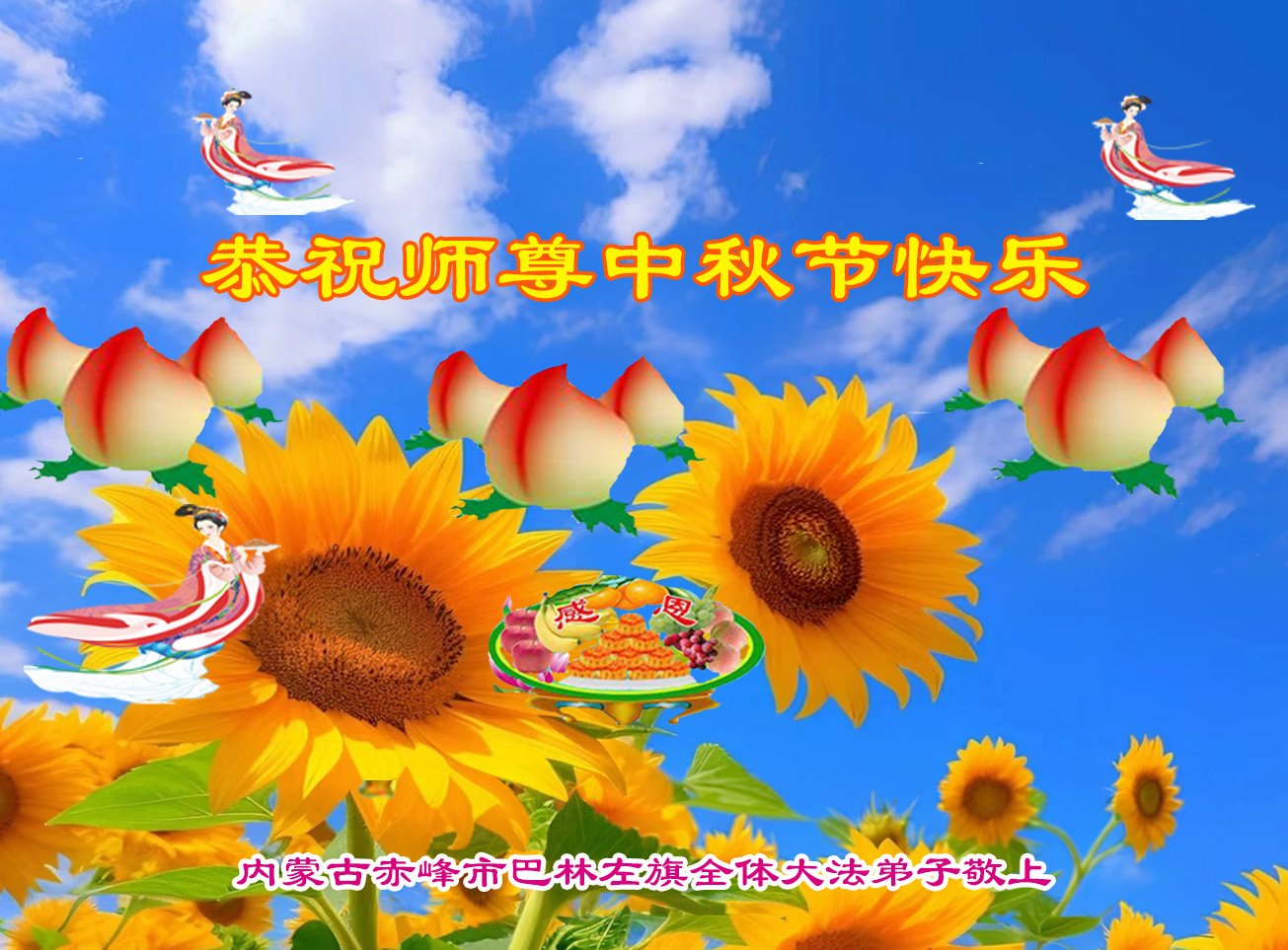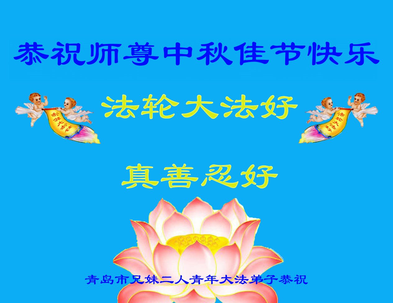 慈悲伟大的师尊好:我们在大陆都曾被邪恶残酷迫害,但我们不仅无悔,且深知能做师父的弟子是我们最大的荣耀与幸福。随师正法、救度众生是我们此生的意义与重任。弟子一定尽心、尽力去做,不负师尊的期望,不负众生的盼望。遥祝慈悲伟大的师尊中秋快乐!盼望师尊早日回大陆。