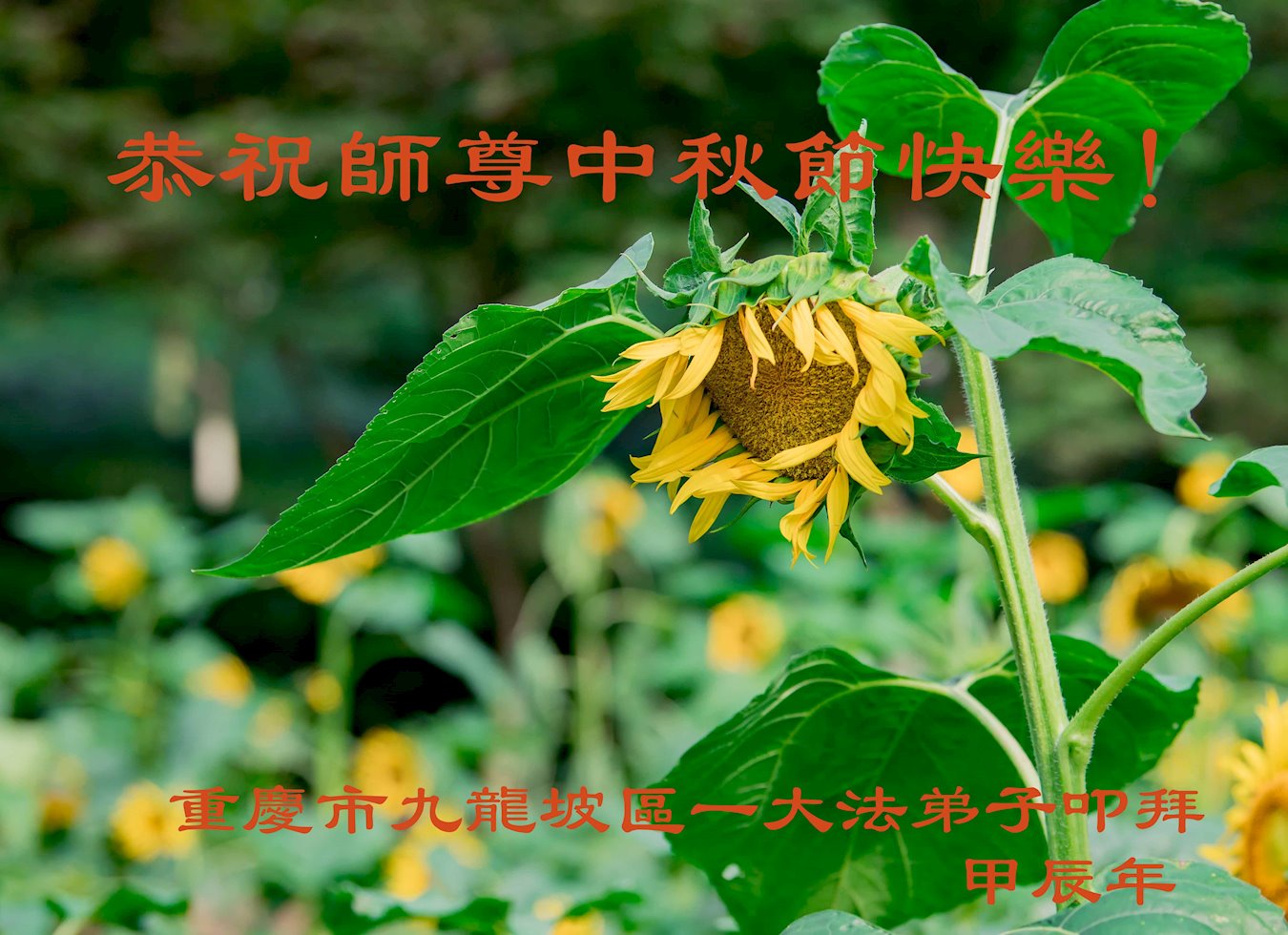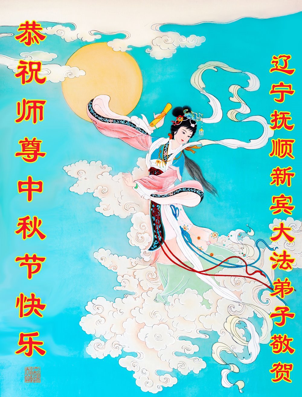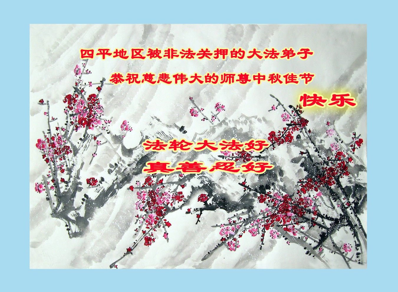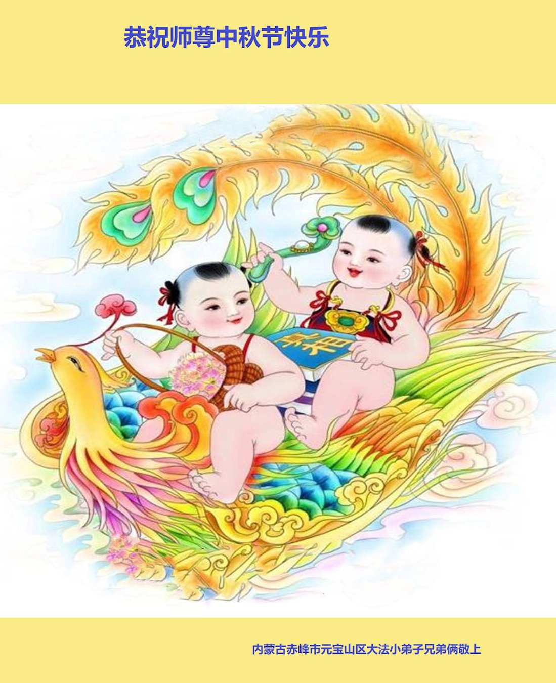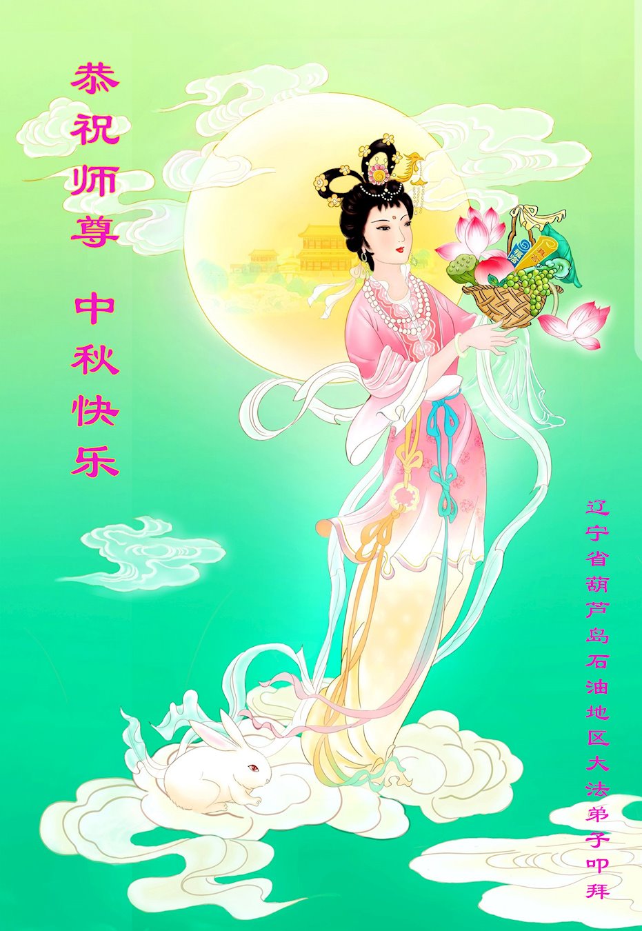 慈悲伟大的师尊好:我们在大陆都曾被邪恶残酷迫害,但我们不仅无悔,且深知能做师父的弟子是我们最大的荣耀与幸福。随师正法、救度众生是我们此生的意义与重任。弟子一定尽心、尽力去做,不负师尊的期望,不负众生的盼望。遥祝慈悲伟大的师尊中秋快乐!盼望师尊早日回大陆。