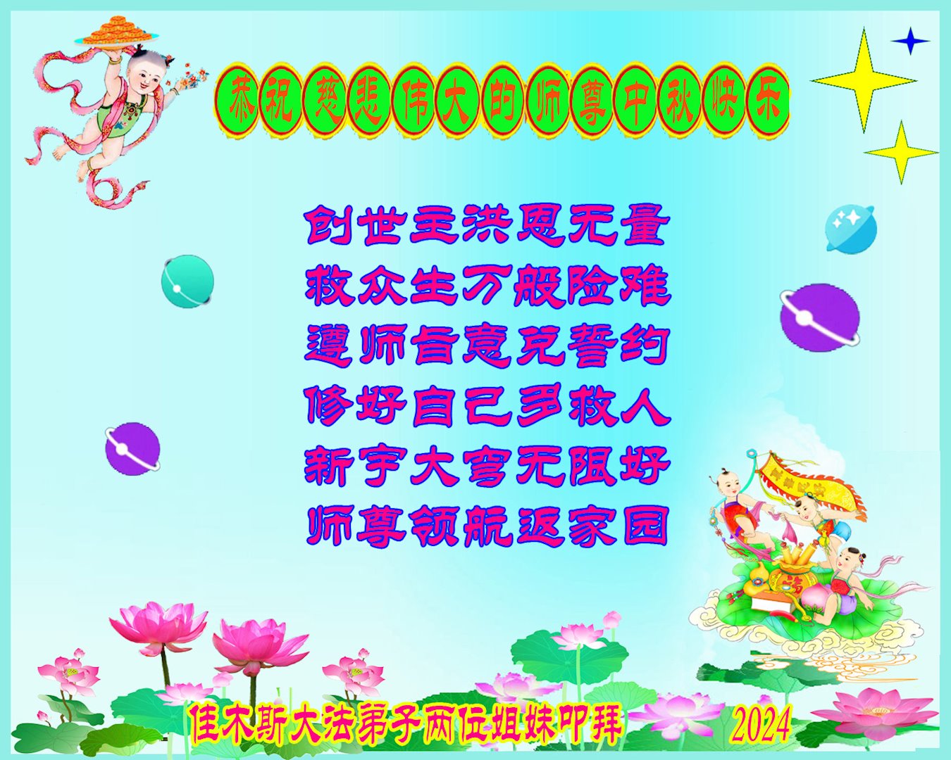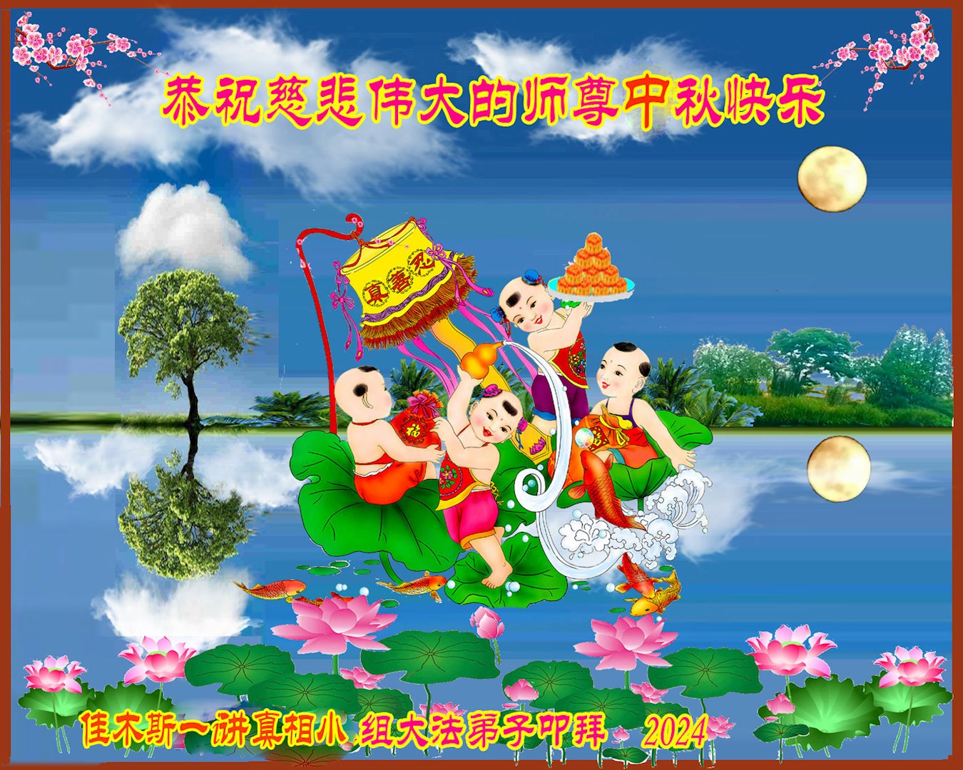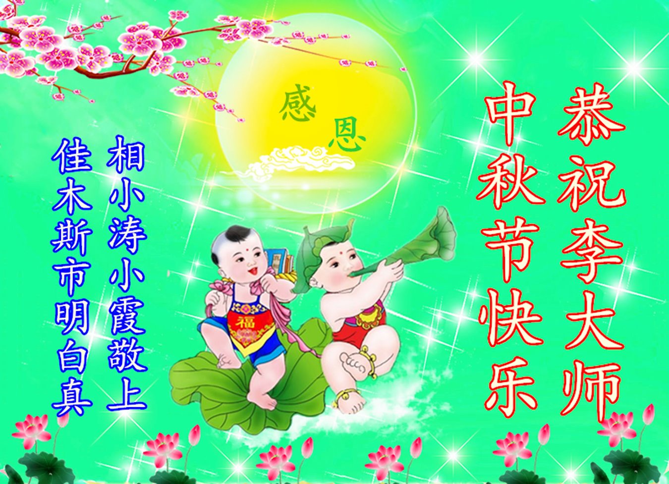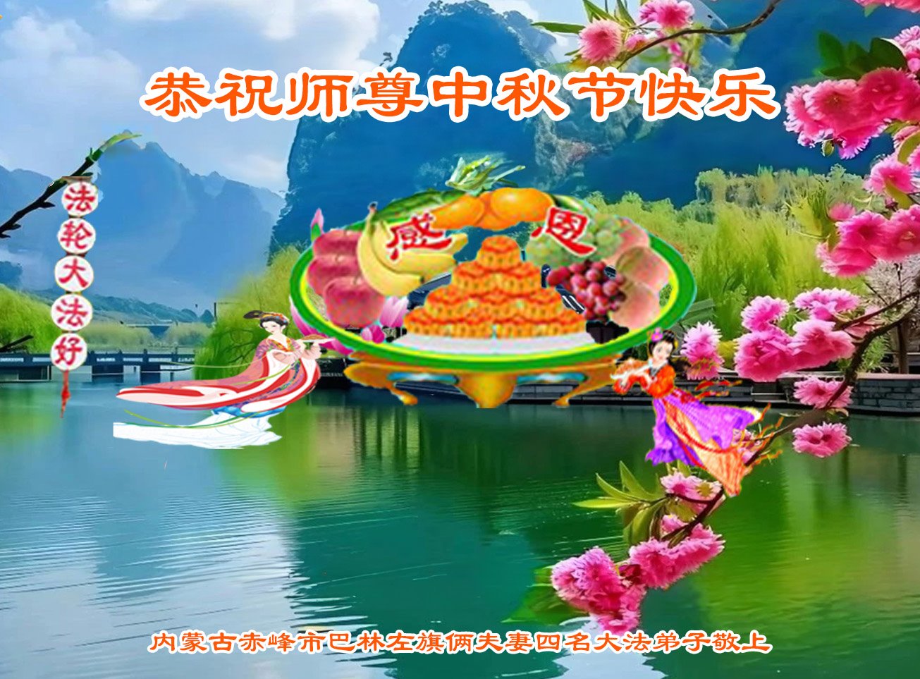 <英文版: https://en.minghui.org/html/articles/2024/9/19/220763.html>马来西亚、印度尼西亚大法弟子恭祝师尊中秋好