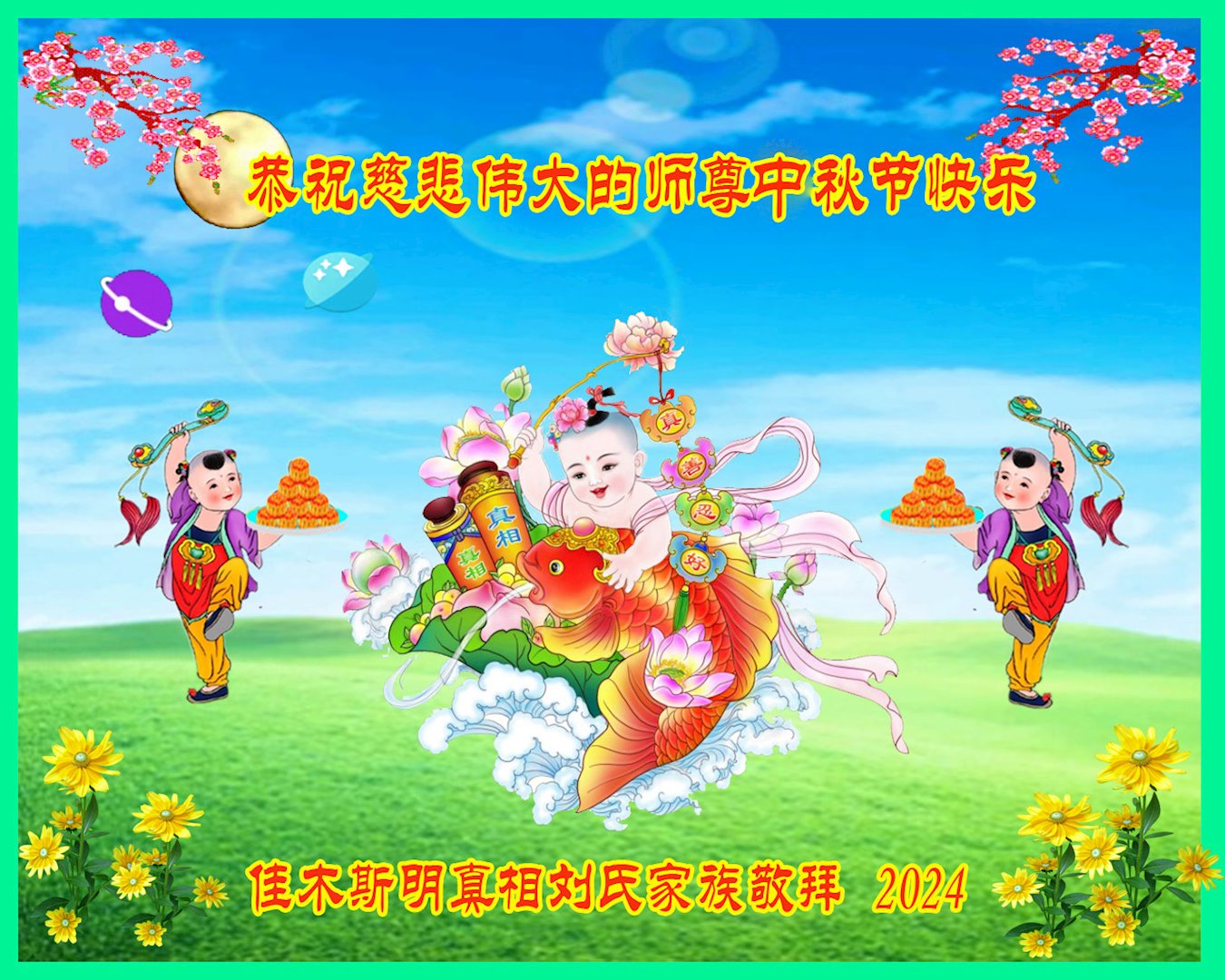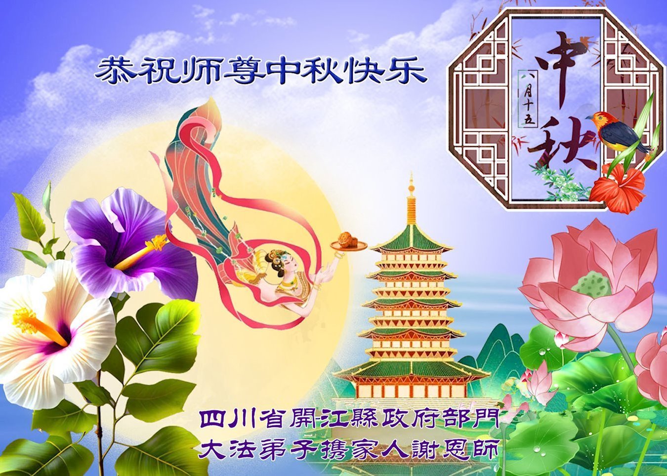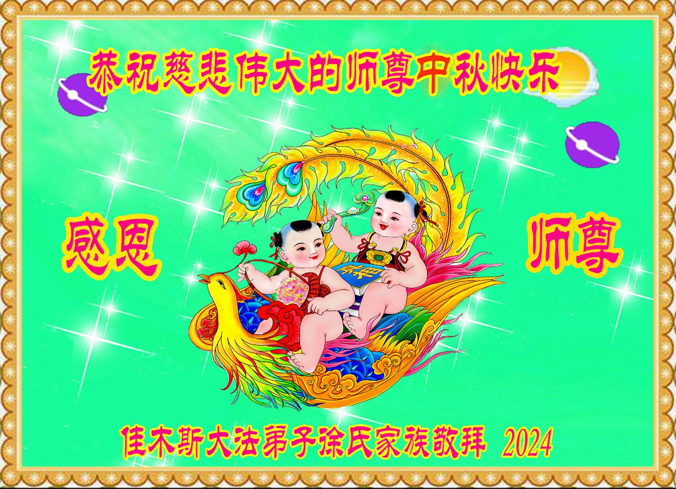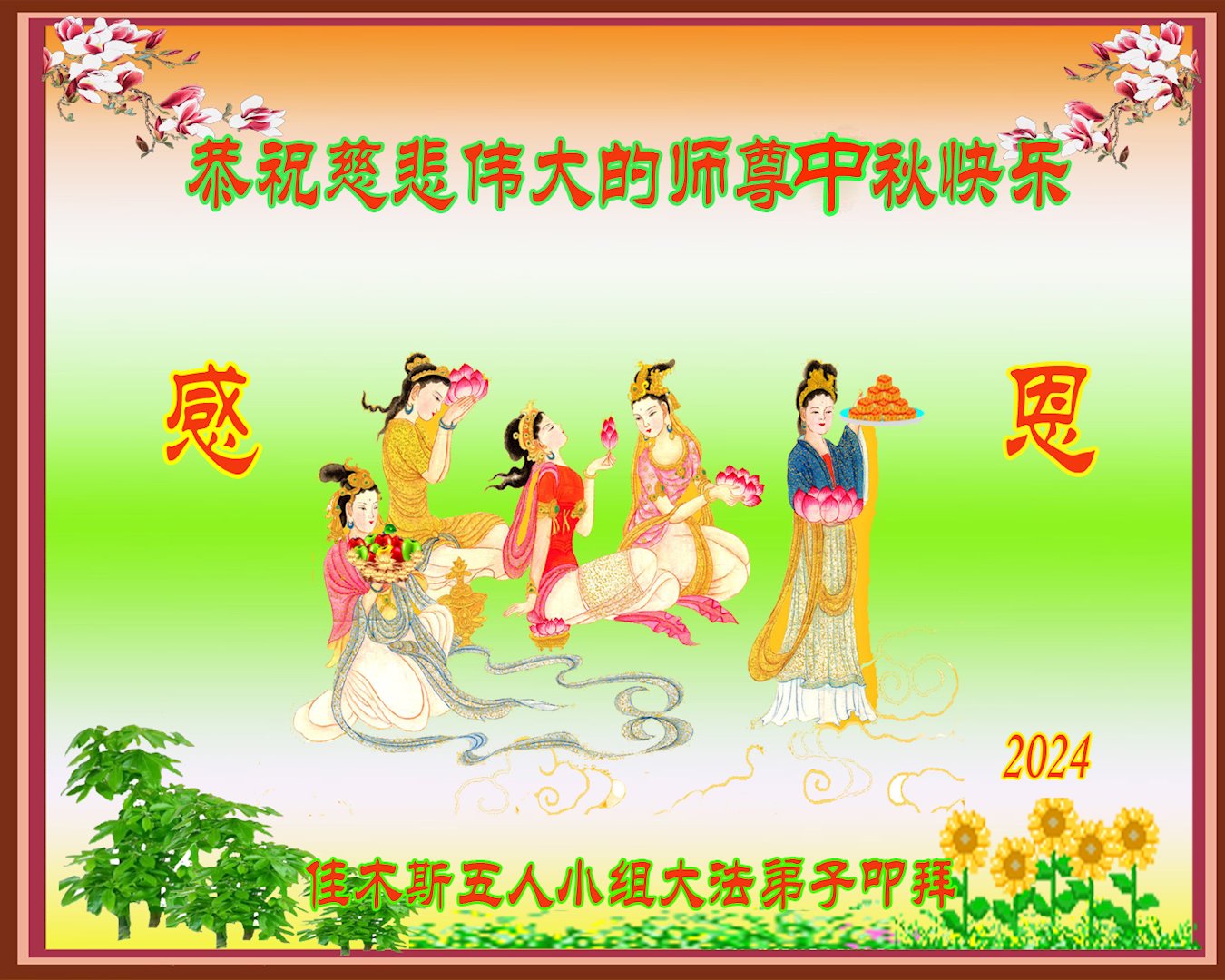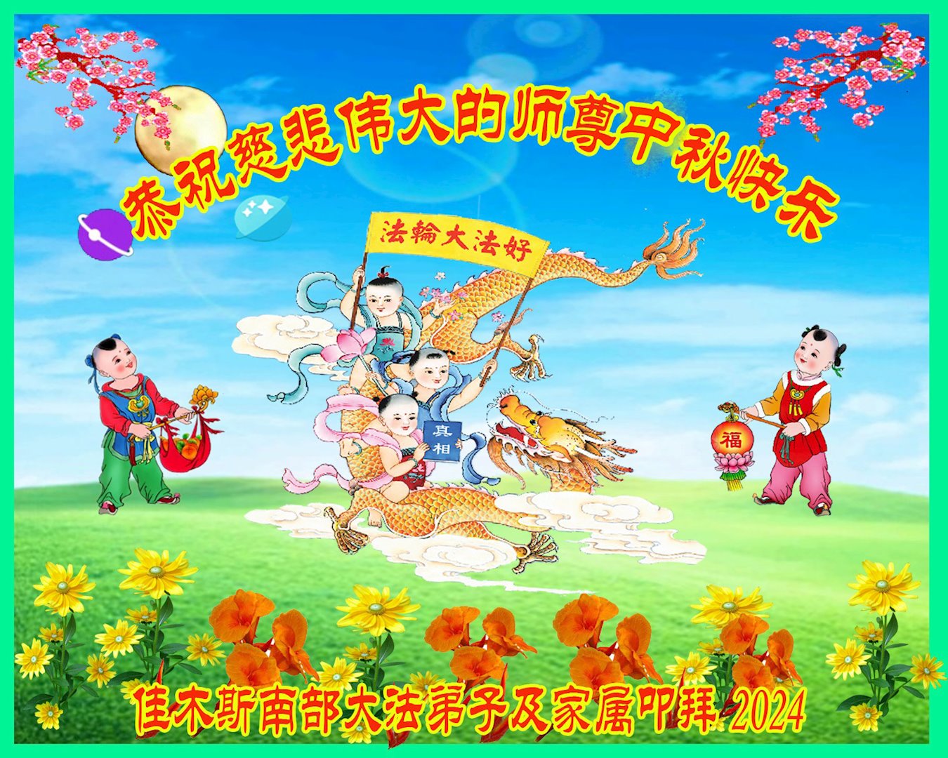 <英文版: https://en.minghui.org/html/articles/2024/9/19/220763.html>马来西亚、印度尼西亚大法弟子恭祝师尊中秋好