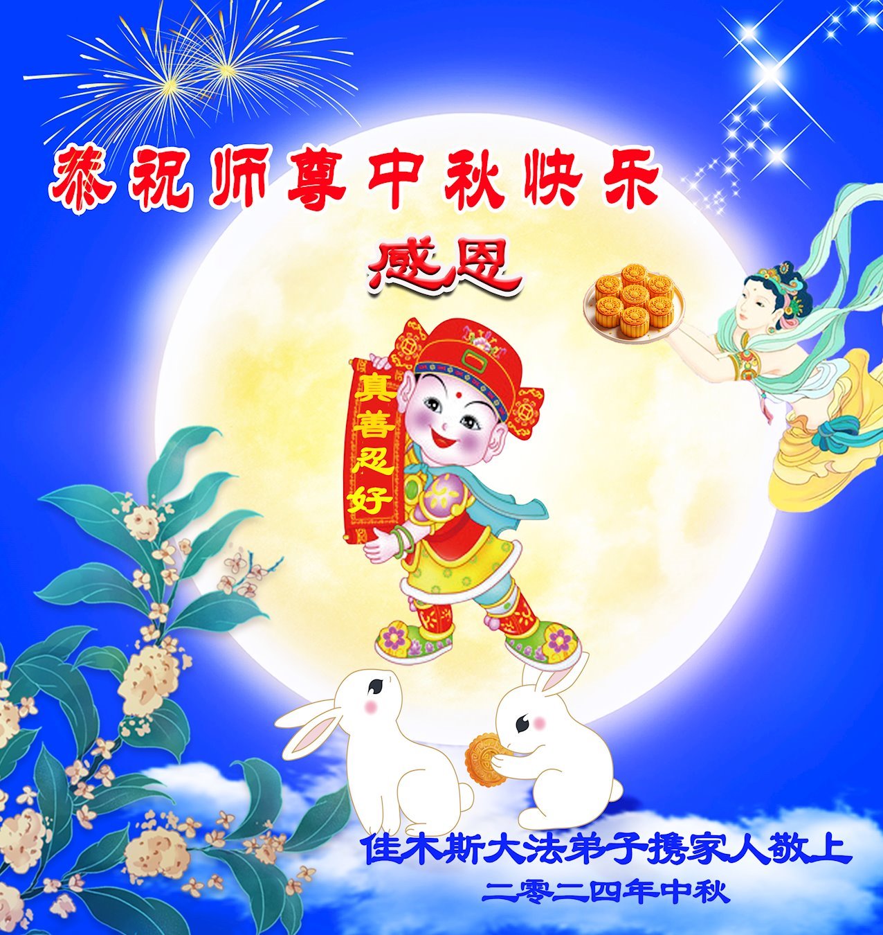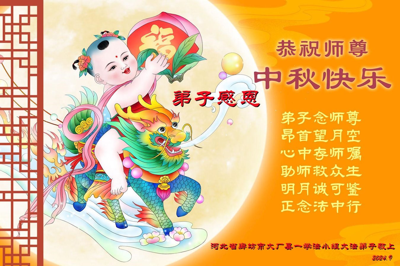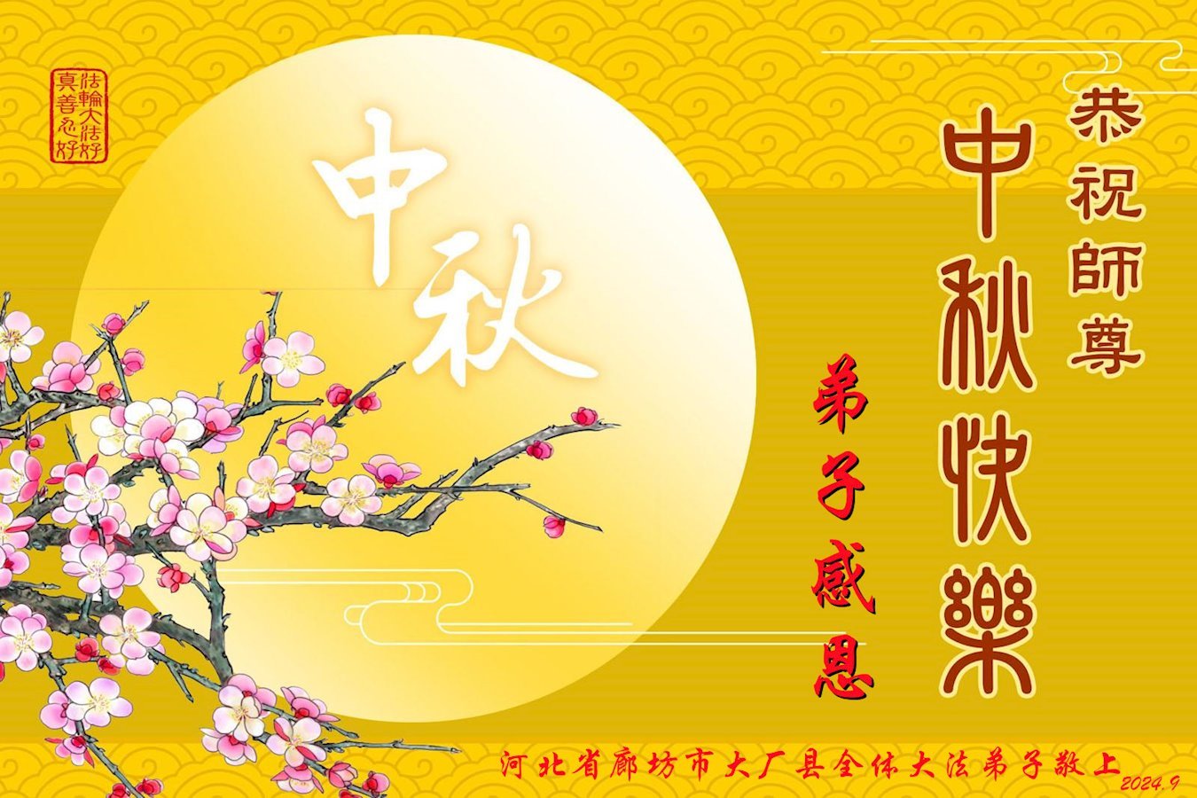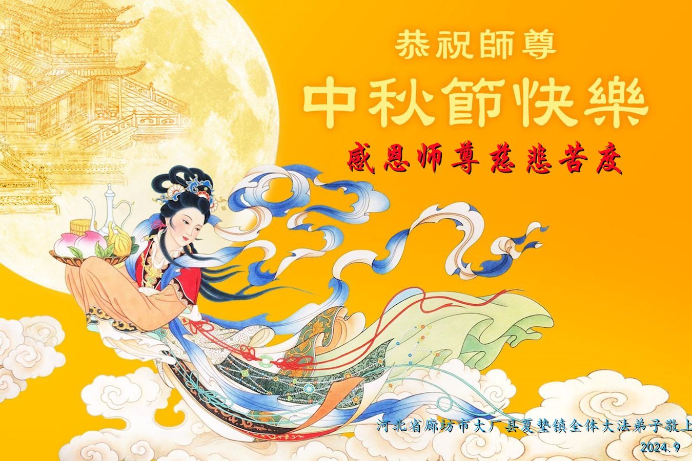 金桂飘香之时,中秋佳节即将到来之际,感恩师尊的慈悲救度,恭祝师尊甲辰年中秋节快乐!