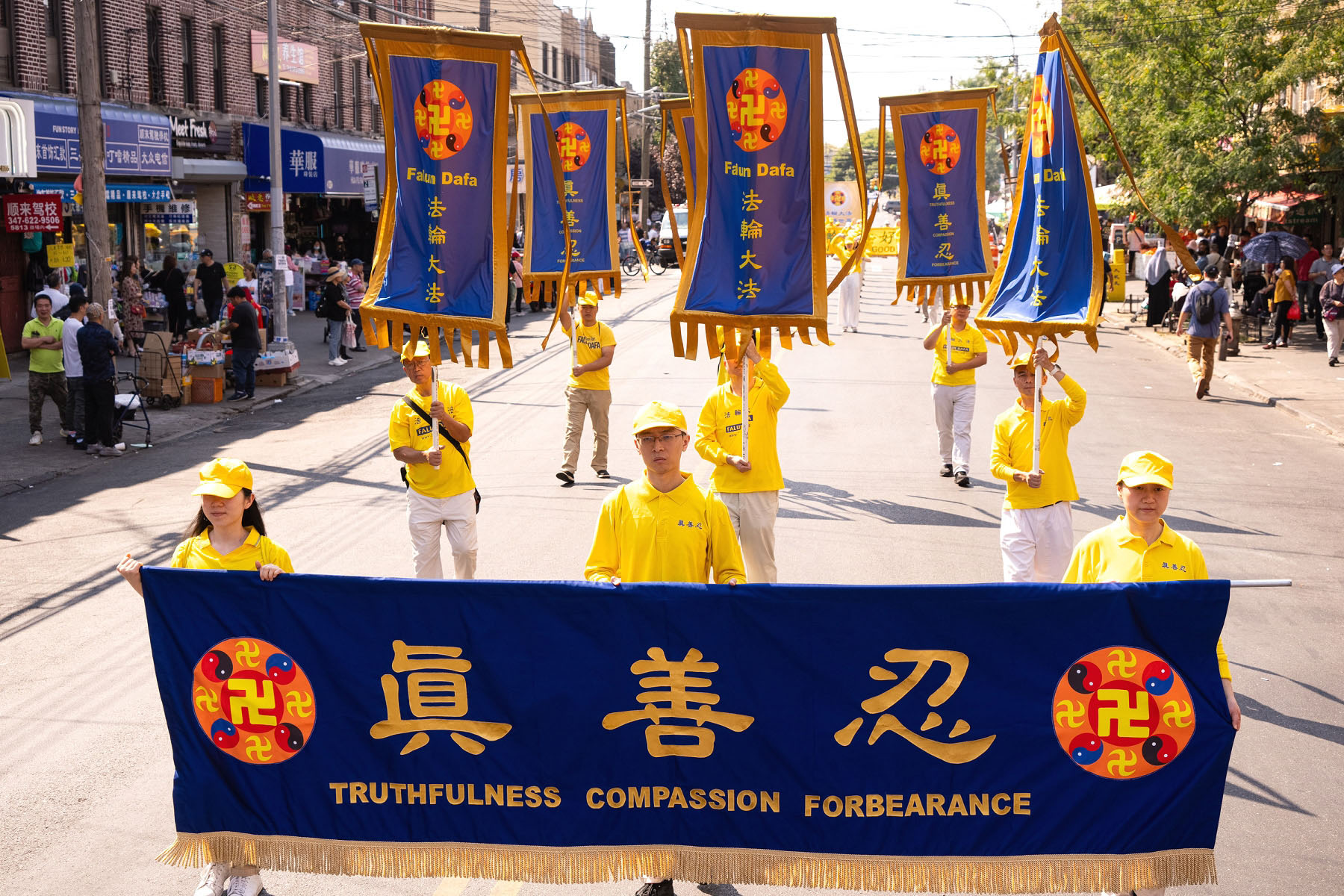 ![]() 图1~8:二零二四年九月十四日,中秋佳节到来之际,法轮功学员在纽约第三大华人社区---布鲁克林八大道举行盛大游行,图为第一方阵“法轮大法好”。 |
