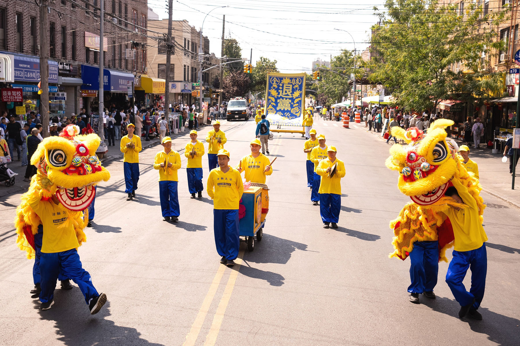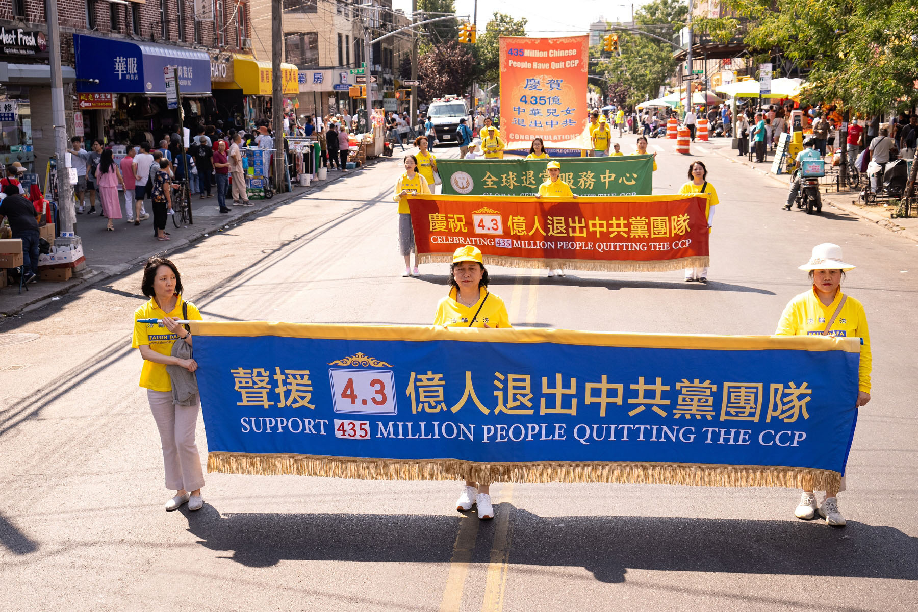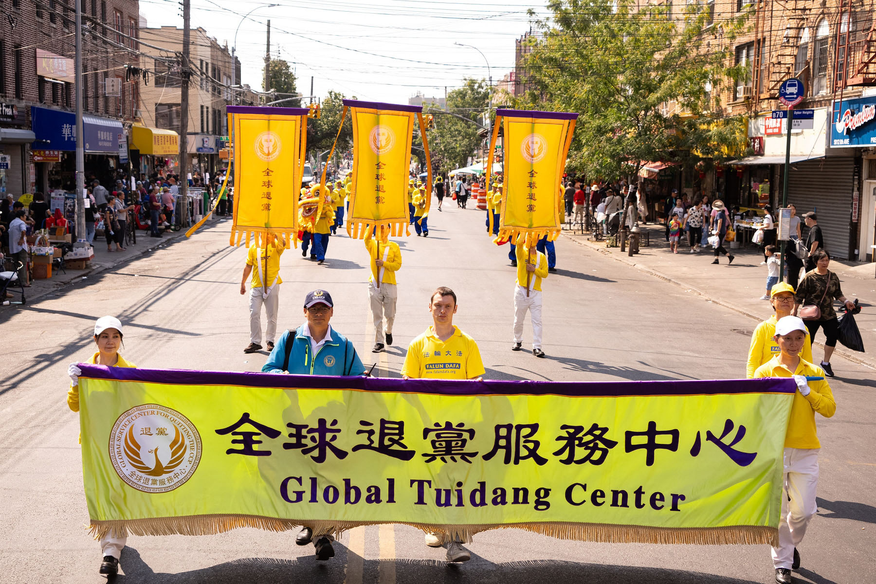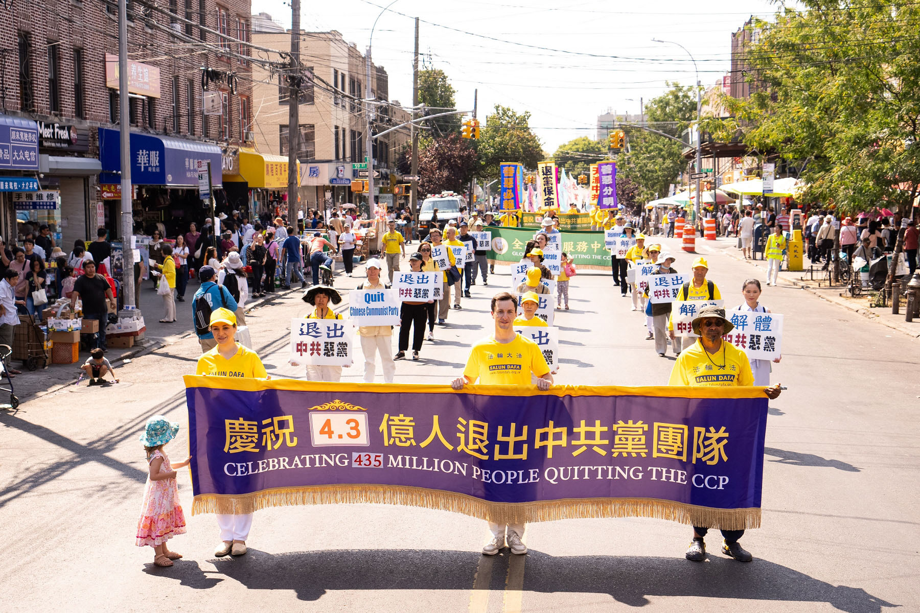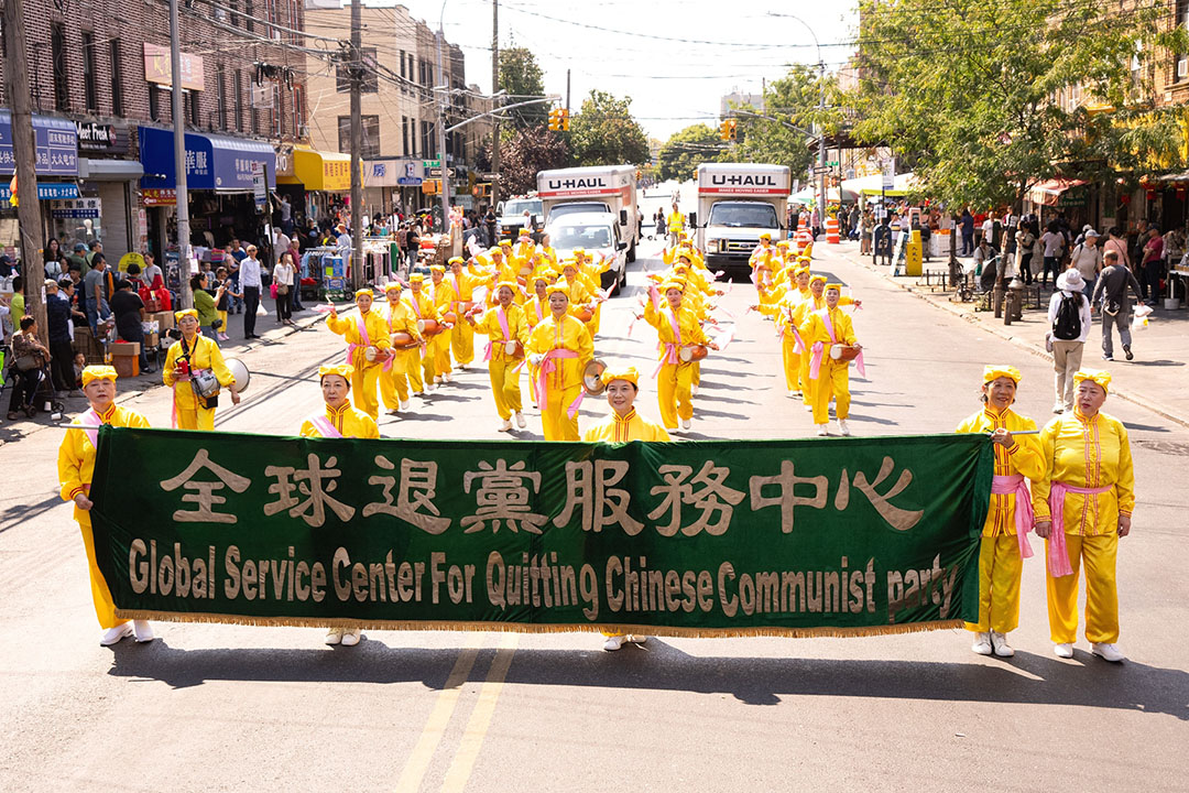 【明慧网二零二四年九月十八日】中秋佳节到来之际,二零二四年九月十四日(周六),大纽约地区部分法轮功学员约千人,在纽约第三大华人社区——布鲁克林八大道举行盛大游行,向社区民众送上“法轮大法好”、“真善忍好”的祝福,同时声援全球超过4.3亿中国人退出中共党、团、队,同时全球反迫害征签已突破440万人。