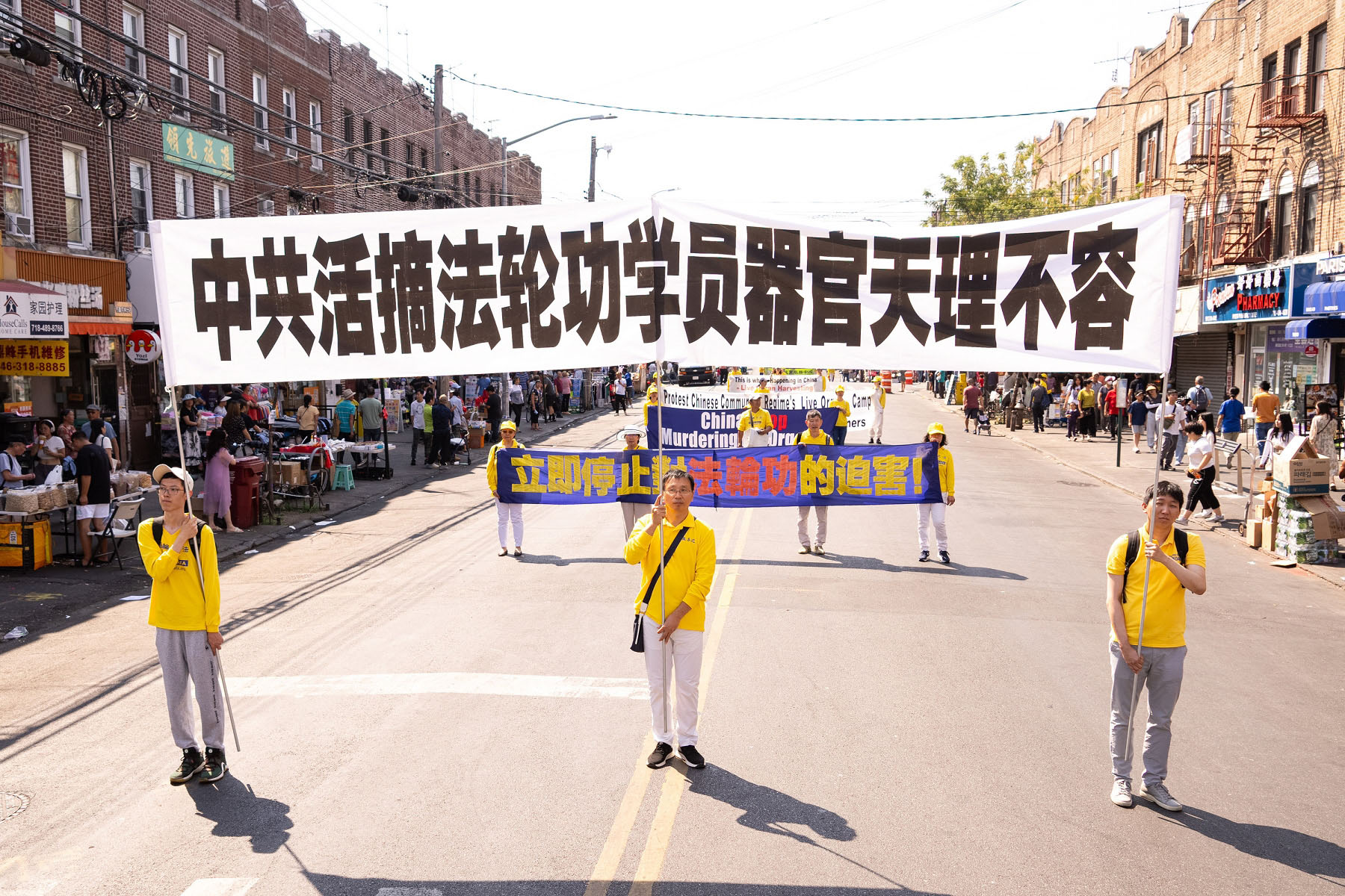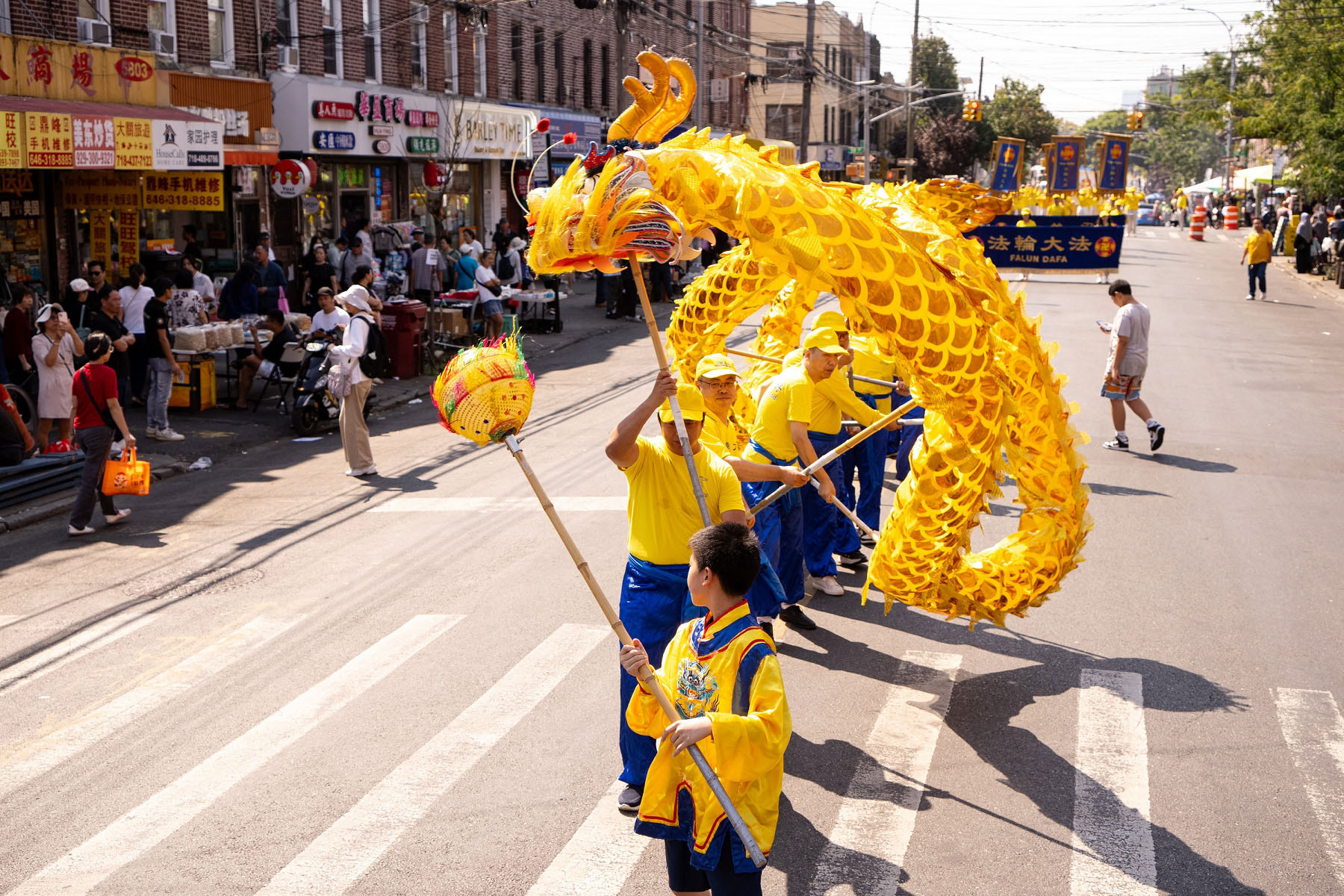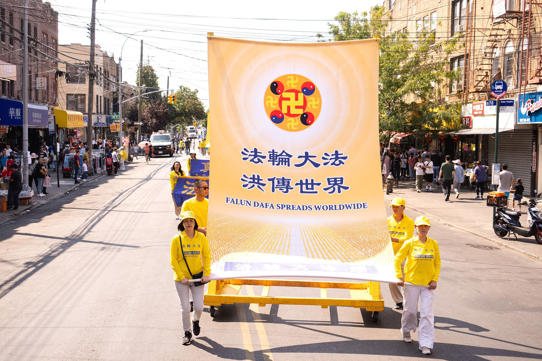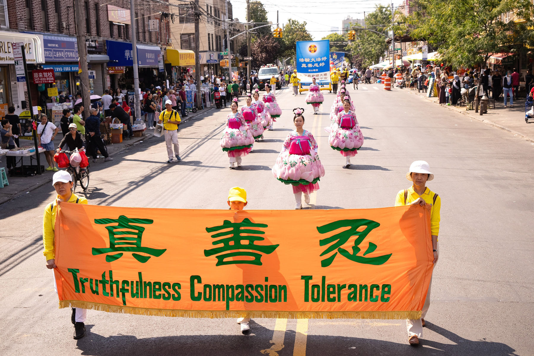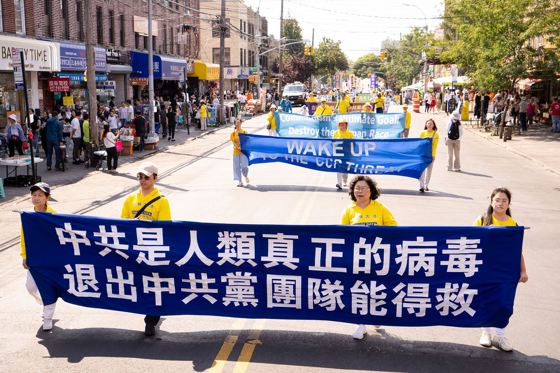 【明慧网二零二四年九月十八日】中秋佳节到来之际,二零二四年九月十四日(周六),大纽约地区部分法轮功学员约千人,在纽约第三大华人社区——布鲁克林八大道举行盛大游行,向社区民众送上“法轮大法好”、“真善忍好”的祝福,同时声援全球超过4.3亿中国人退出中共党、团、队,同时全球反迫害征签已突破440万人。