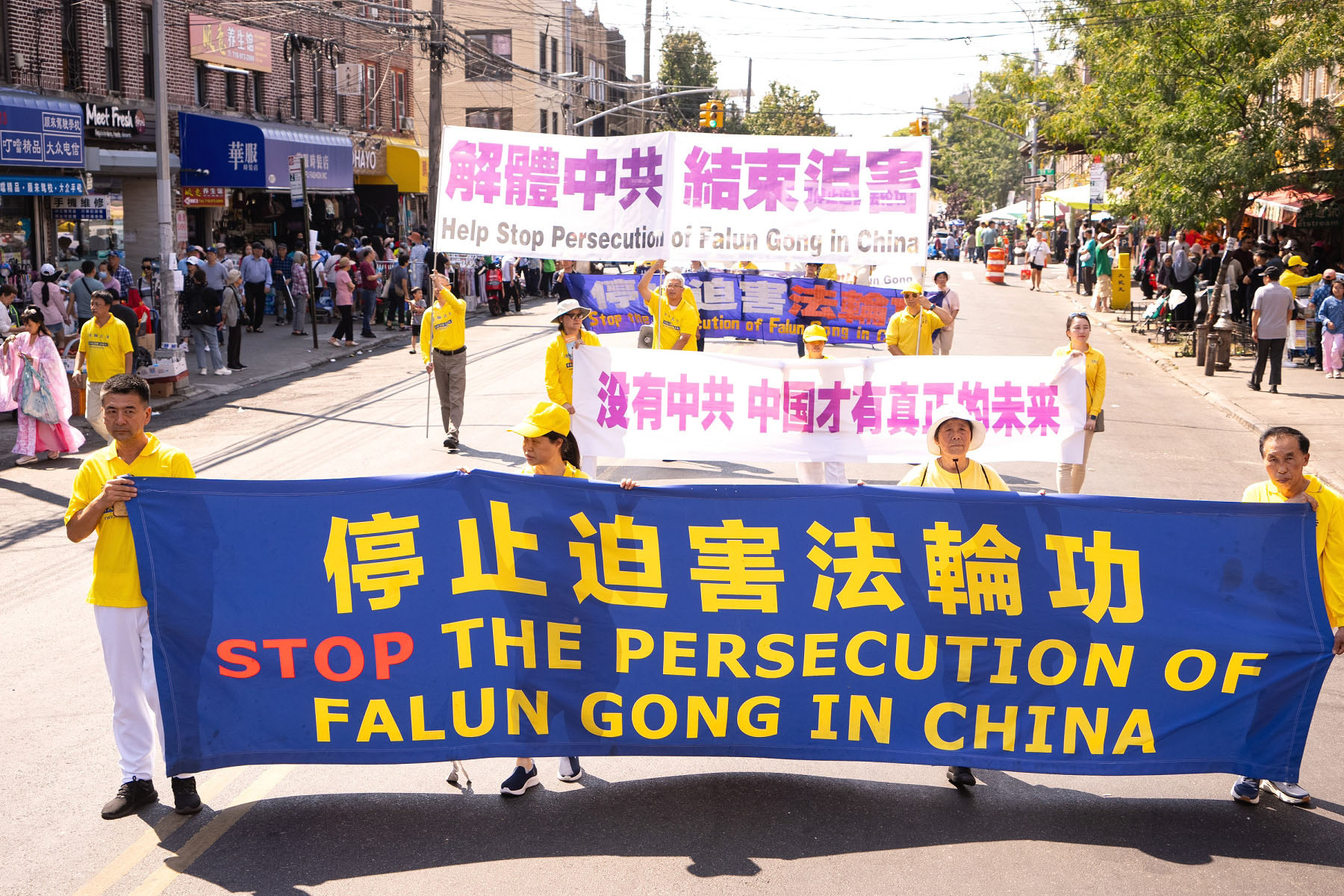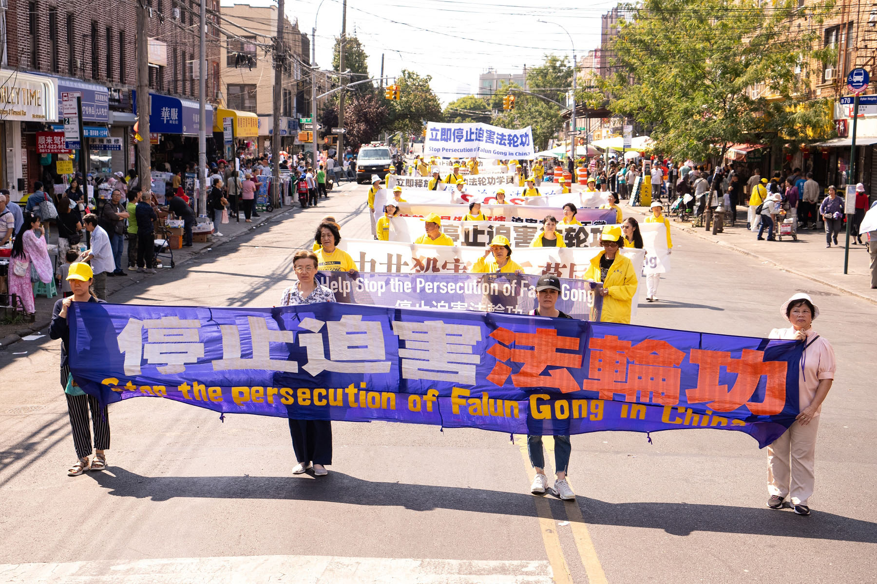 ![]() 图9~15:二零二四年九月十四日,中秋佳节到来之际,法轮功学员在纽约第三大华人社区——布鲁克林八大道举行盛大游行,图为第二方阵“停止迫害法轮功”。 |