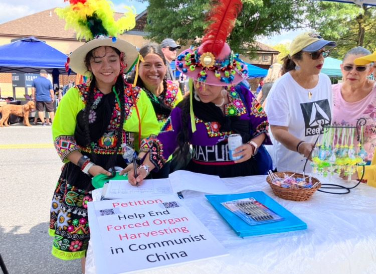 人们了解法轮功和中共迫害法轮功的事实后,纷纷来到法轮功展位前,签名抵制中共活摘法轮功学员器官及其对法轮功学员持续二十多年的迫害。