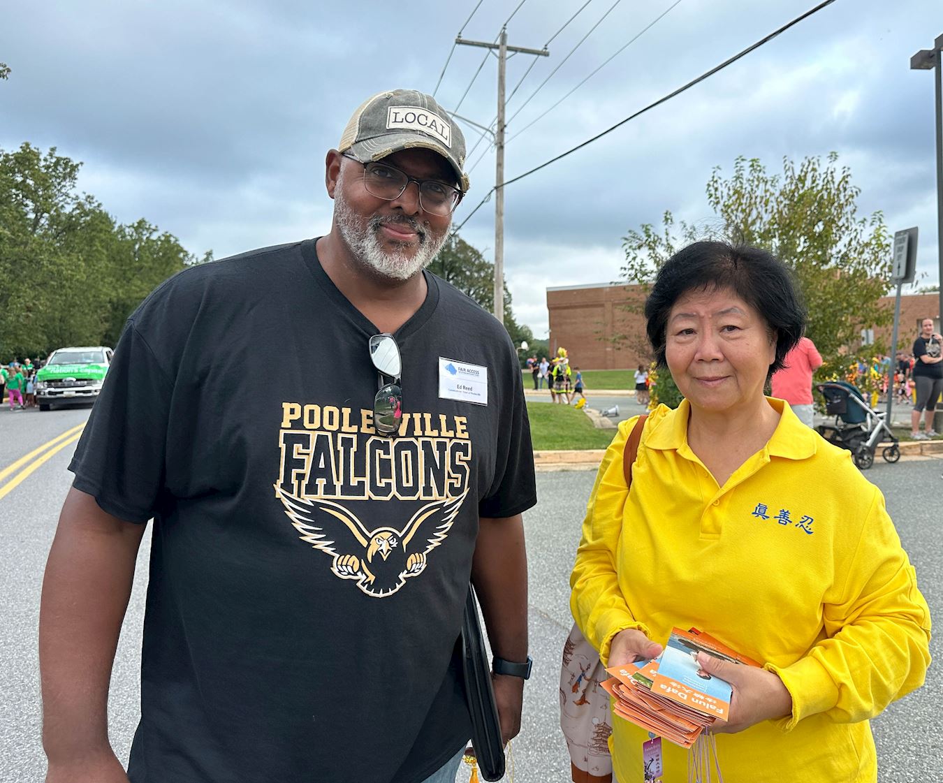 艾德·里德(Ed Reed)是首位获选普尔斯维尔委员会的非裔委员,也是游行的组织者。他欢迎法轮功学员再次参加当地的游行庆祝活动。