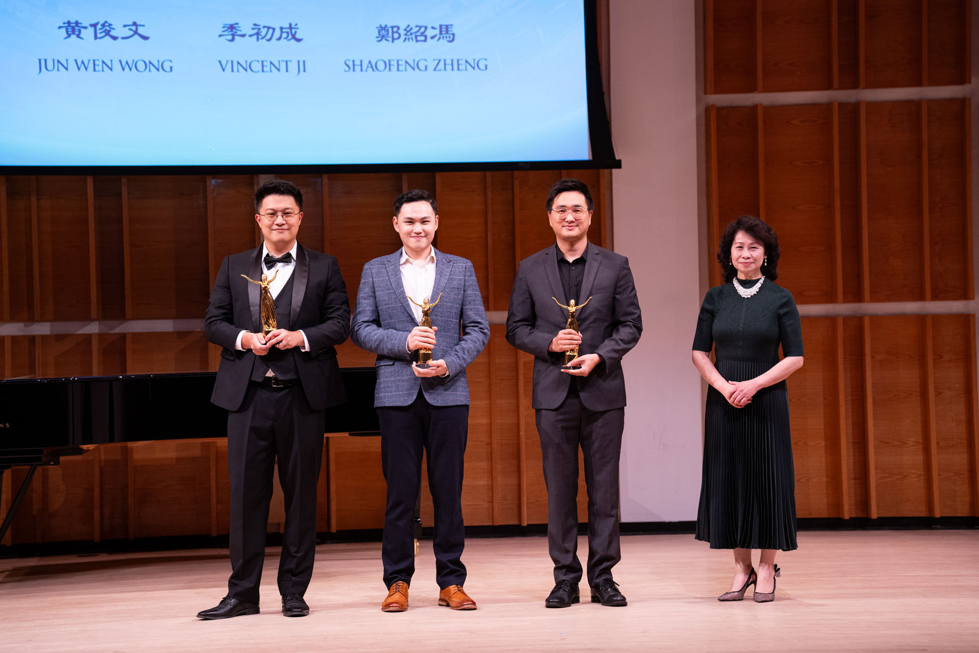 铜牌得主:美国选手季初成和郑绍冯,以及马来西亚选手黄俊文。