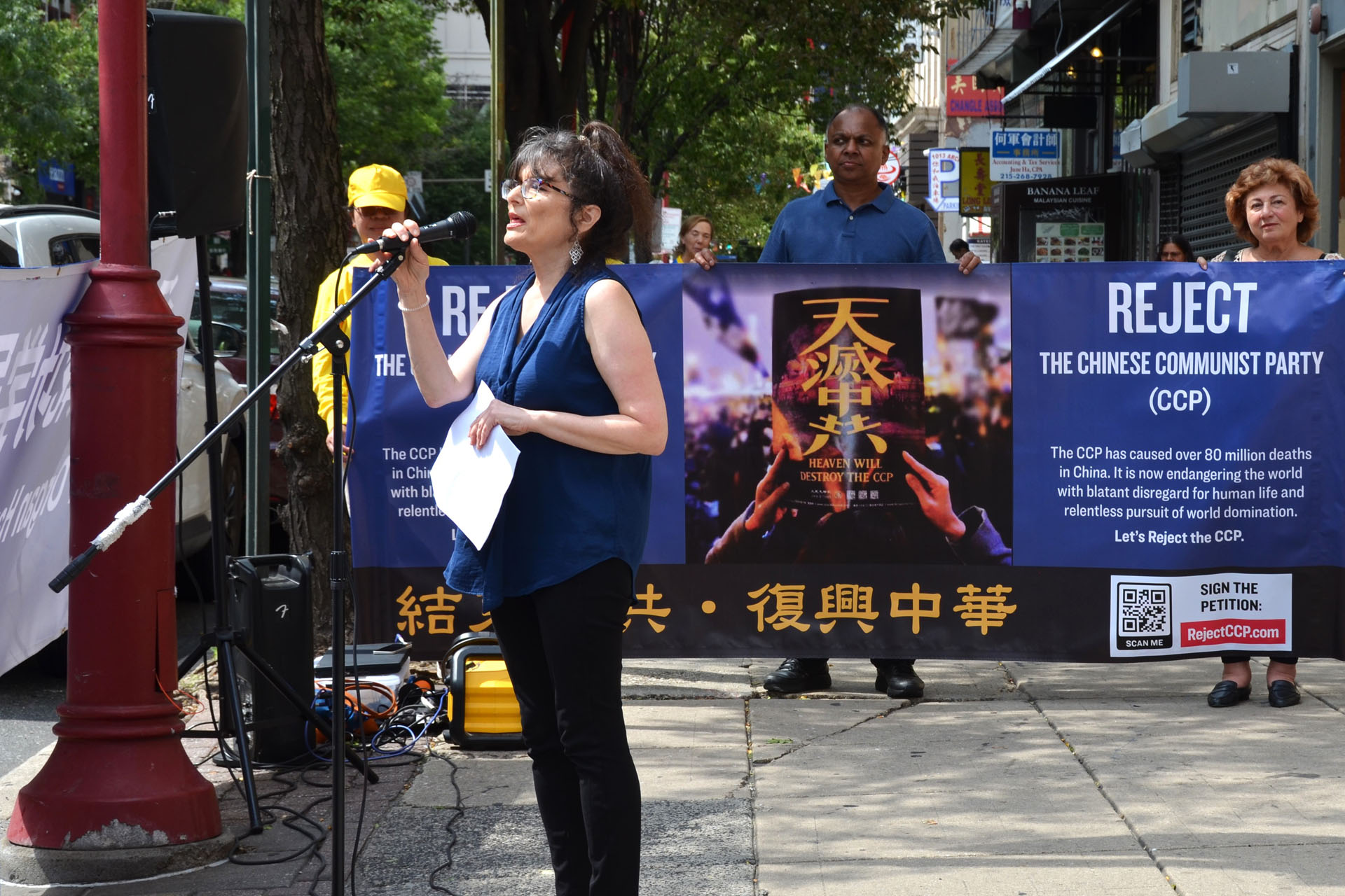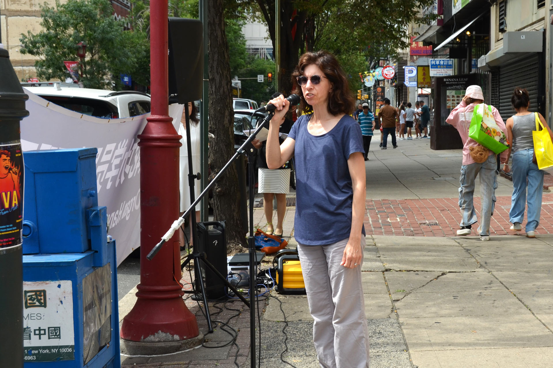 ![]() 图6:知名移民律师、报纸专栏作家、电视评论员和人权活动家克里斯汀·弗劳尔斯(Christine Flowers)在集会上演讲。 |