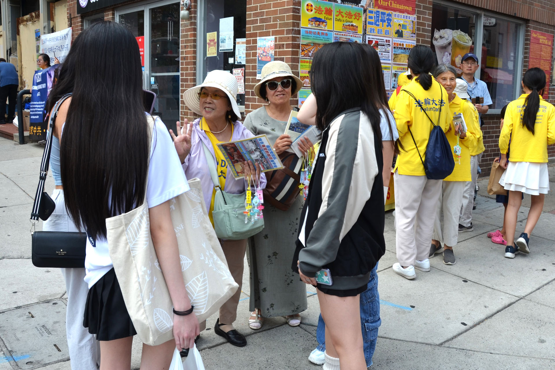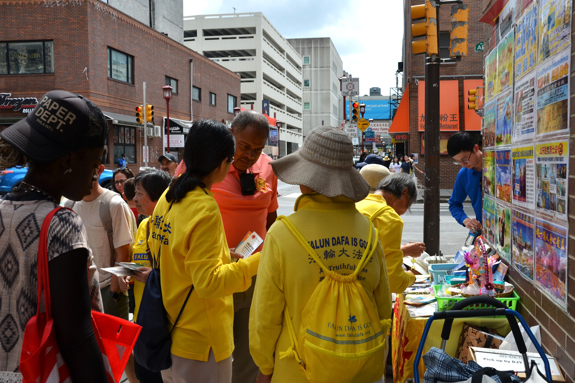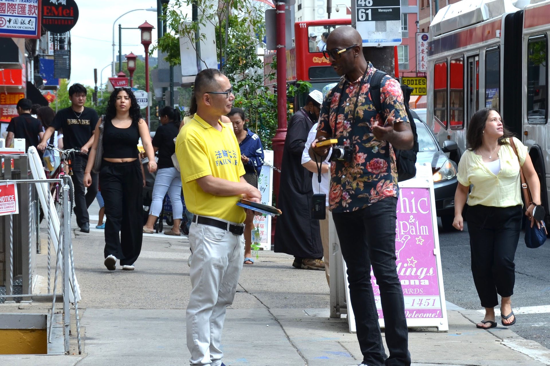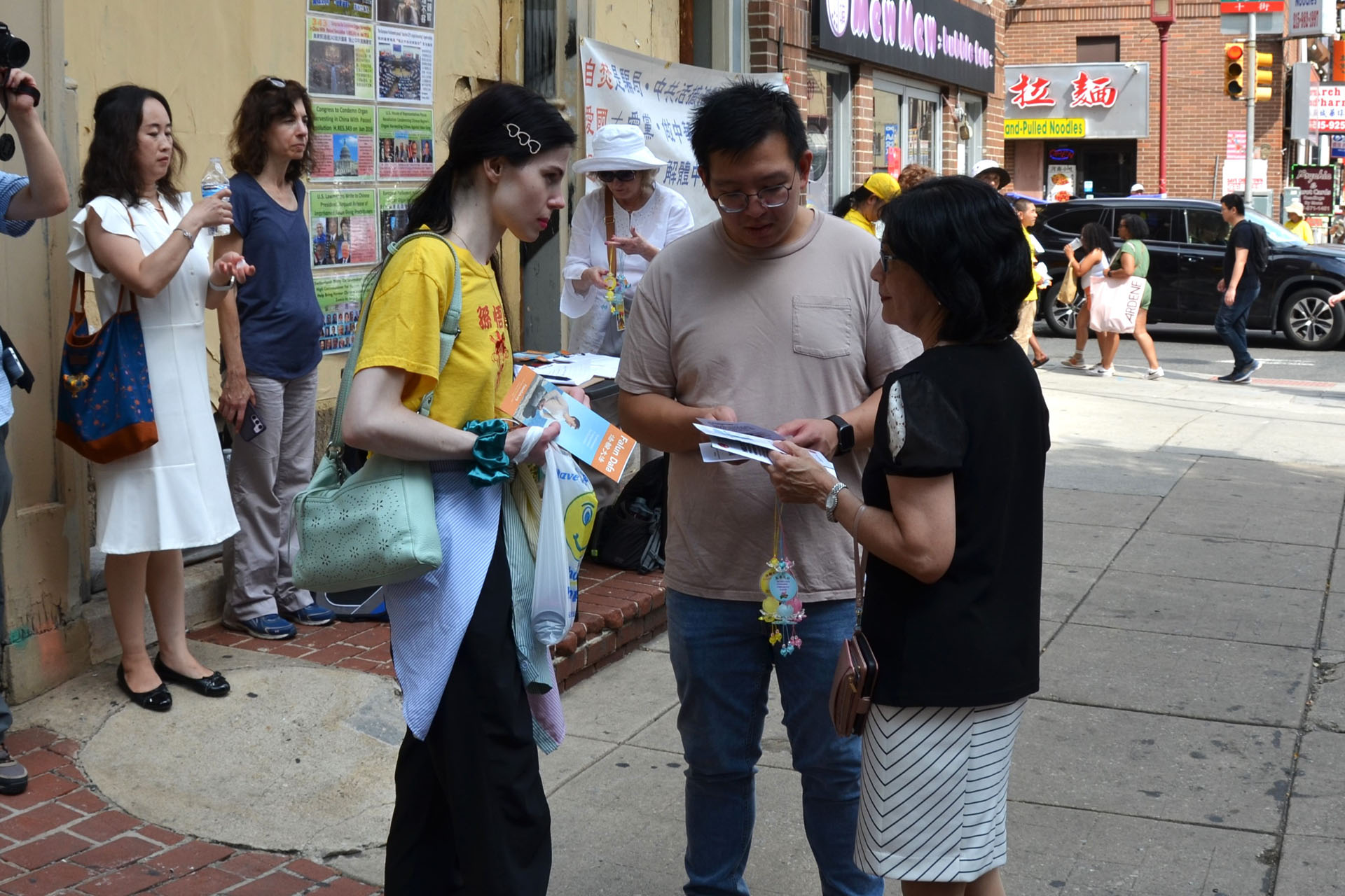 ![]() 图7~10:法轮功学员在费城唐人街集会期间向路人揭露中共活摘法轮功学员器官的罪行。 |
