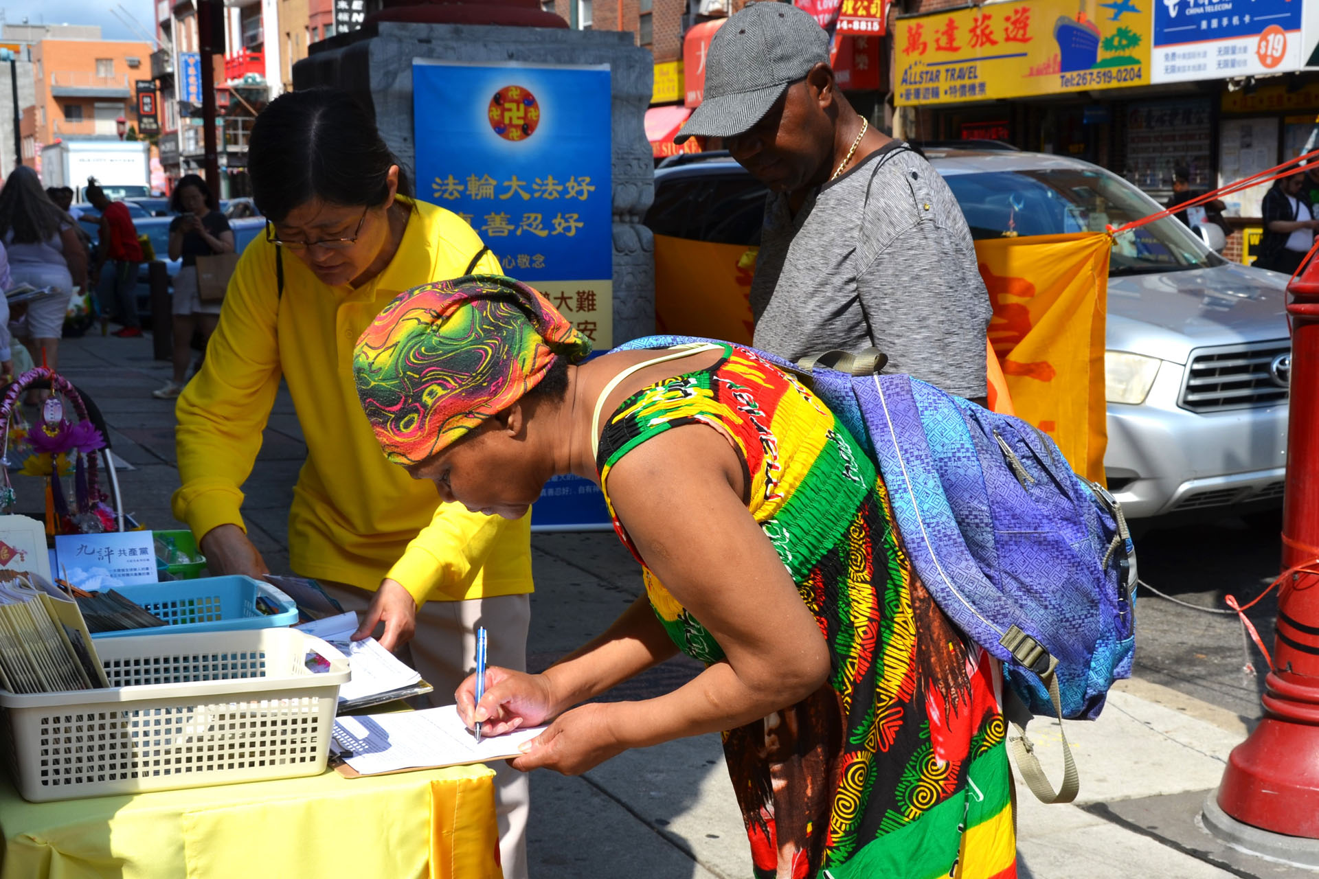 ![]() 图11~12:在费城唐人街集会期间,民众在呼吁制止中共活摘法轮功学员器官的征签表上签名。 |