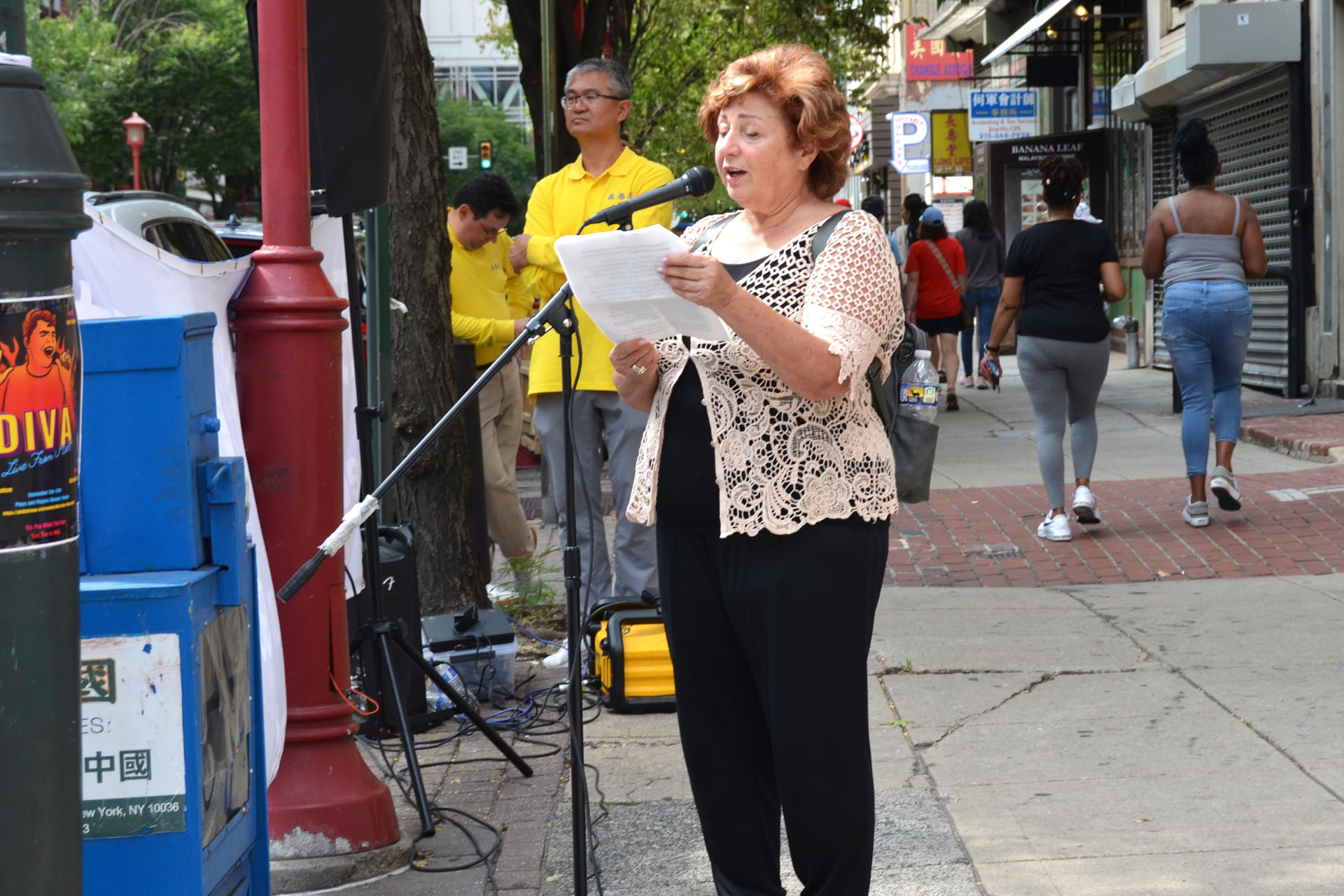来自特拉华州的社会工作者丽娜·奎恩(Lena Queen)承认她对中共侵犯人权的问题“只略知一二”,但表达将会做更多了解。她说:“我已经加入了邮件群组,希望获得更多的信息来帮助自己和他人明白真相。”她强调让民众了解真相的重要性,“以确保人权侵犯不会被忽视。”