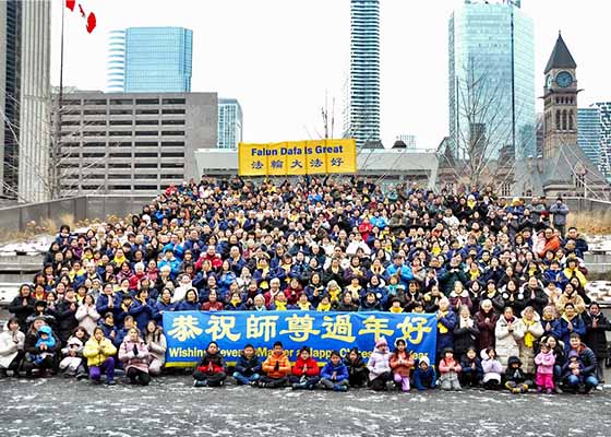 二零二五年一月二十五日,加拿大多伦多大法弟子在内森•菲利普斯广场向师父拜年!
