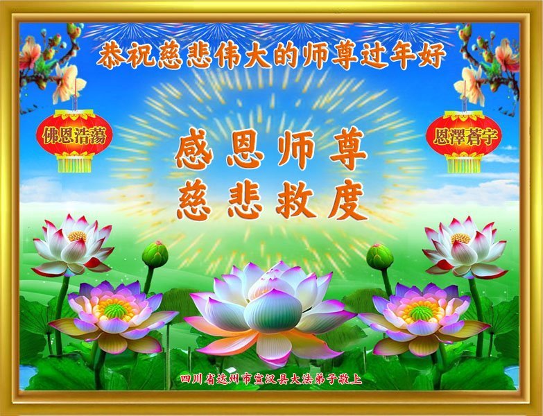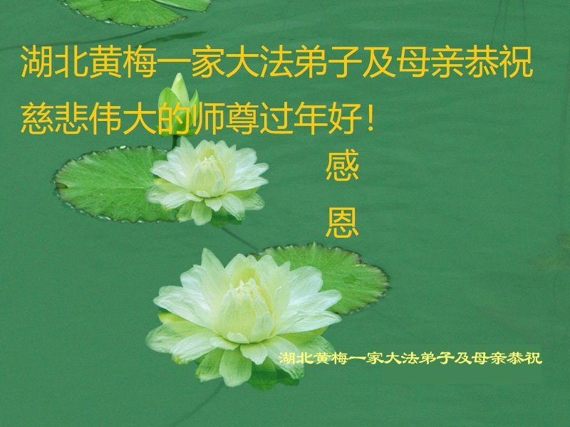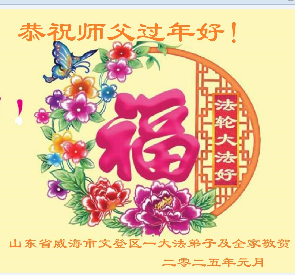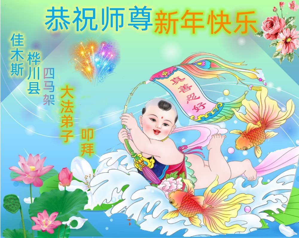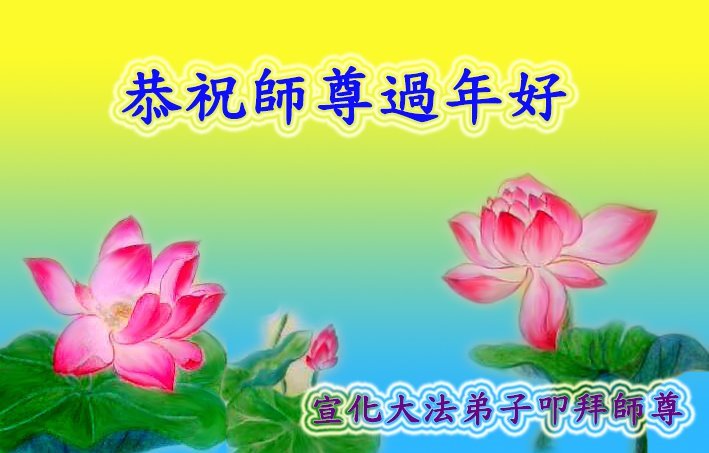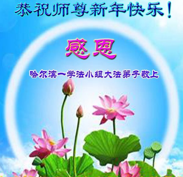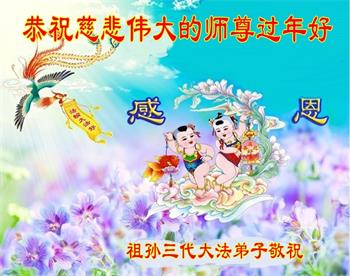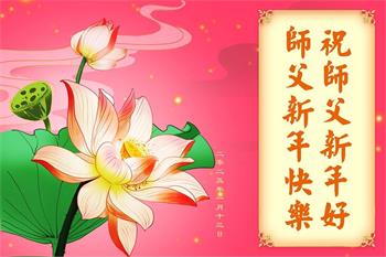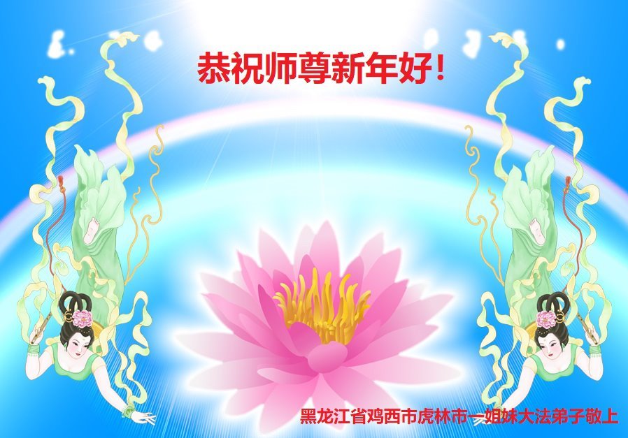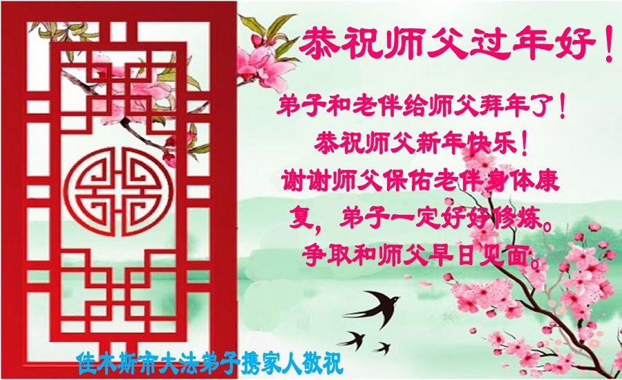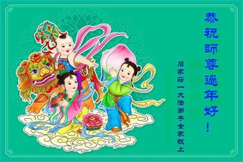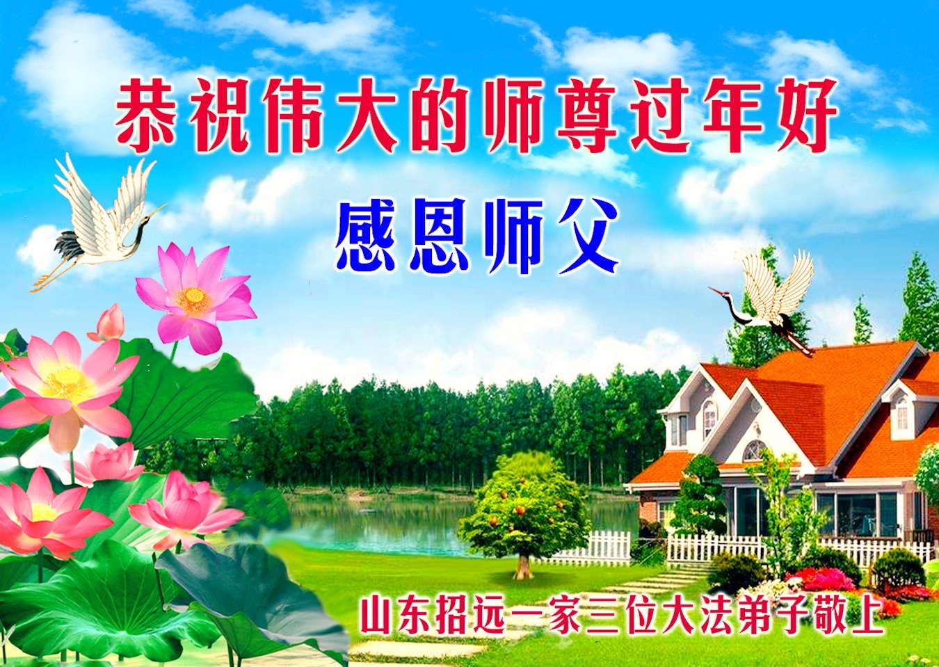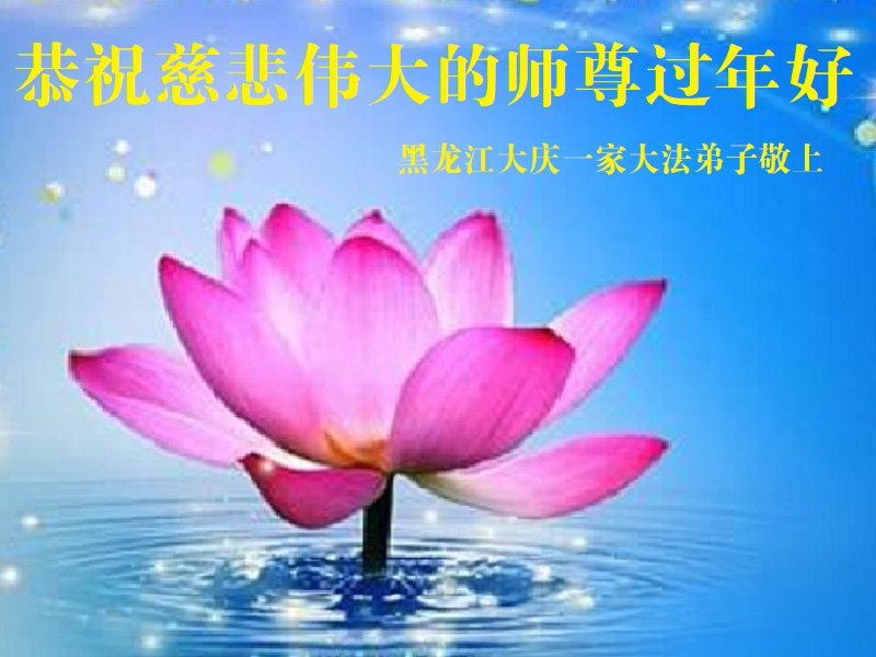 感恩师父的慈悲救度!感恩师父将我们从地狱中捞出洗净,引领我们走上一条返本归真之路。在新年到来之际,我们全家大法弟子及新学员(共6人)给慈悲伟大的师尊拜年:师父过年好!师父您辛苦了!