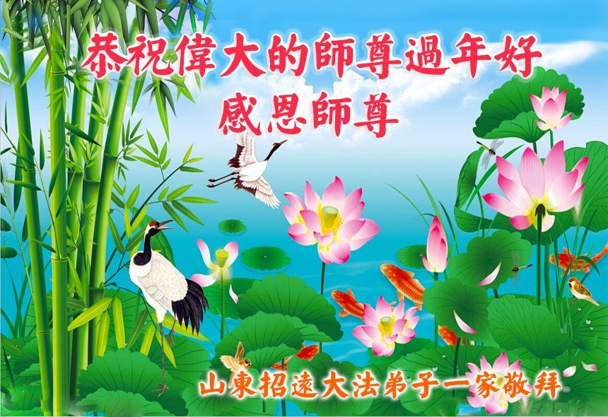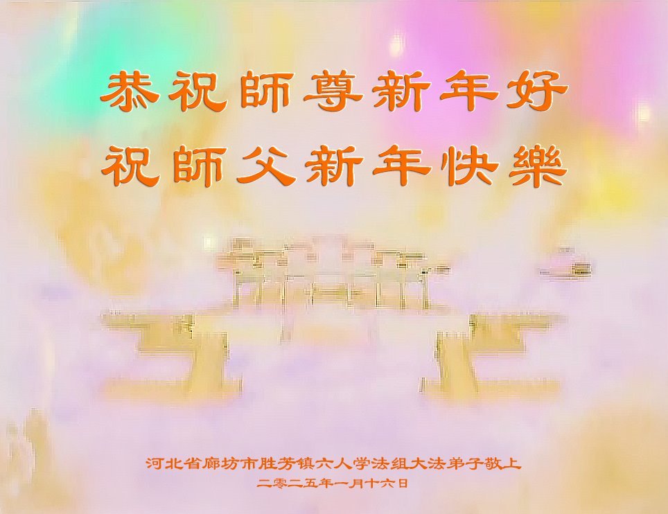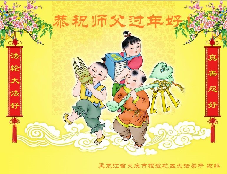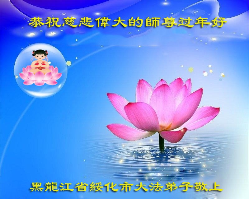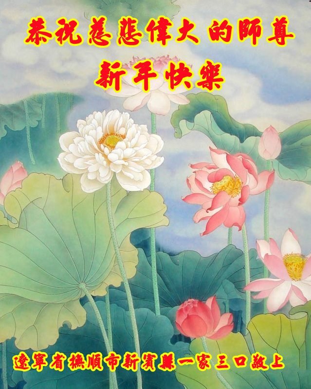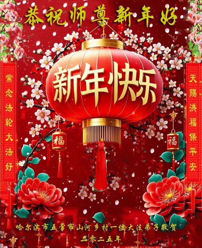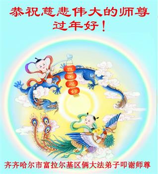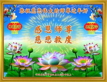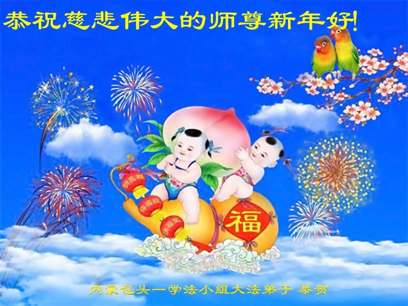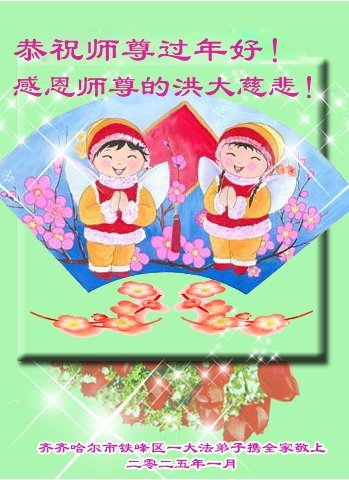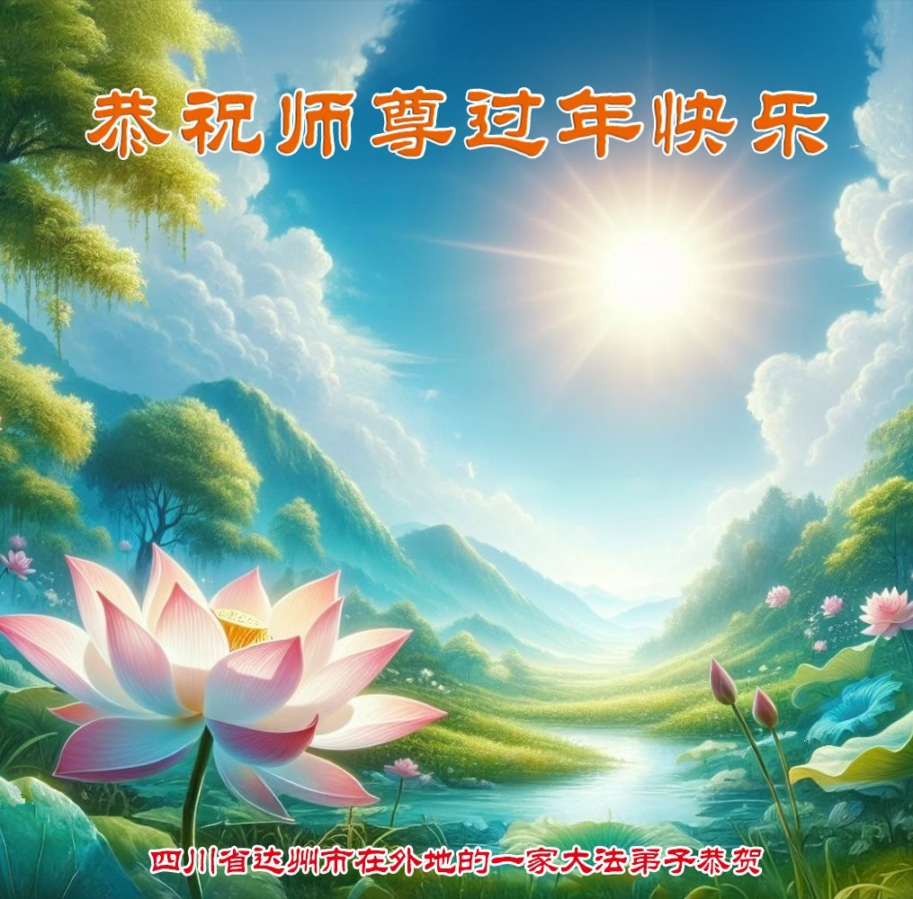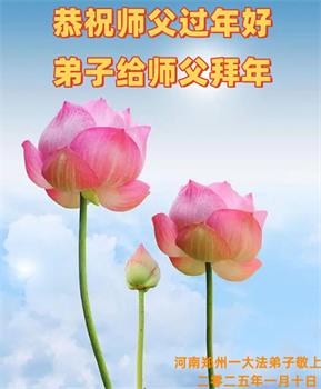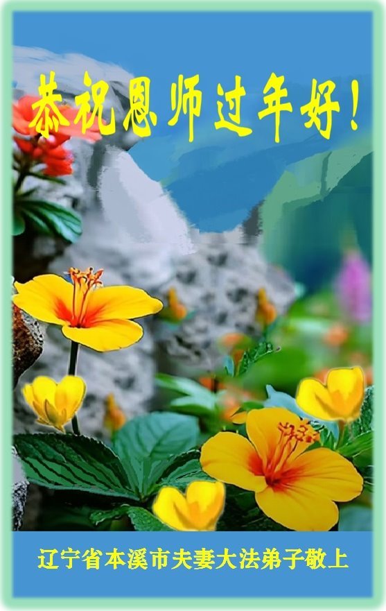 感恩师父的慈悲救度!感恩师父将我们从地狱中捞出洗净,引领我们走上一条返本归真之路。在新年到来之际,我们全家大法弟子及新学员(共6人)给慈悲伟大的师尊拜年:师父过年好!师父您辛苦了!