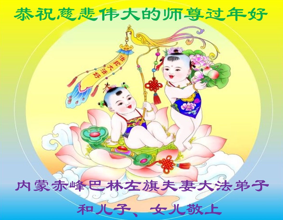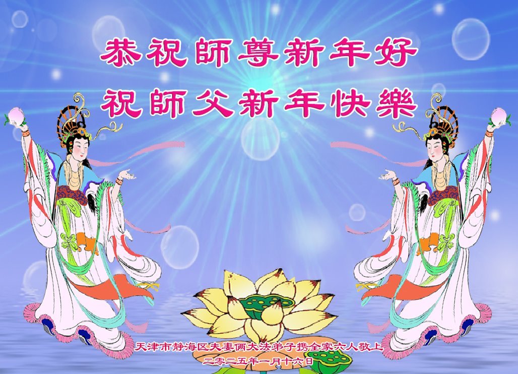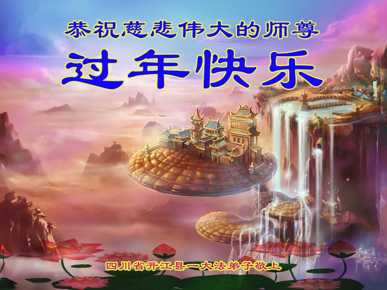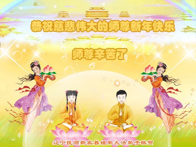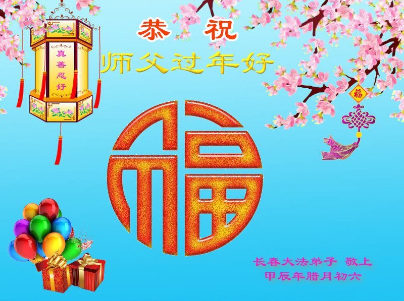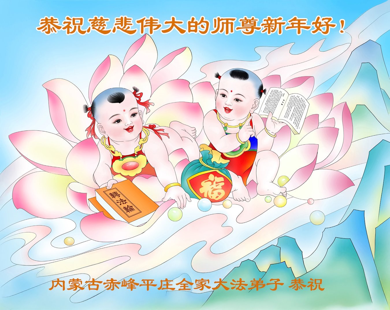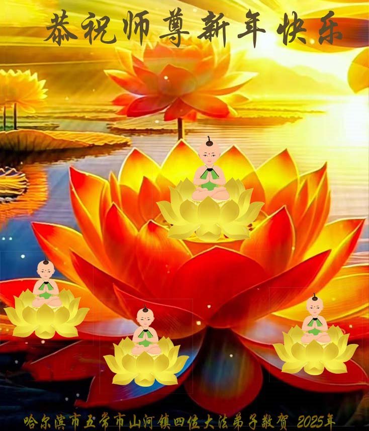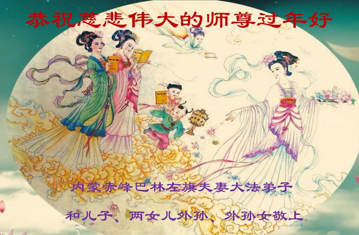 感恩师父的慈悲救度!感恩师父将我们从地狱中捞出洗净,引领我们走上一条返本归真之路。在新年到来之际,我们全家大法弟子及新学员(共6人)给慈悲伟大的师尊拜年:师父过年好!师父您辛苦了!