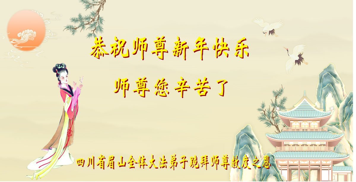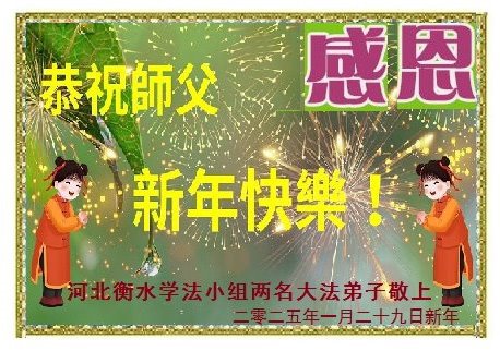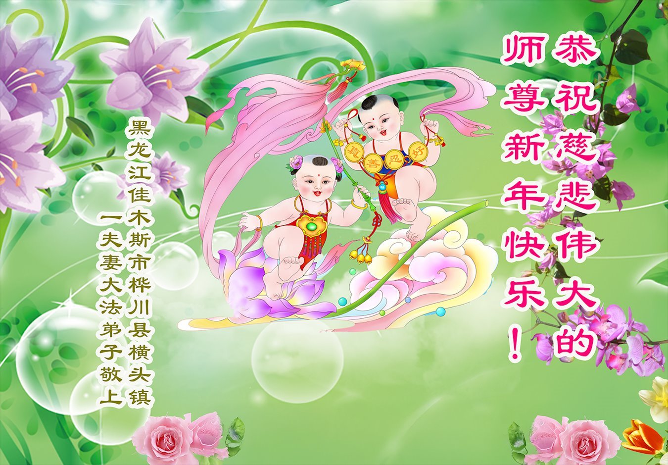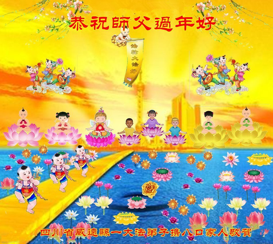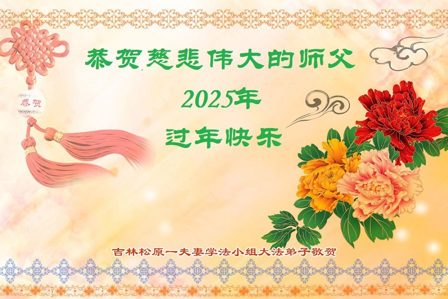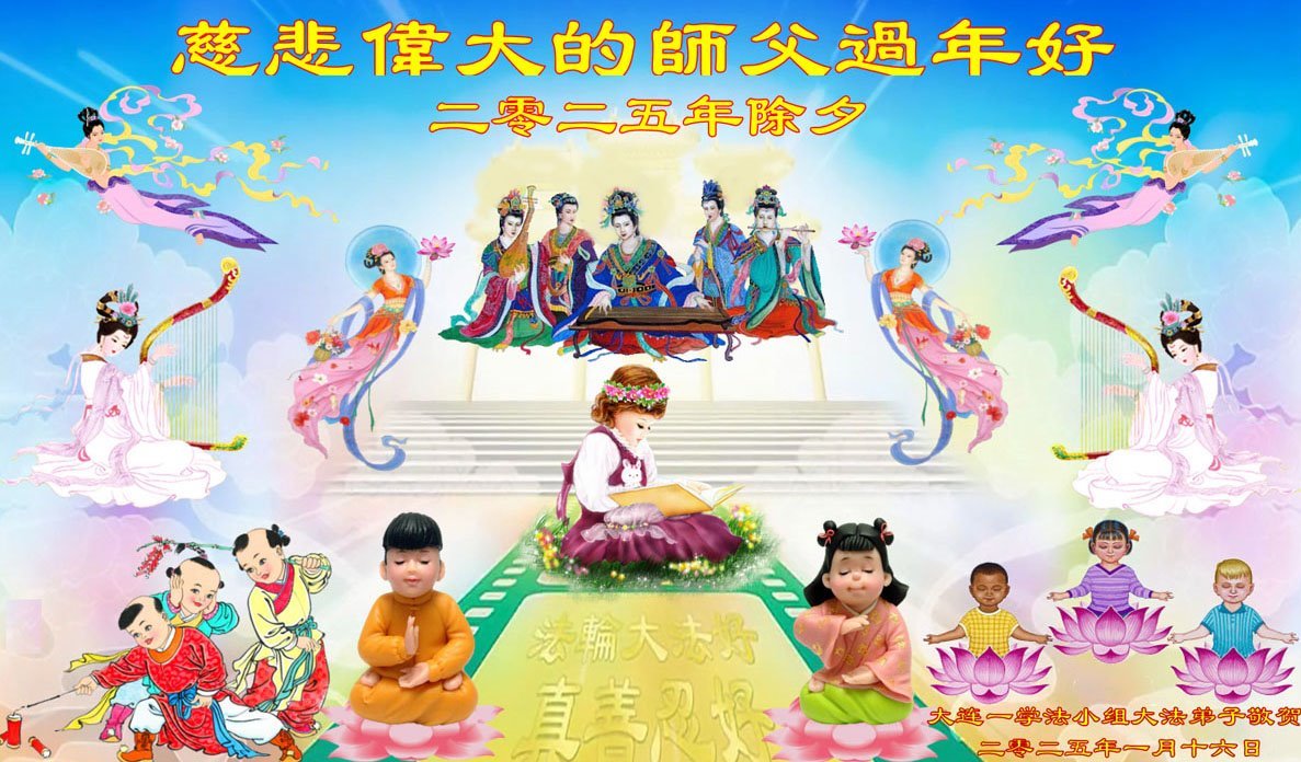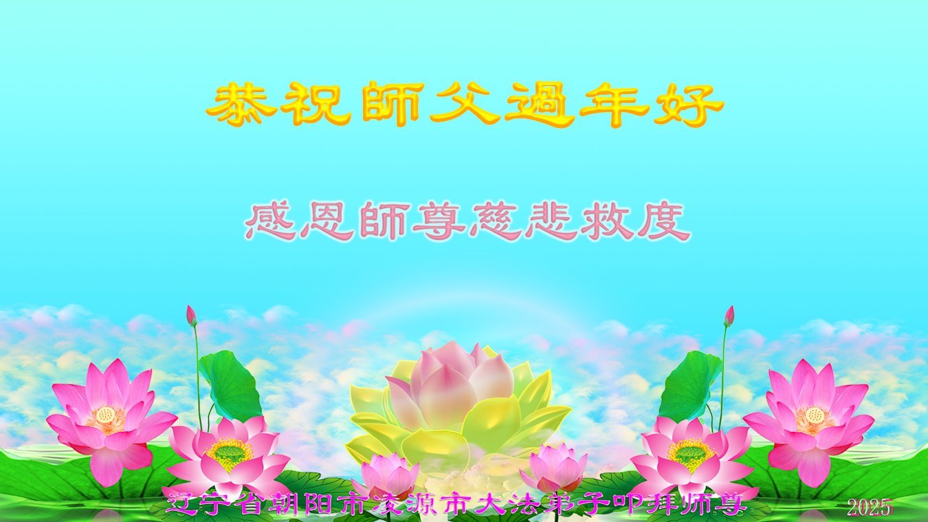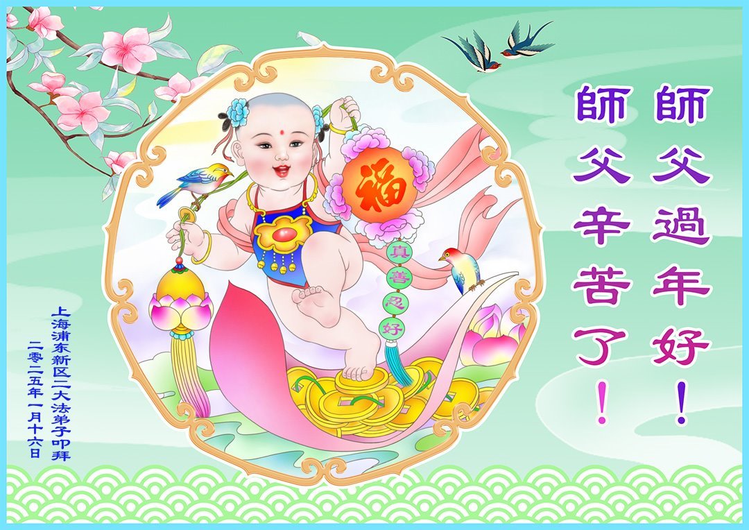 感恩师父的慈悲救度!感恩师父将我们从地狱中捞出洗净,引领我们走上一条返本归真之路。在新年到来之际,我们全家大法弟子及新学员(共6人)给慈悲伟大的师尊拜年:师父过年好!师父您辛苦了!