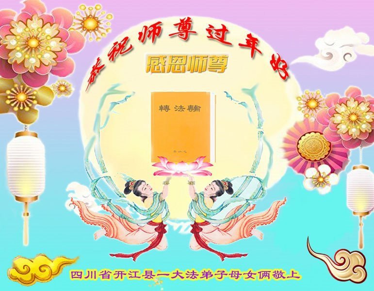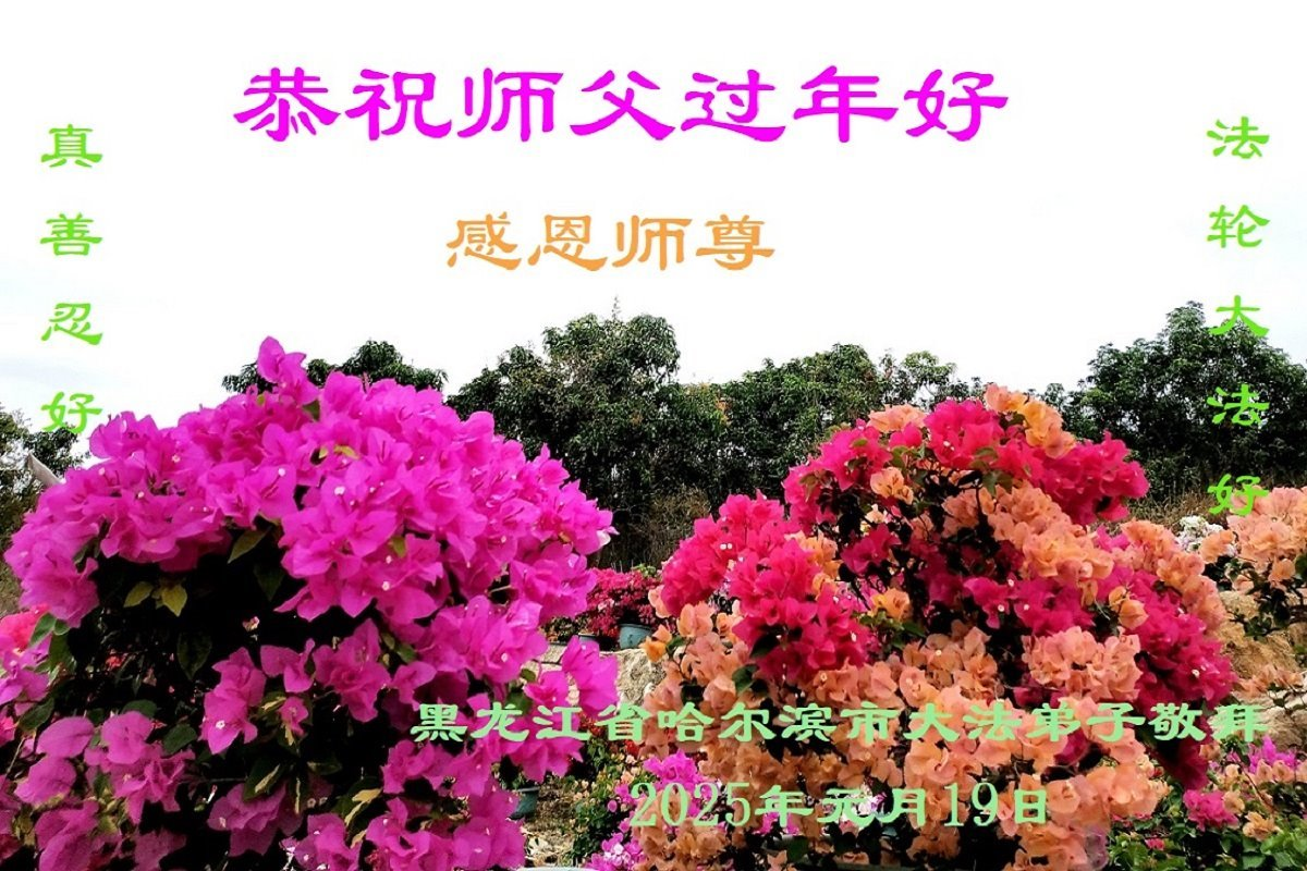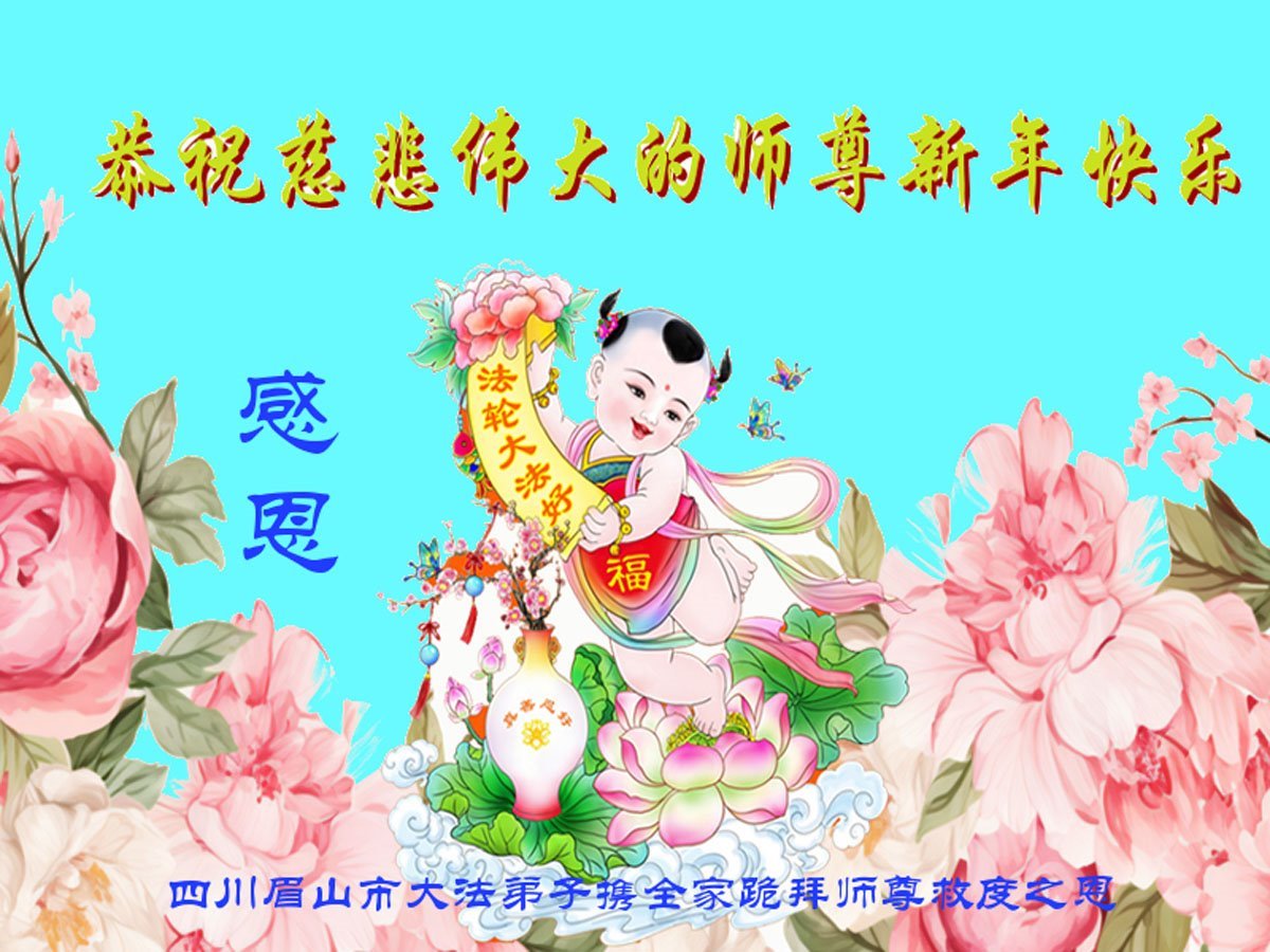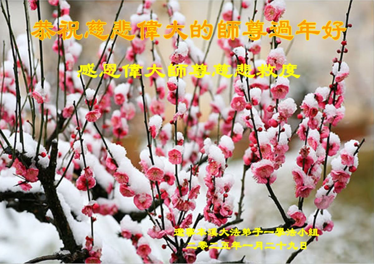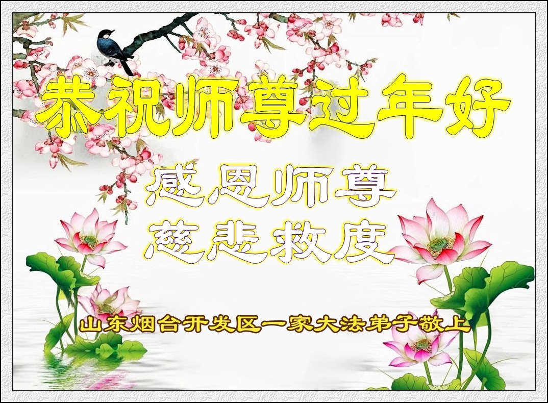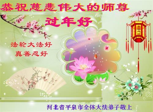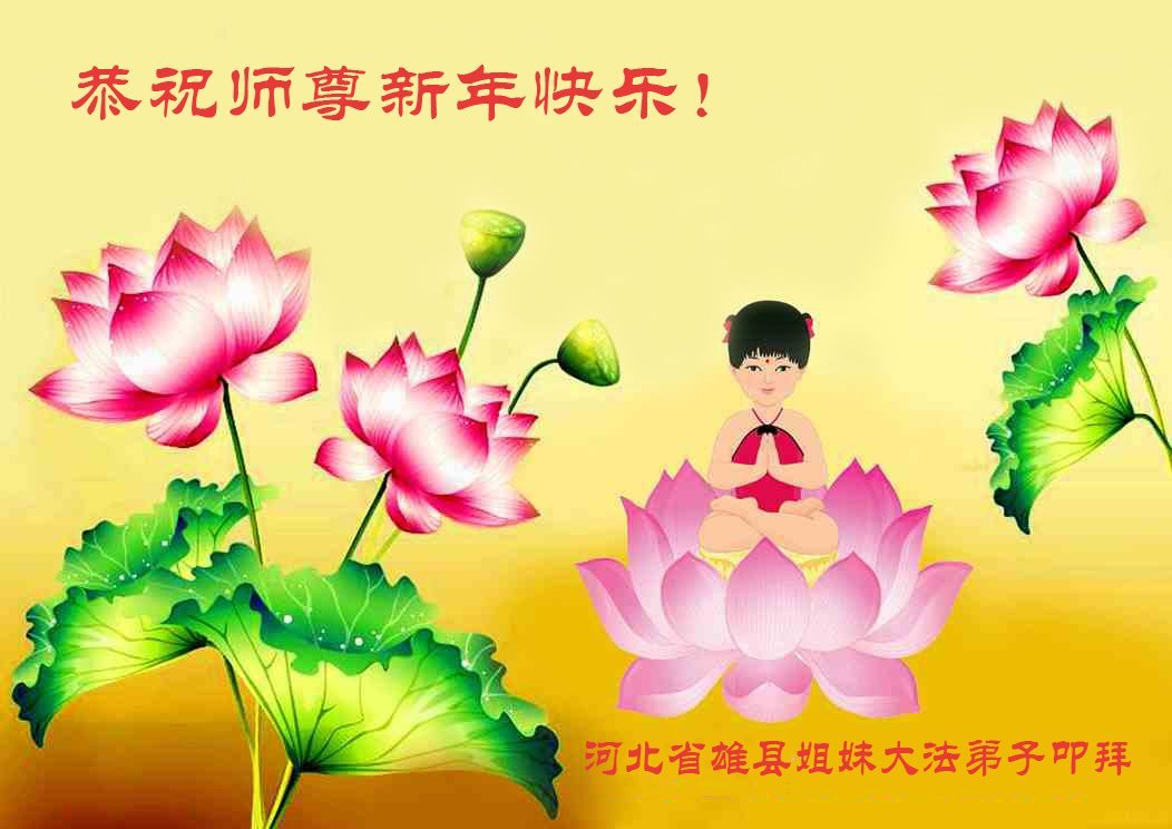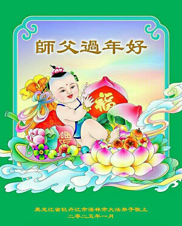 感恩师父的慈悲救度!感恩师父将我们从地狱中捞出洗净,引领我们走上一条返本归真之路。在新年到来之际,我们全家大法弟子及新学员(共6人)给慈悲伟大的师尊拜年:师父过年好!师父您辛苦了!