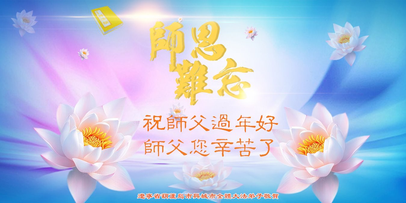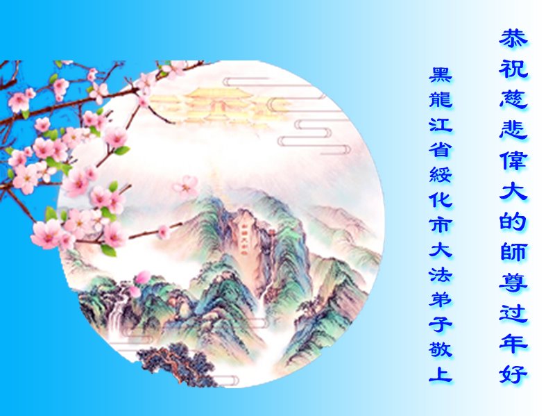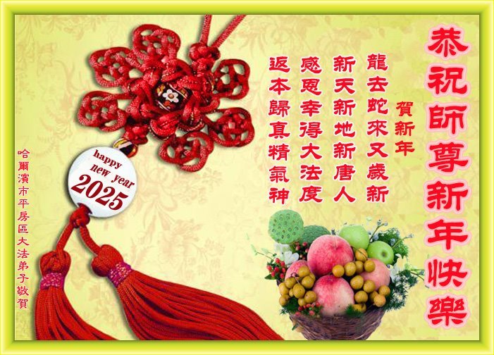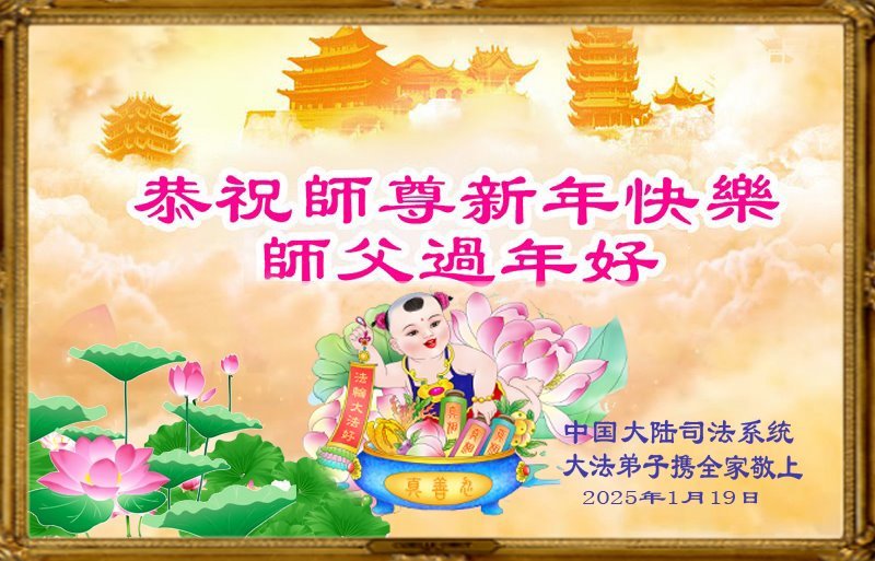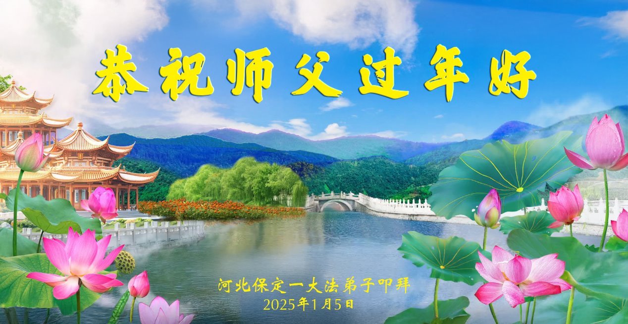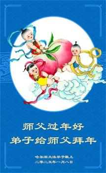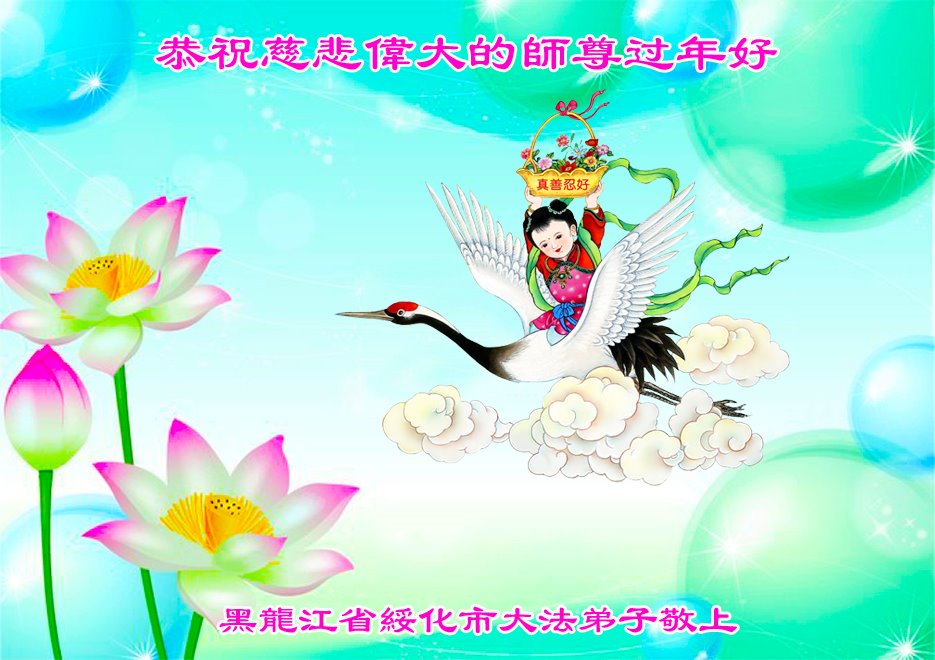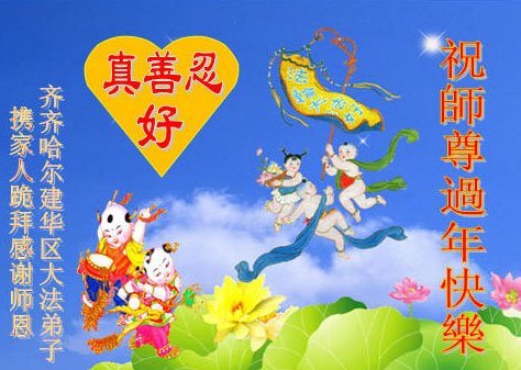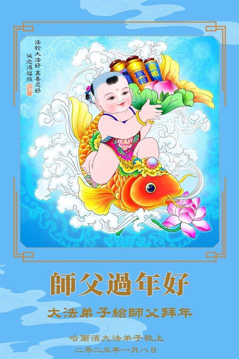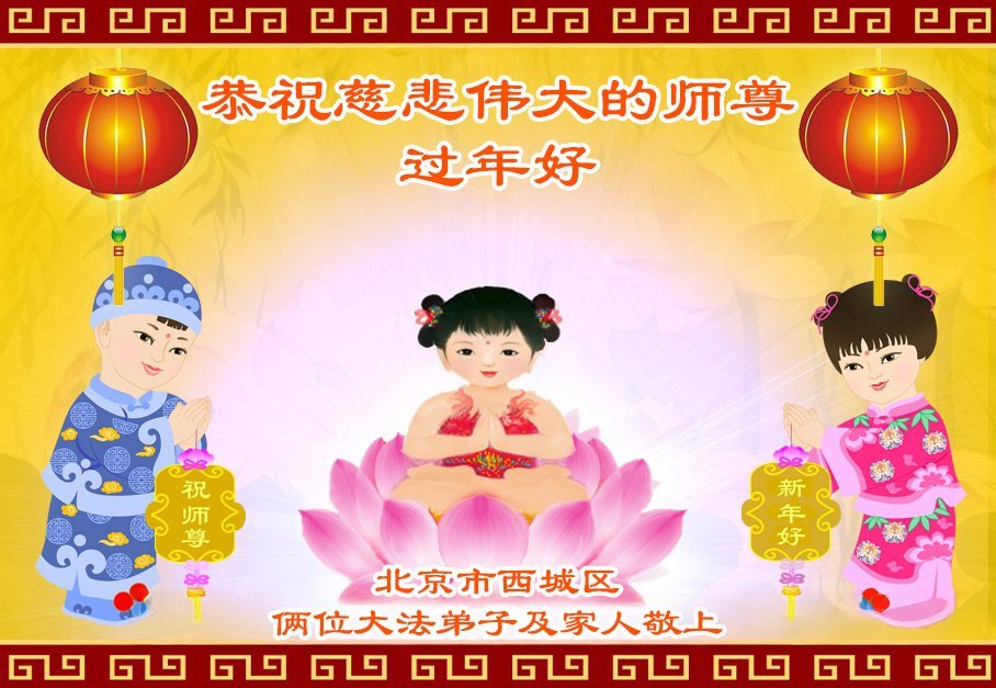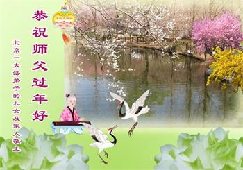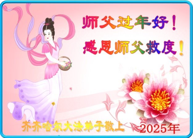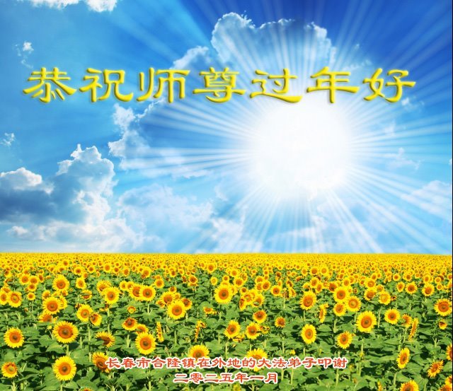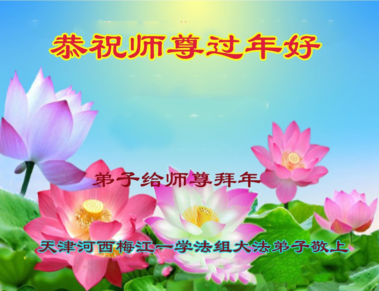 感恩师父的慈悲救度!感恩师父将我们从地狱中捞出洗净,引领我们走上一条返本归真之路。在新年到来之际,我们全家大法弟子及新学员(共6人)给慈悲伟大的师尊拜年:师父过年好!师父您辛苦了!