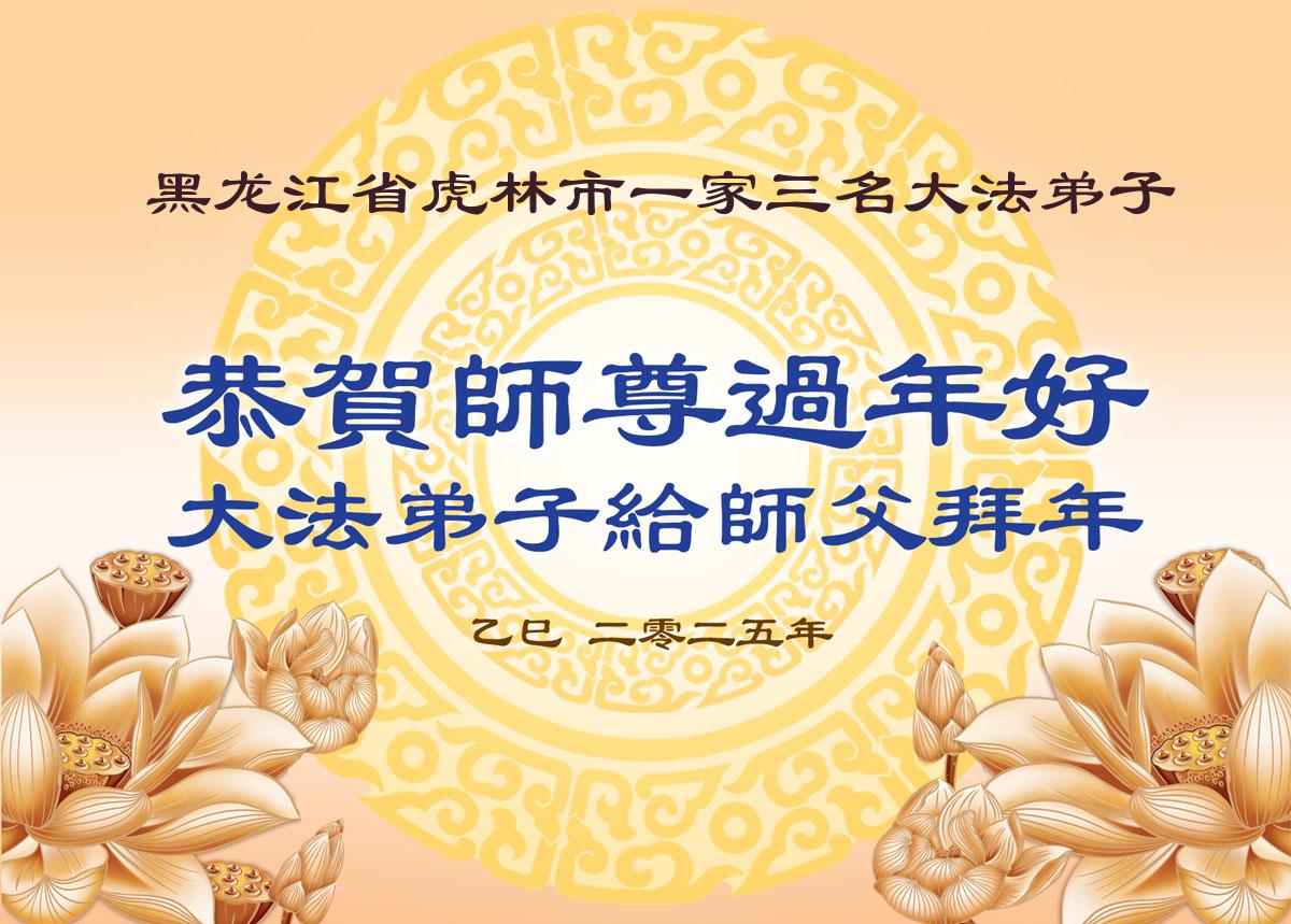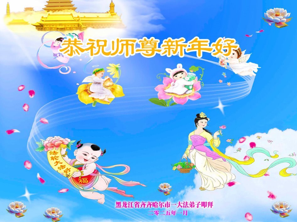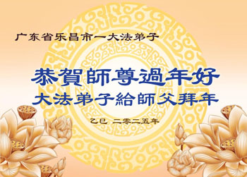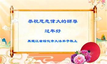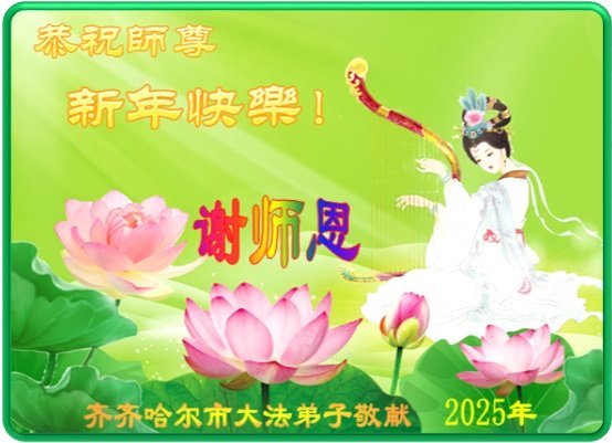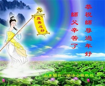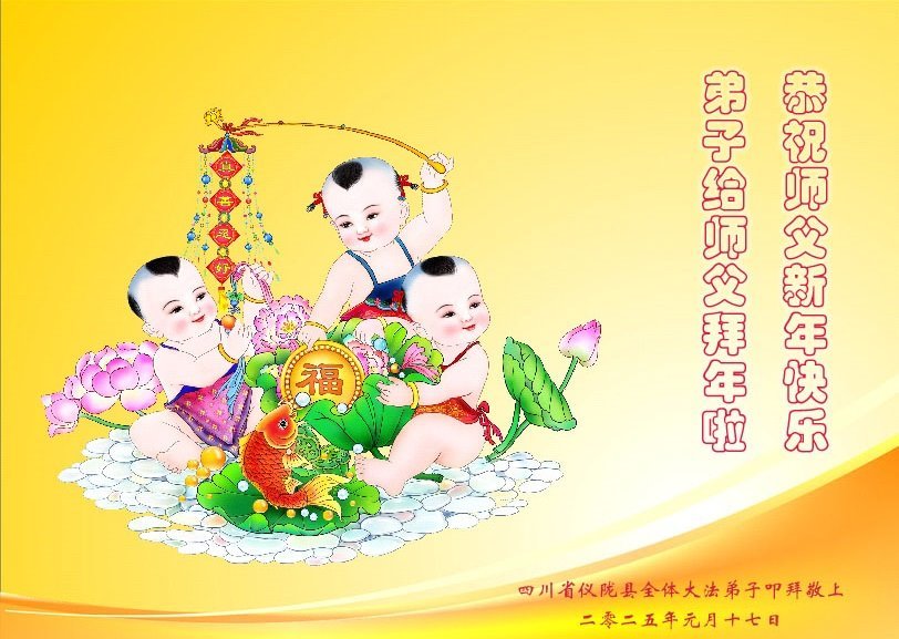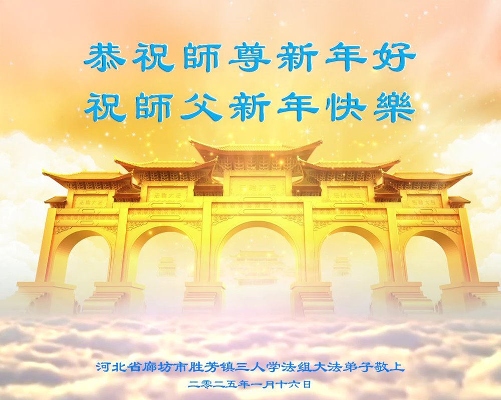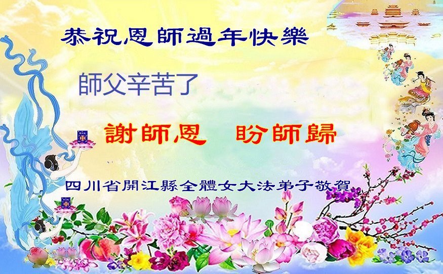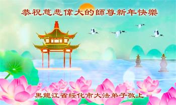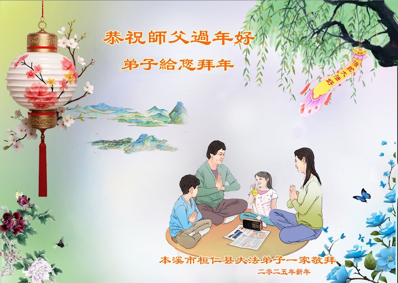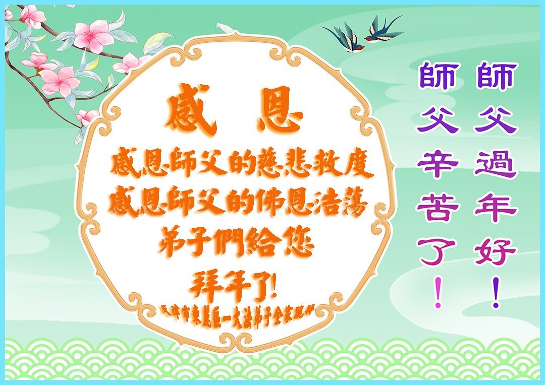 感恩师父的慈悲救度!感恩师父将我们从地狱中捞出洗净,引领我们走上一条返本归真之路。在新年到来之际,我们全家大法弟子及新学员(共6人)给慈悲伟大的师尊拜年:师父过年好!师父您辛苦了!