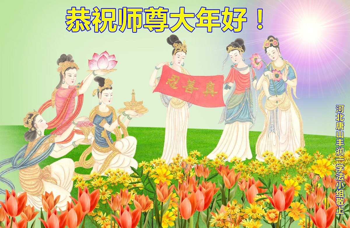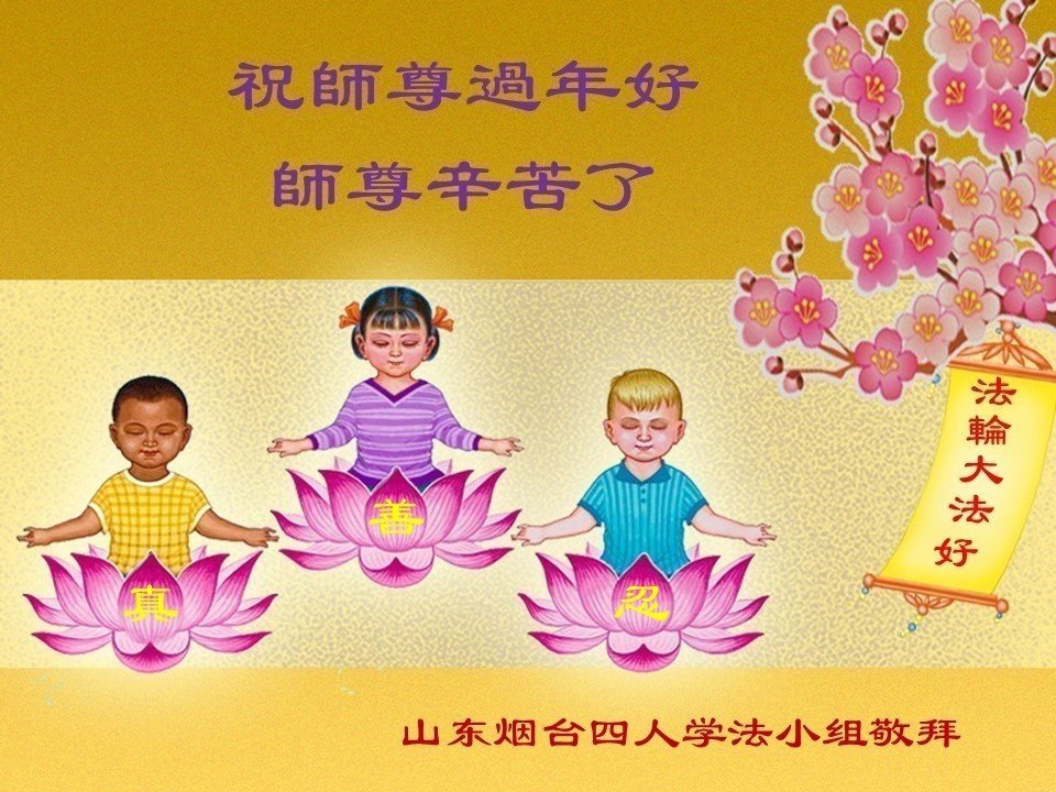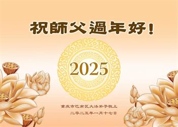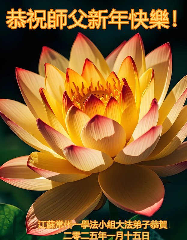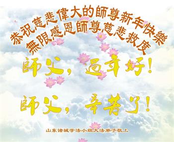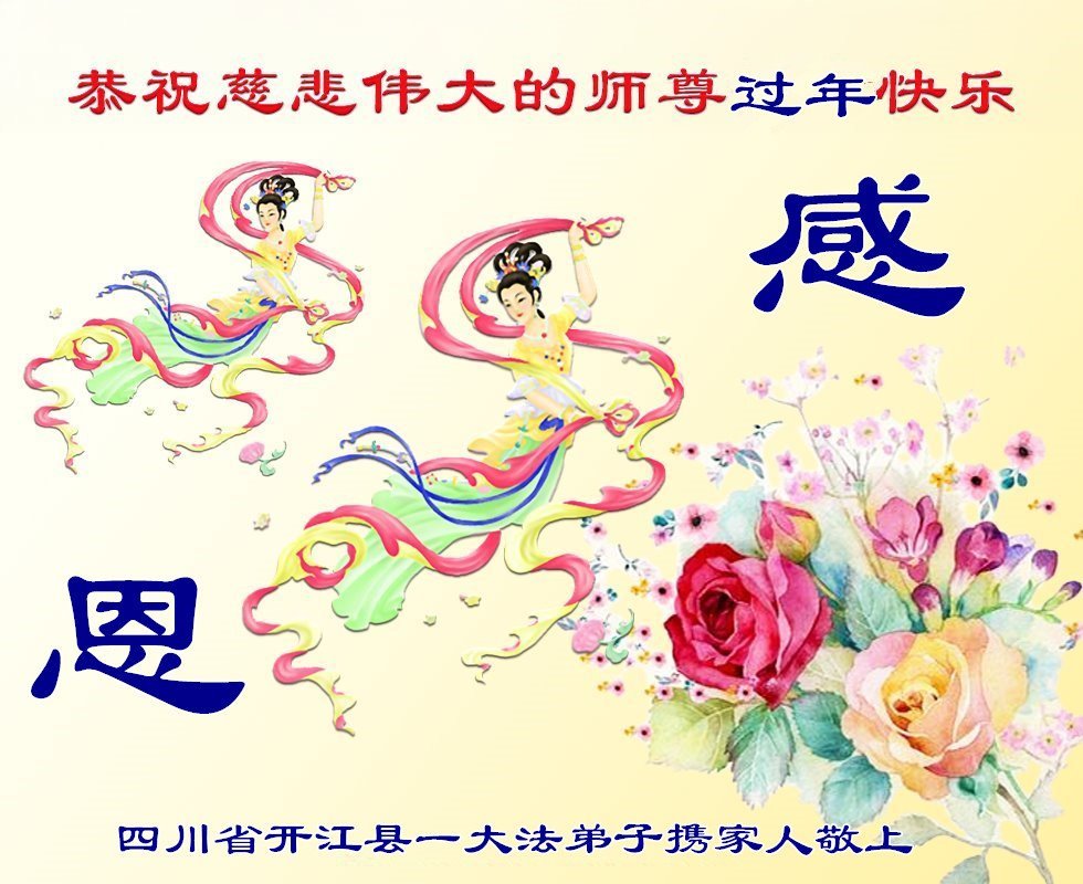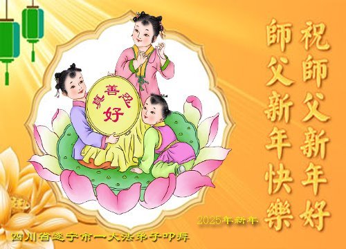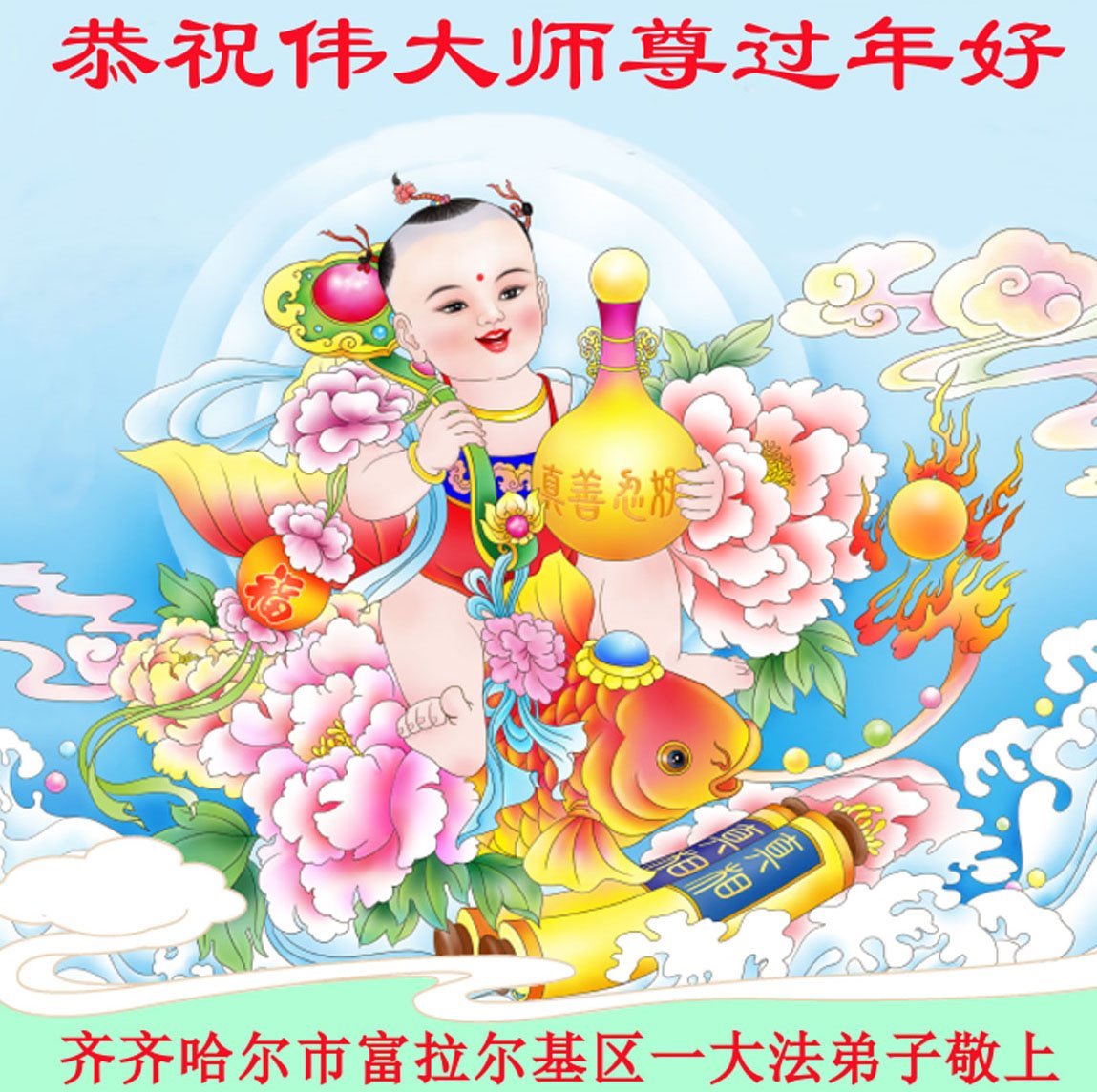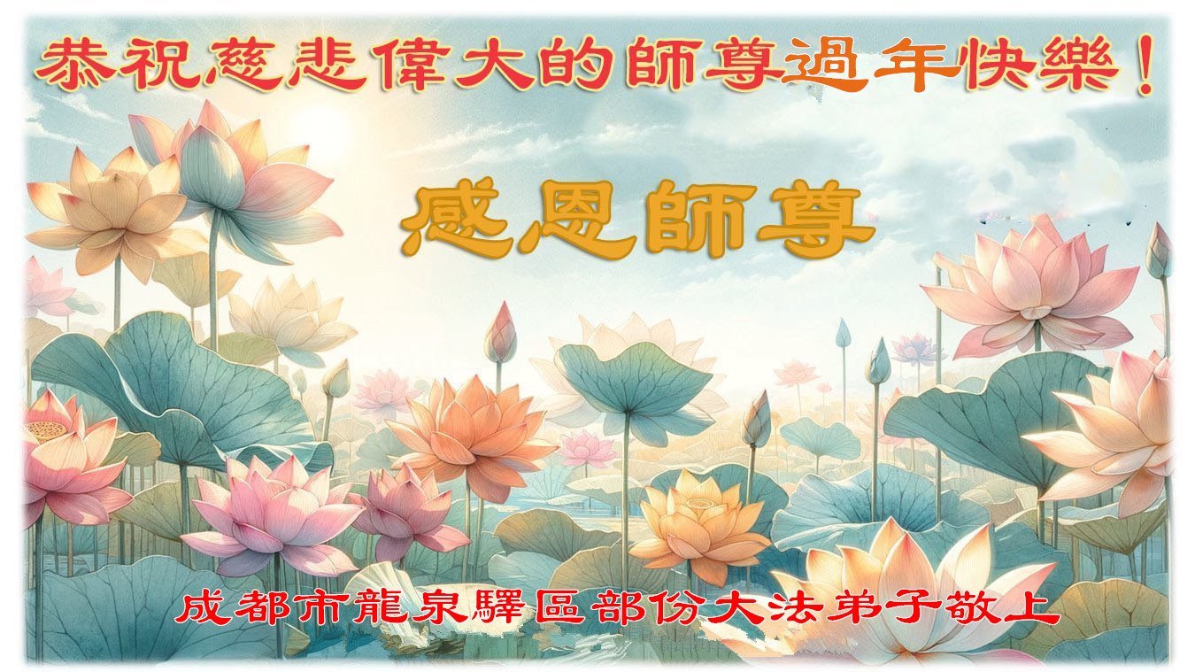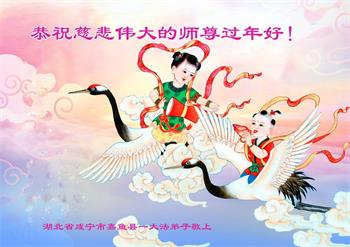 感恩师父的慈悲救度!感恩师父将我们从地狱中捞出洗净,引领我们走上一条返本归真之路。在新年到来之际,我们全家大法弟子及新学员(共6人)给慈悲伟大的师尊拜年:师父过年好!师父您辛苦了!
