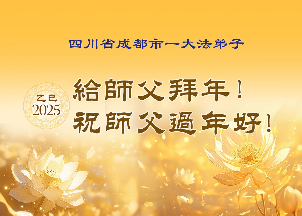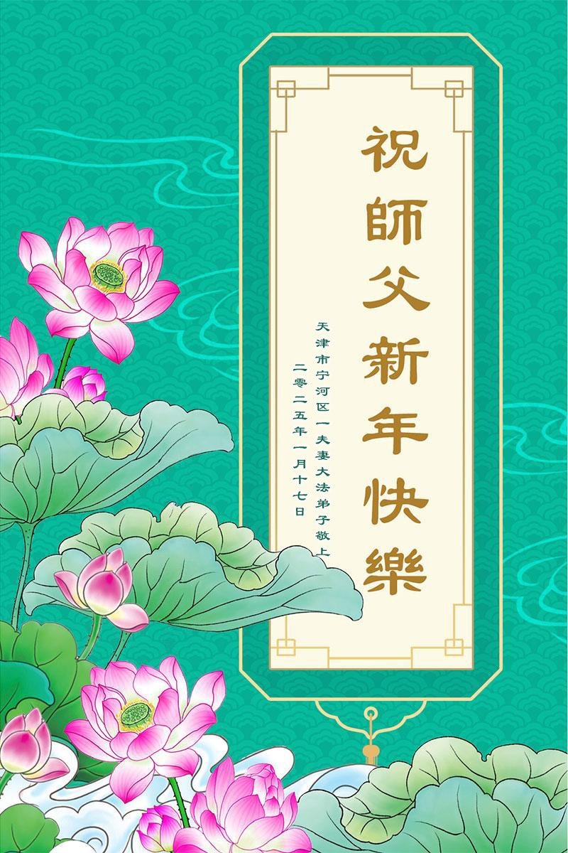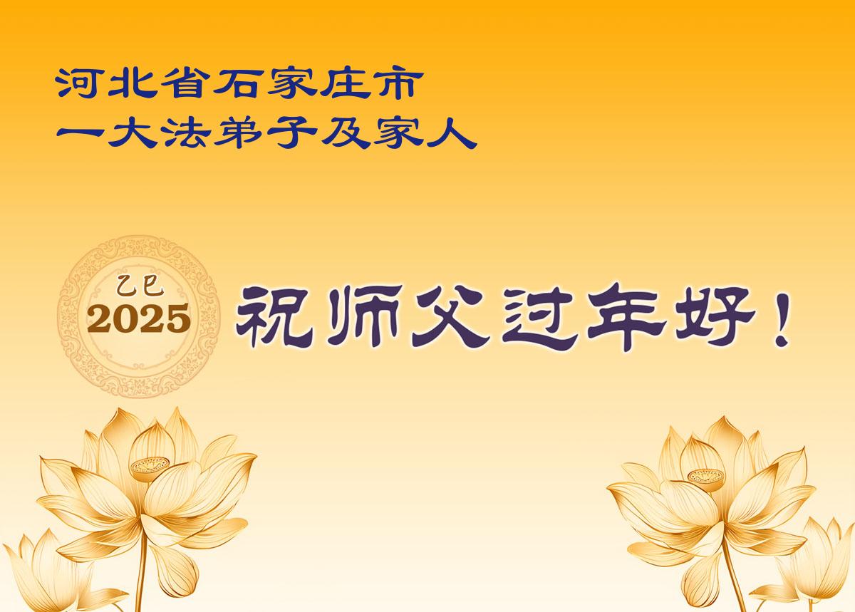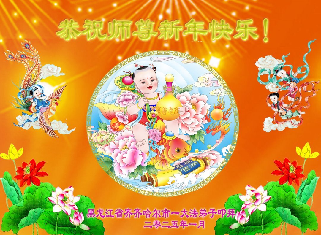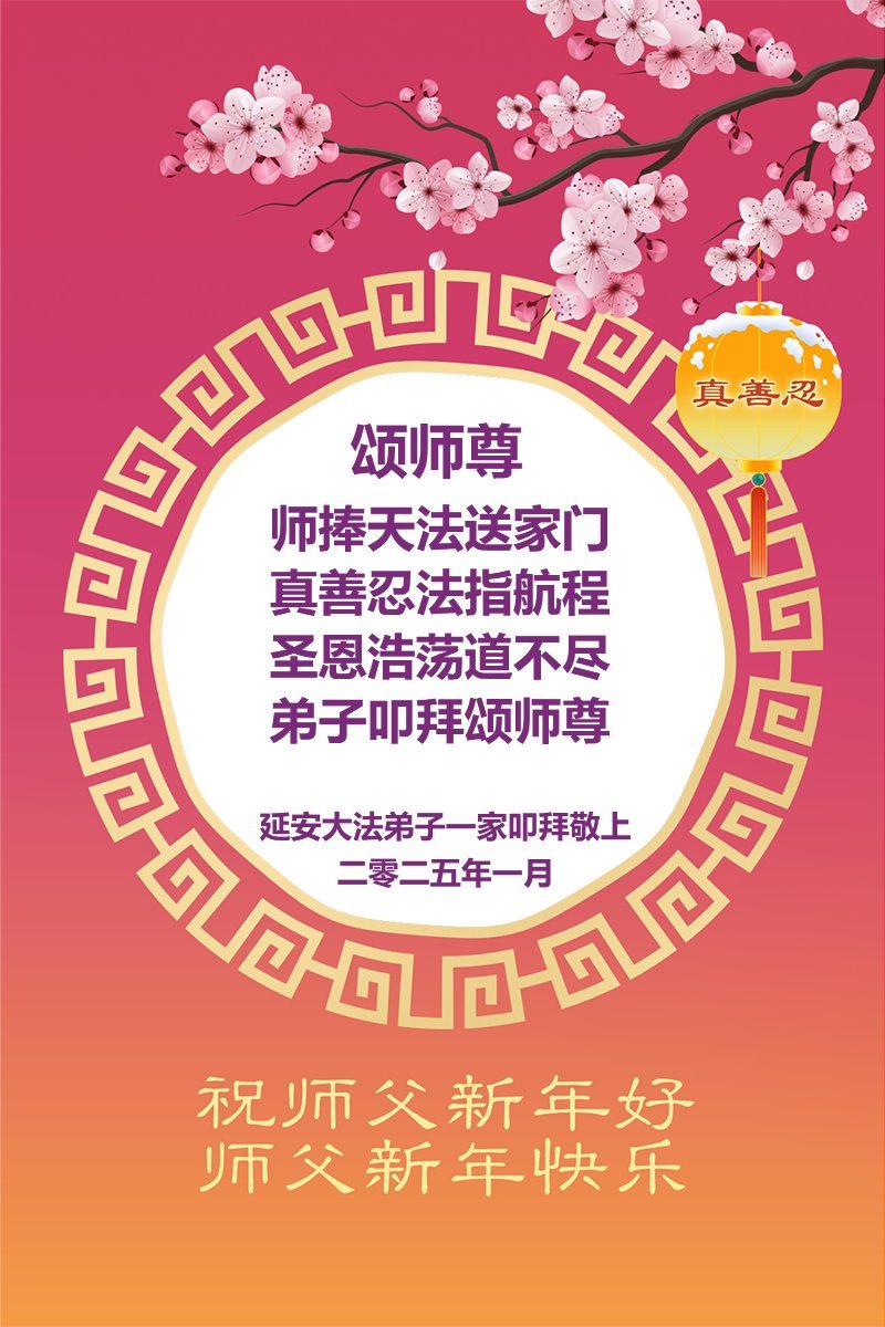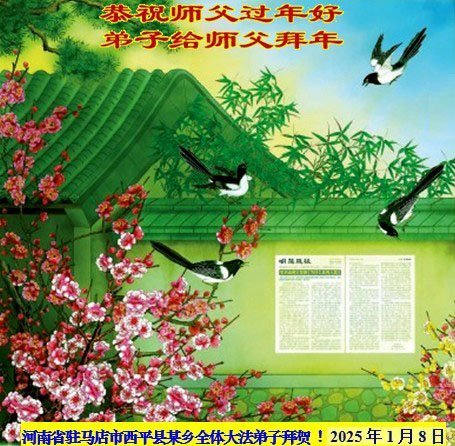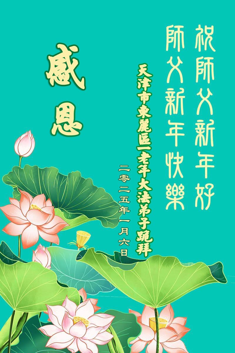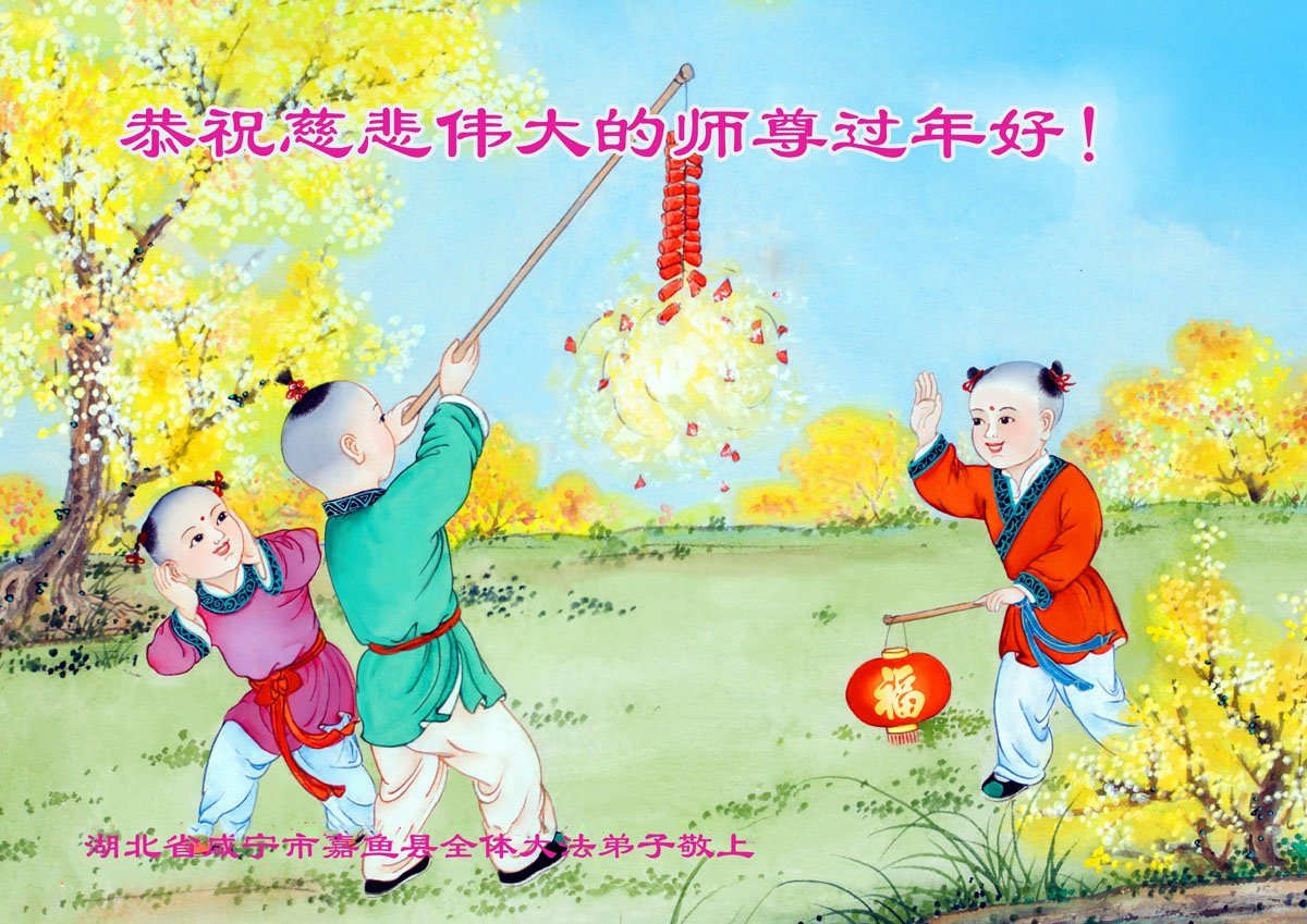 感恩师父的慈悲救度!感恩师父将我们从地狱中捞出洗净,引领我们走上一条返本归真之路。在新年到来之际,我们全家大法弟子及新学员(共6人)给慈悲伟大的师尊拜年:师父过年好!师父您辛苦了!