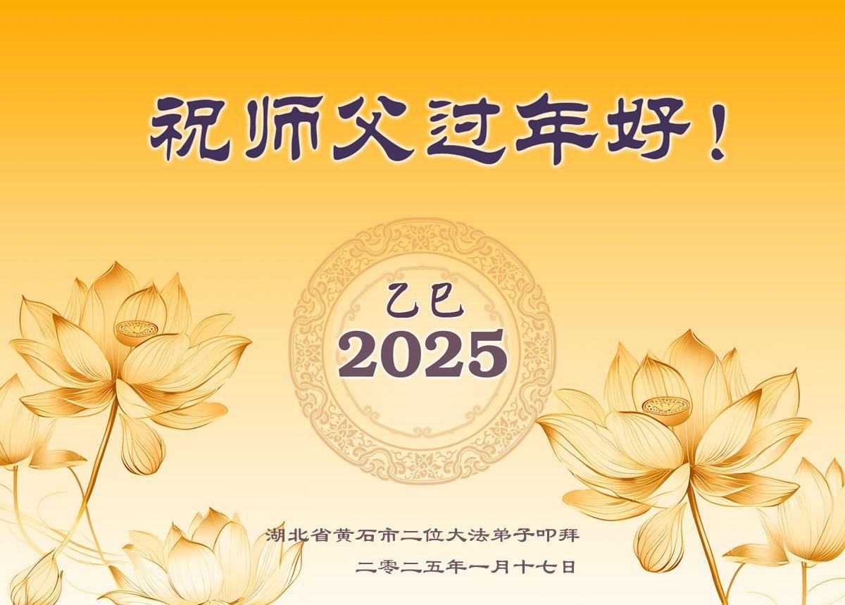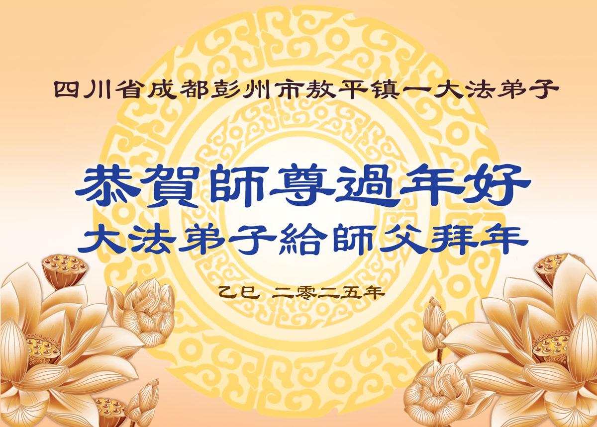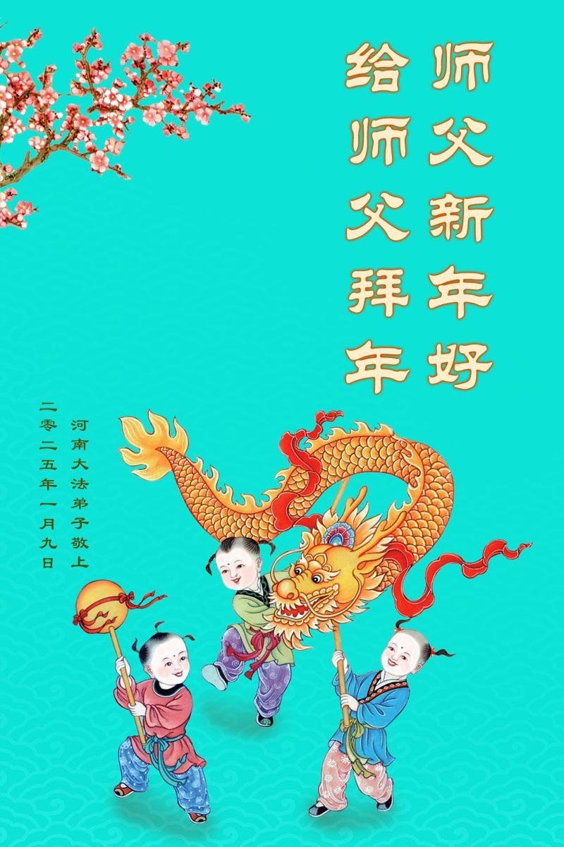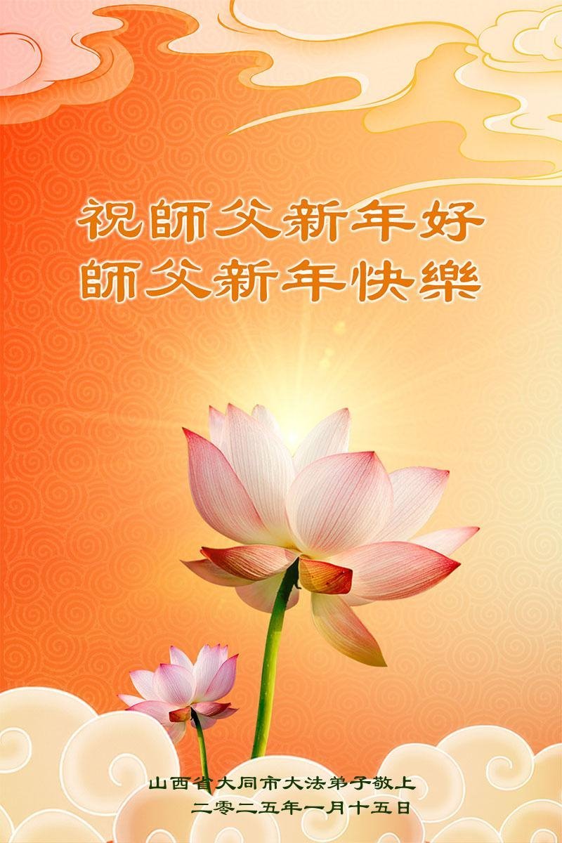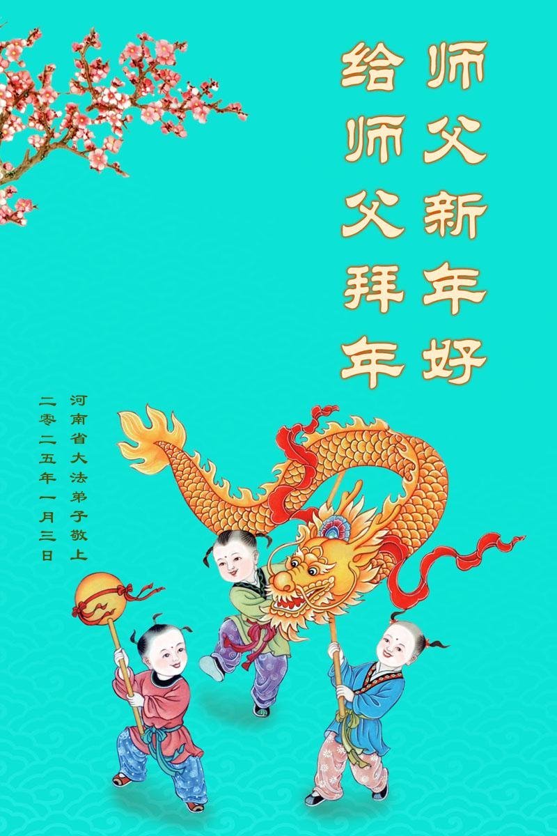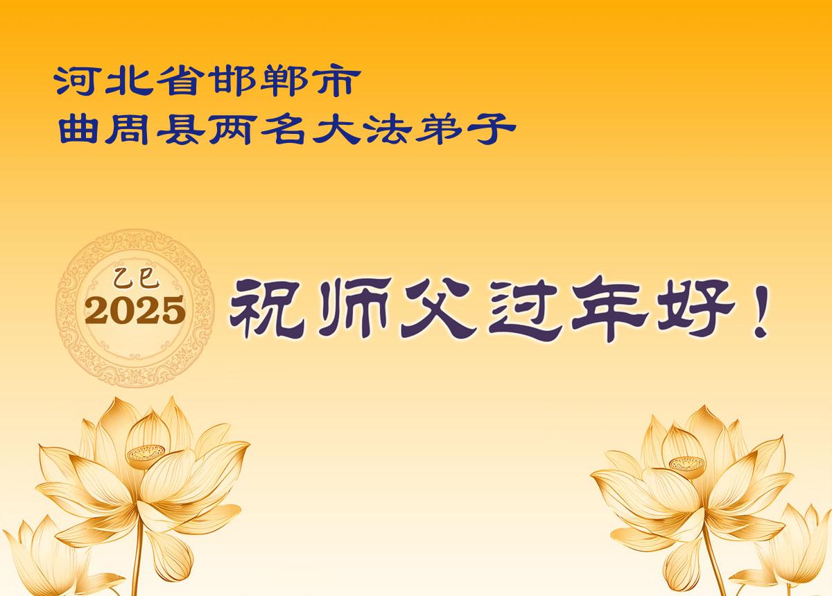 感恩师父的慈悲救度!感恩师父将我们从地狱中捞出洗净,引领我们走上一条返本归真之路。在新年到来之际,我们全家大法弟子及新学员(共6人)给慈悲伟大的师尊拜年:师父过年好!师父您辛苦了!