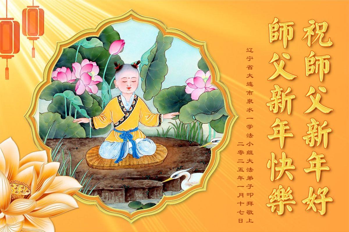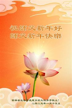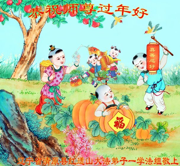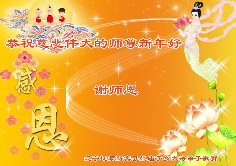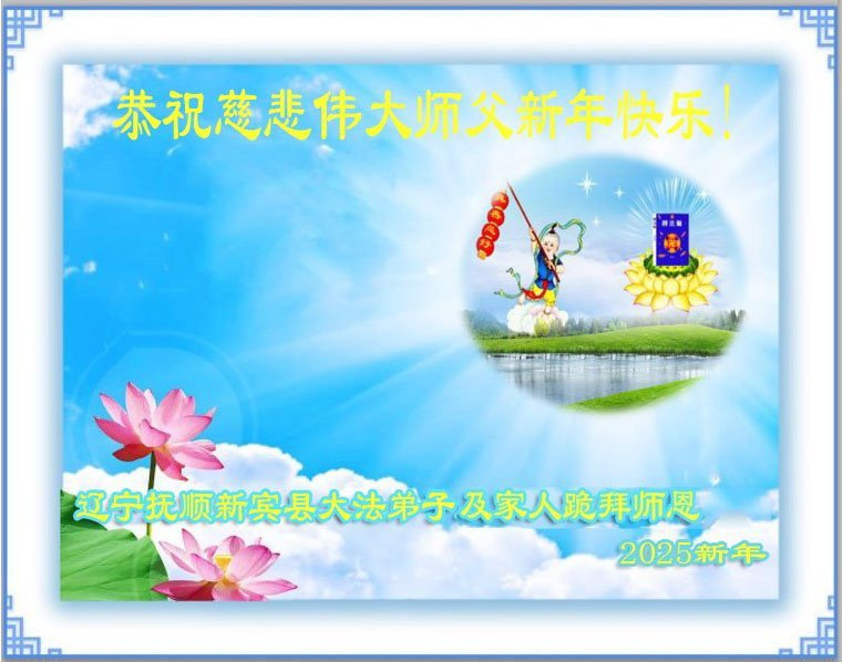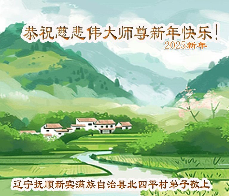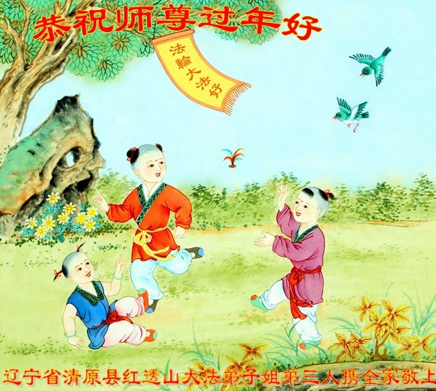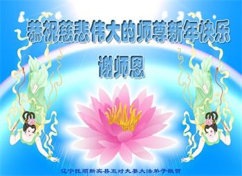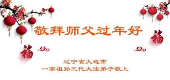 我是辽宁省凌源市农民,也是一名新学员,我带领我全家人给师父送上新年祝福,恭祝慈悲伟大的师父新年快乐!