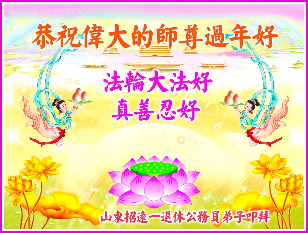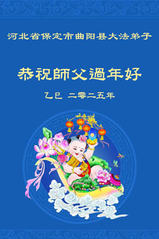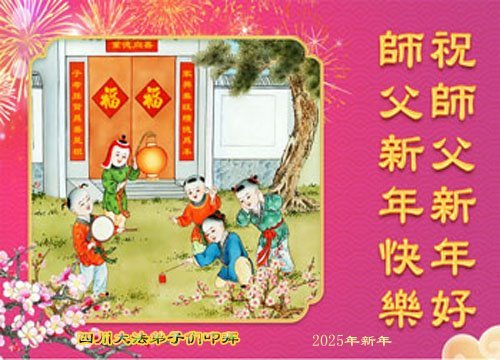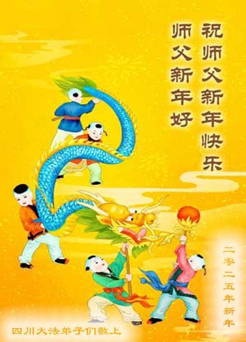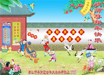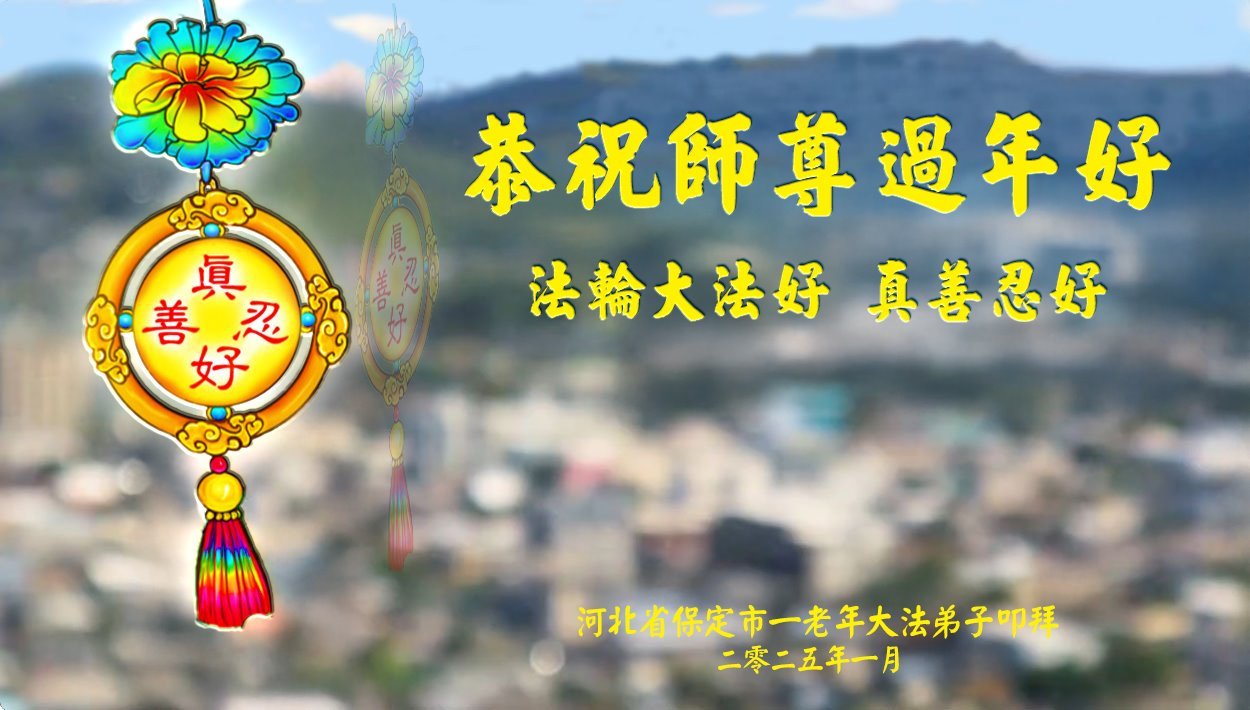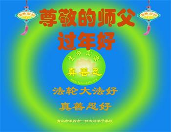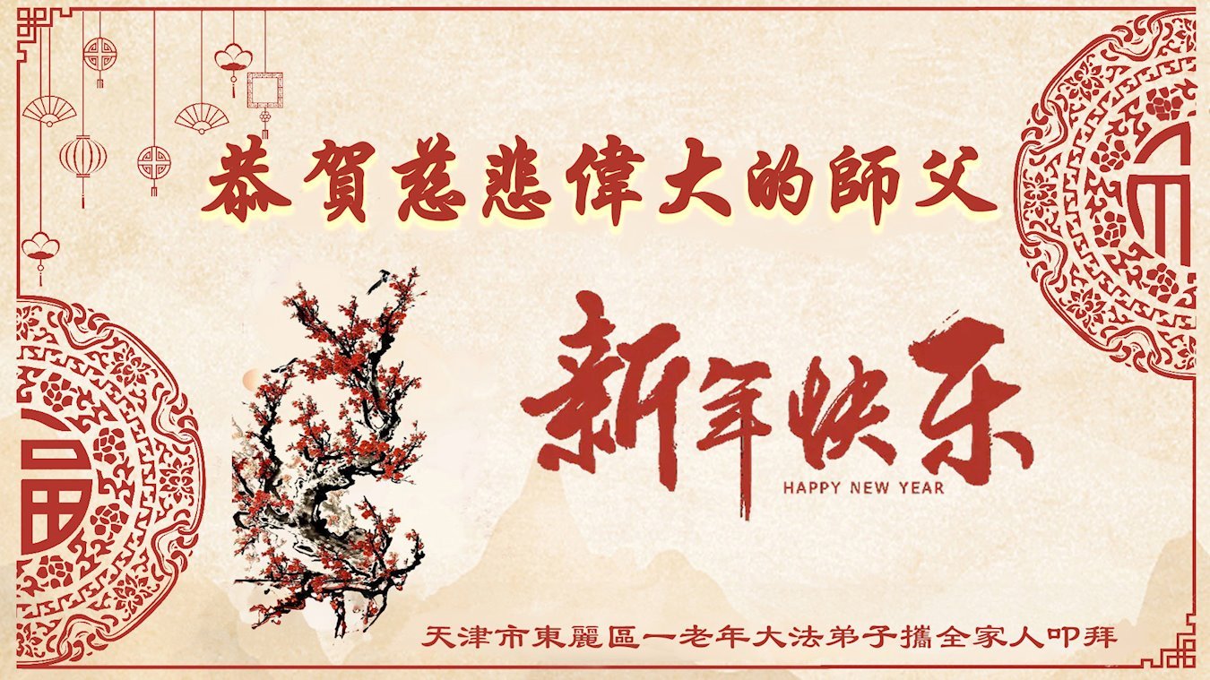 我今年八十四岁,是得法四年的新学员。我身上几种难治的病都好了。我这么大岁数了,师父为我清理身体、祛病,我真心感谢师父救命之恩!我们全家人祝师父过年好!