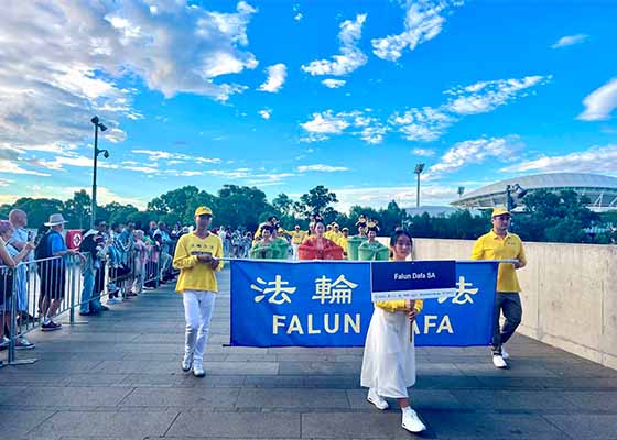 一月二十六日,法轮功学员在阿德莱德参加澳洲国庆日游行庆典,与成千上万的民众共祝国庆,同时展示法轮大法,分享真善忍的美好。