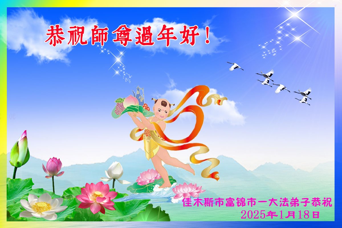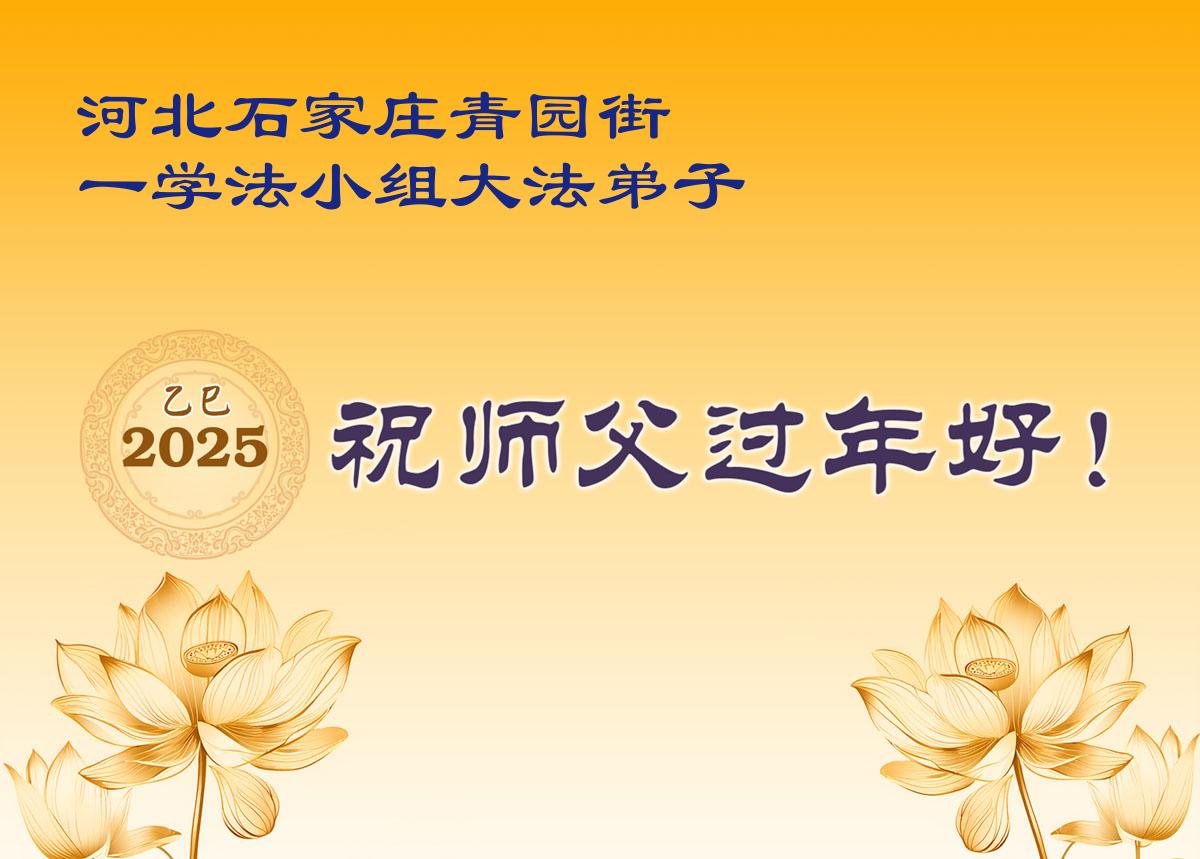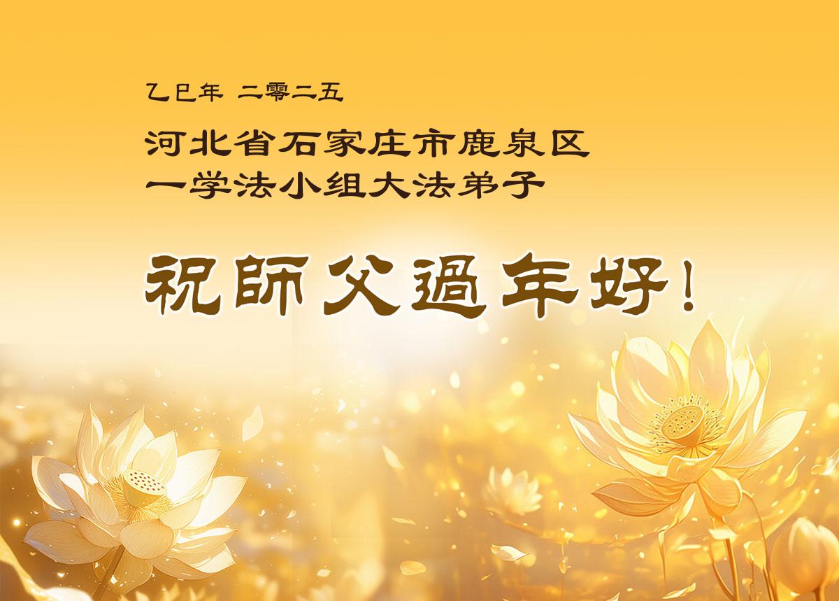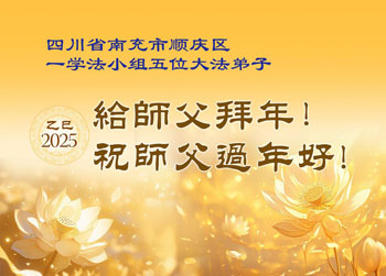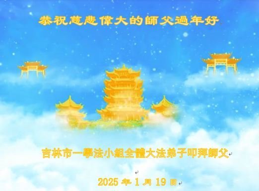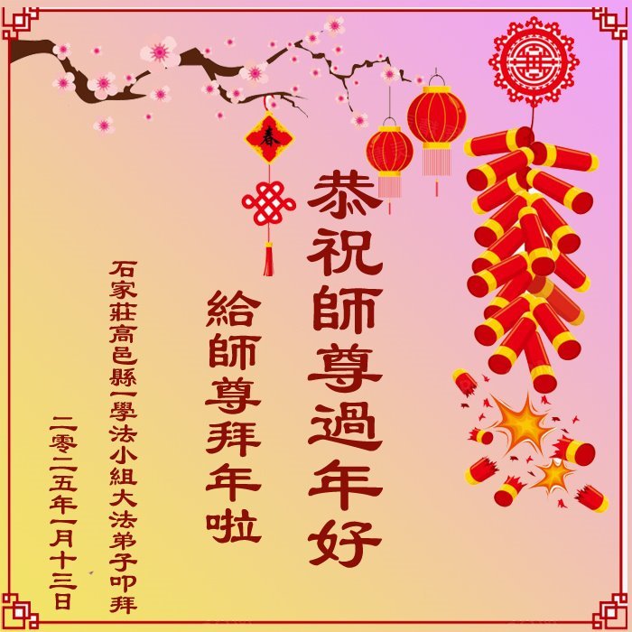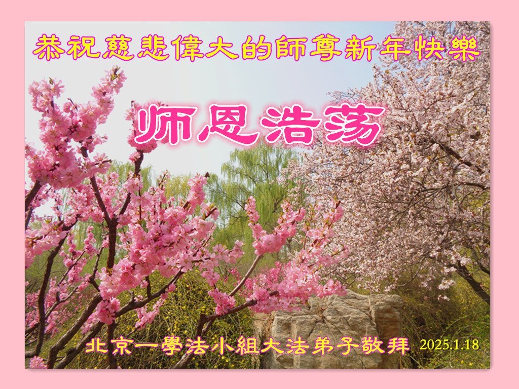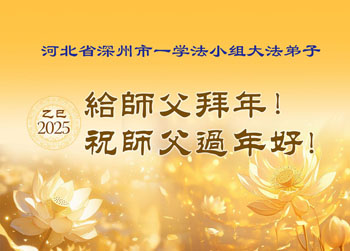 弟子们也代表学法小组大法弟子给师尊拜年,恭祝师尊新年好!弟子们一定努力修好自己,在生活中做到无怨无恨,以苦为乐,讲好真相,多救人,跟师尊回家!