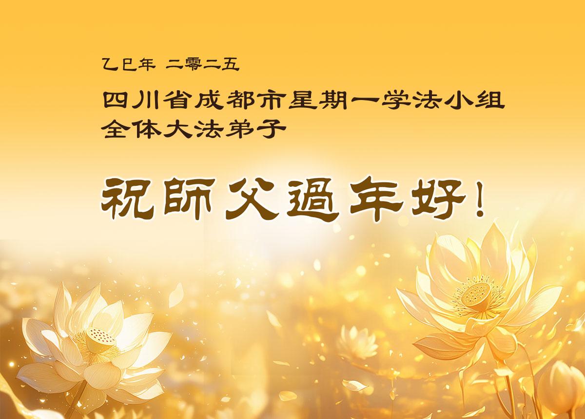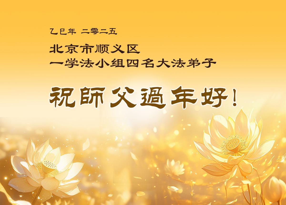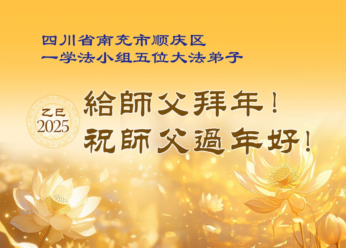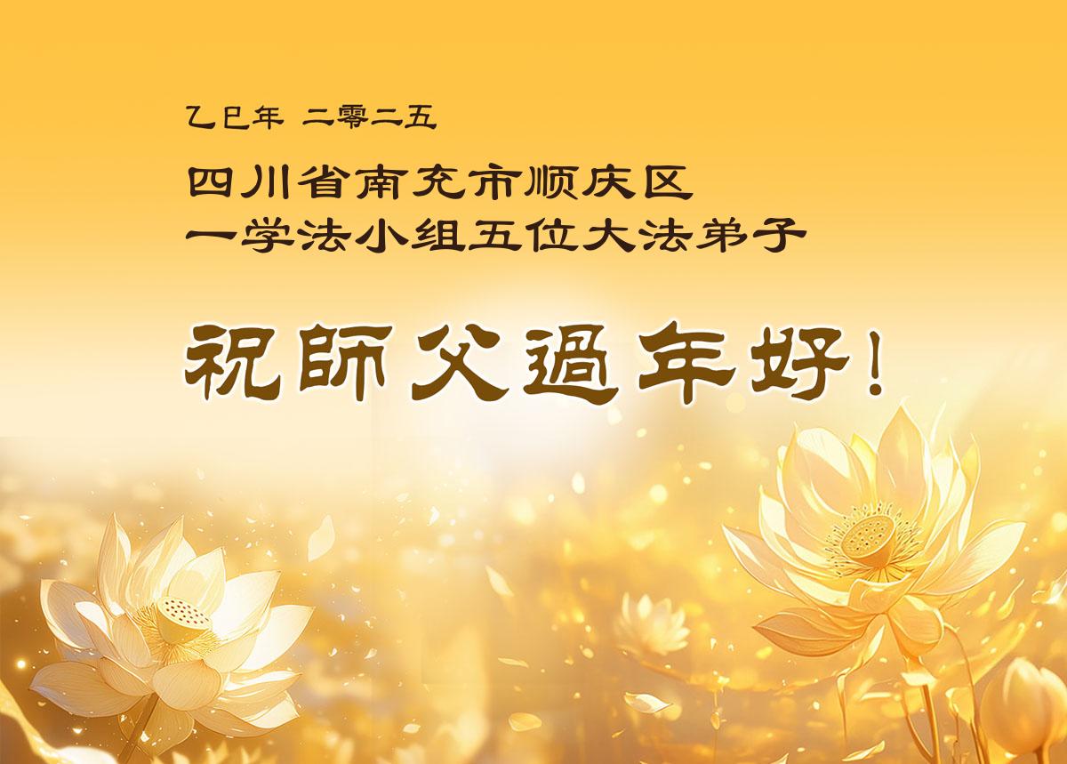 弟子们也代表学法小组大法弟子给师尊拜年,恭祝师尊新年好!弟子们一定努力修好自己,在生活中做到无怨无恨,以苦为乐,讲好真相,多救人,跟师尊回家!