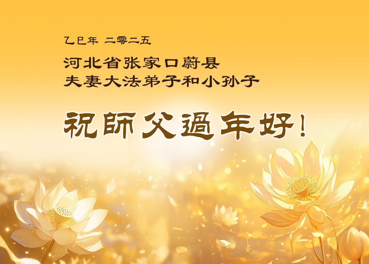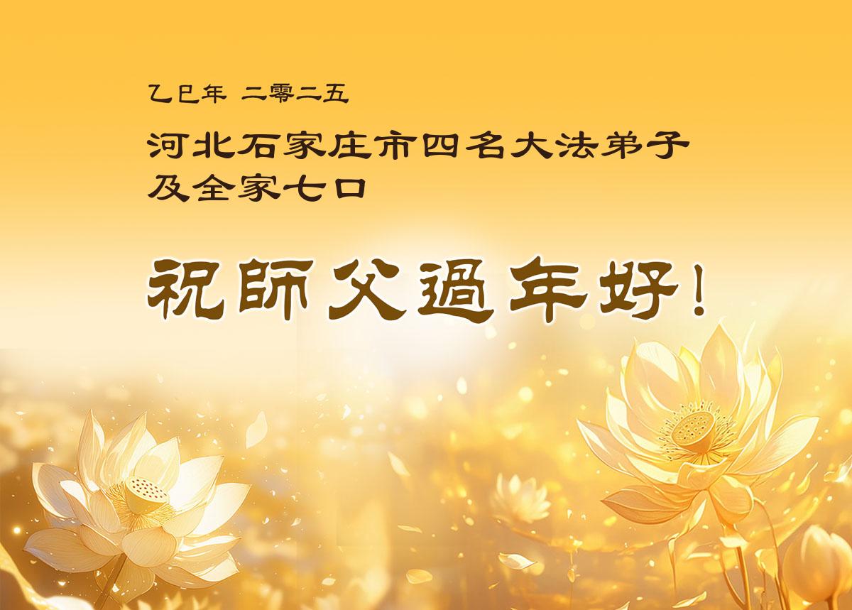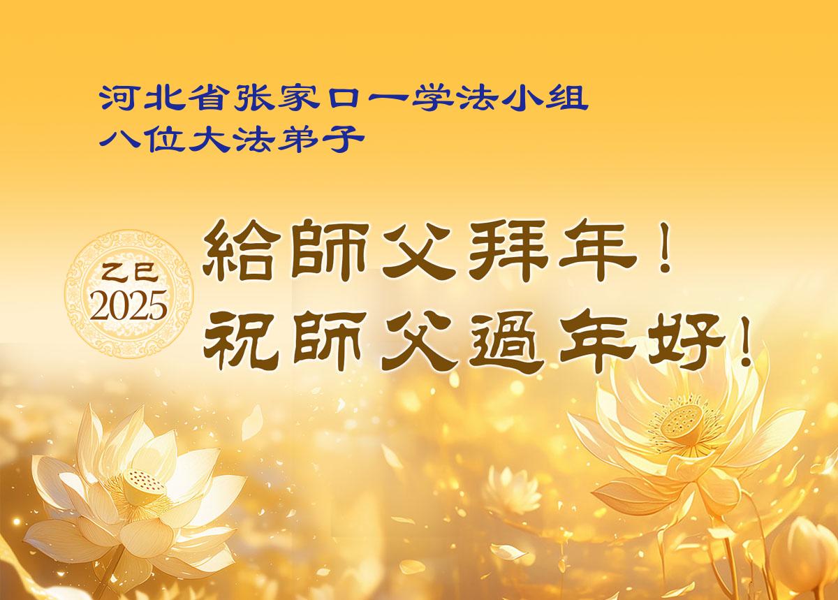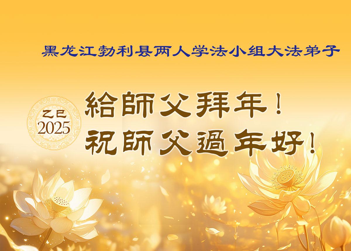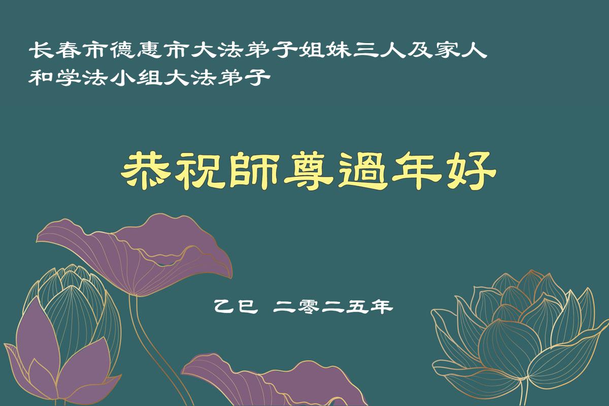 弟子们也代表学法小组大法弟子给师尊拜年,恭祝师尊新年好!弟子们一定努力修好自己,在生活中做到无怨无恨,以苦为乐,讲好真相,多救人,跟师尊回家!