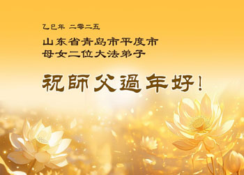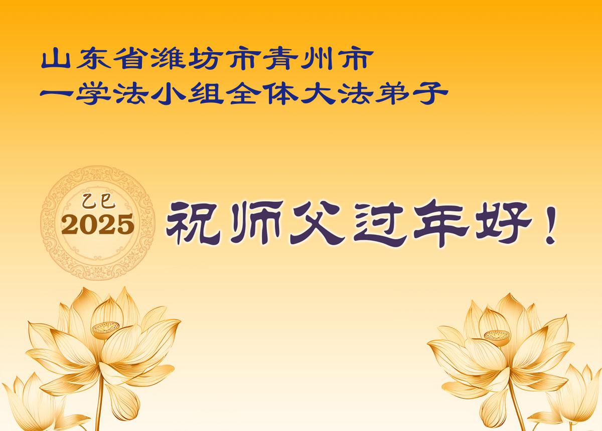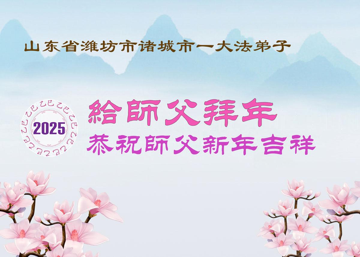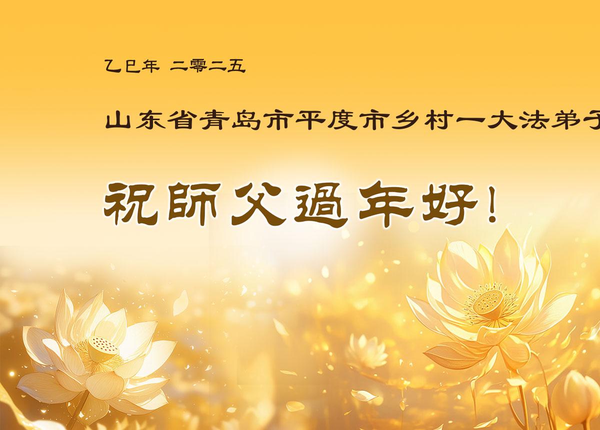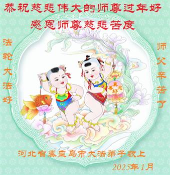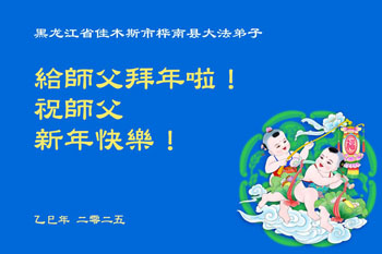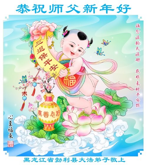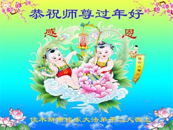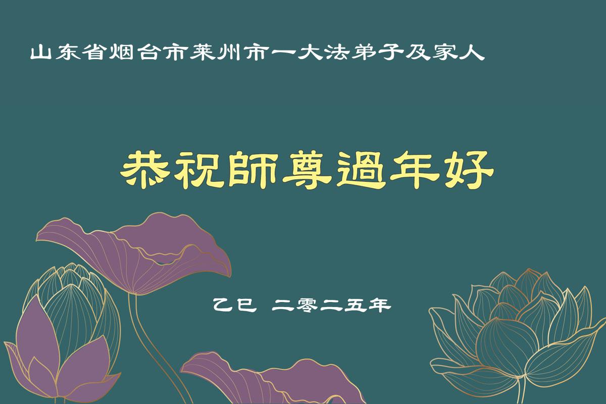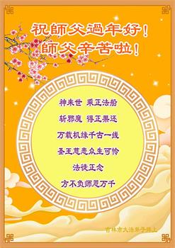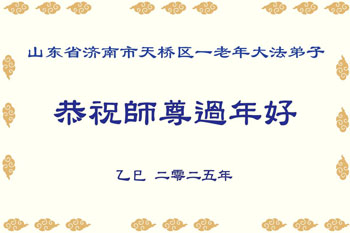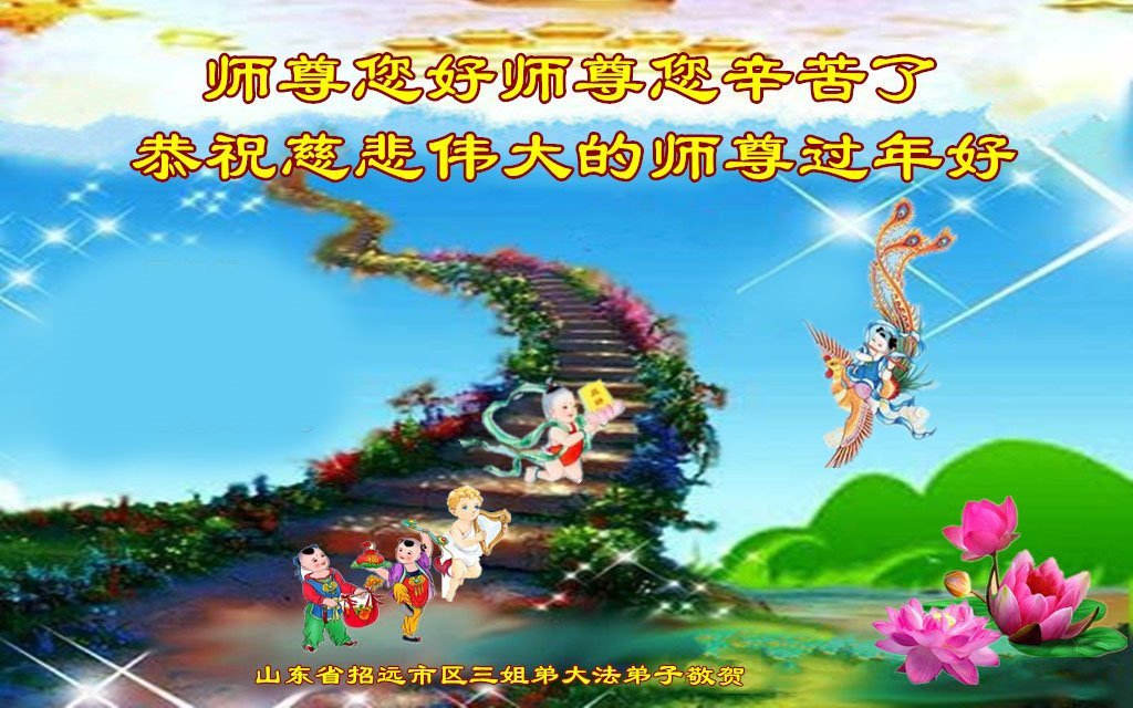 在中国新年来临之际,山东省济南市大法弟子给师尊拜年啦!恭祝师尊新年快乐!师尊新年好!法难中,每个大法弟子都在其中,这不是邪恶逞恶的地方,弟子愿倾尽生命之所有同化大法,做好三件事,不辜负师尊慈悲苦度。