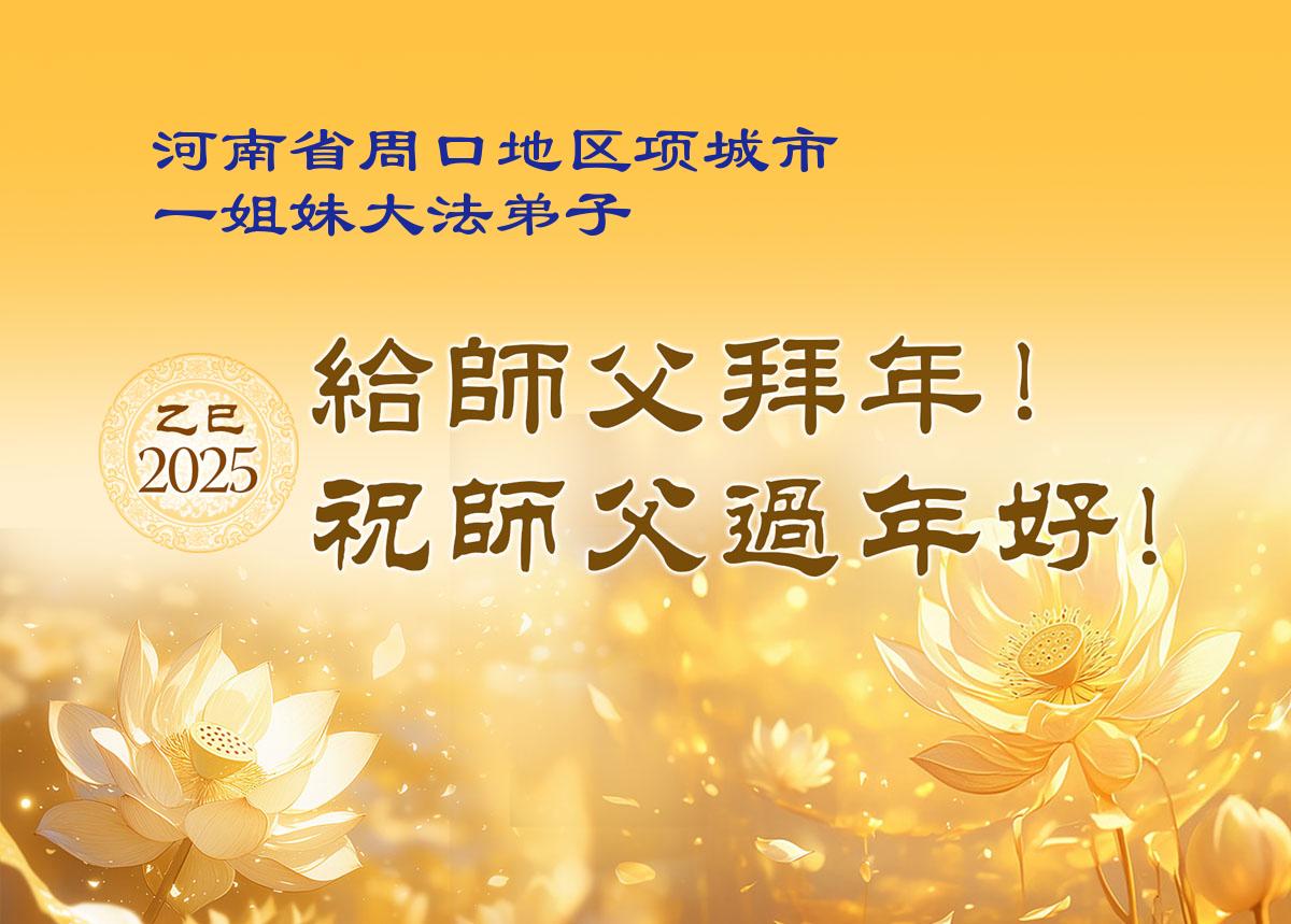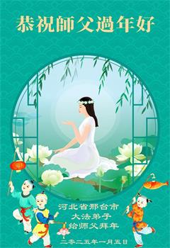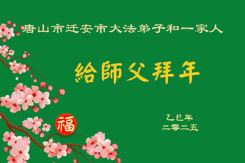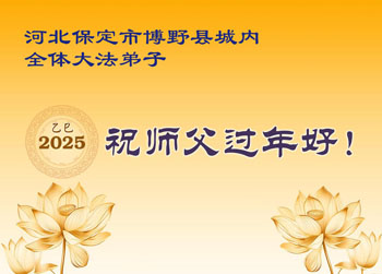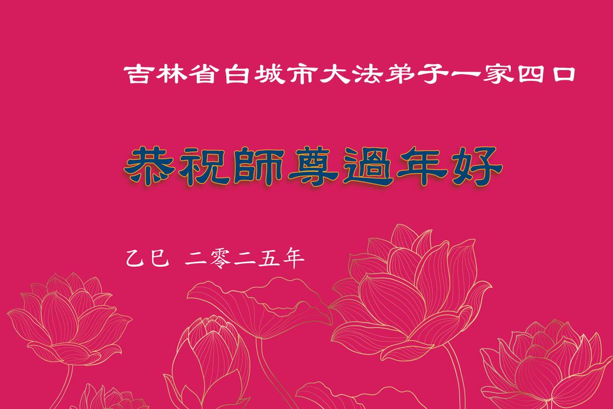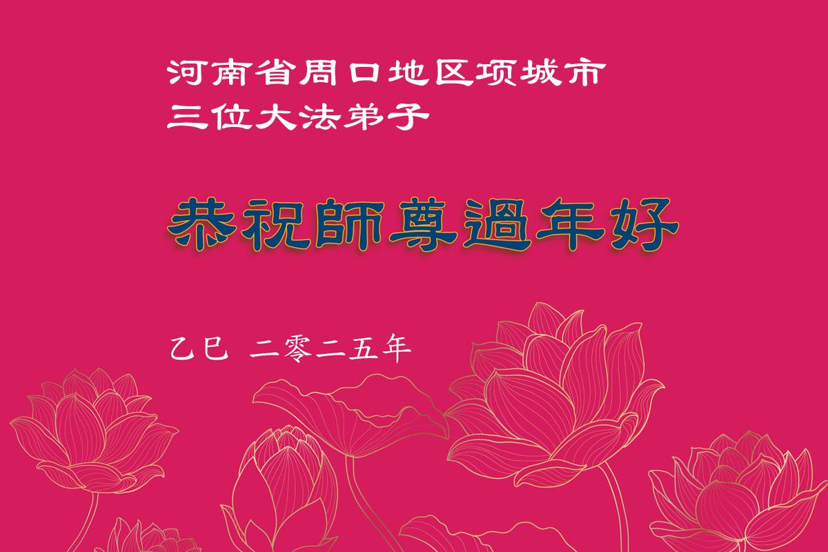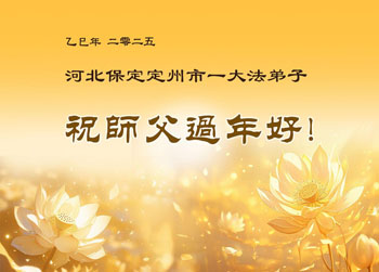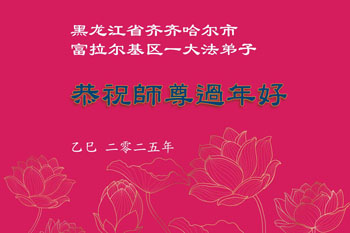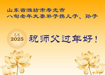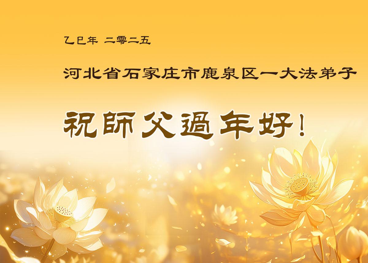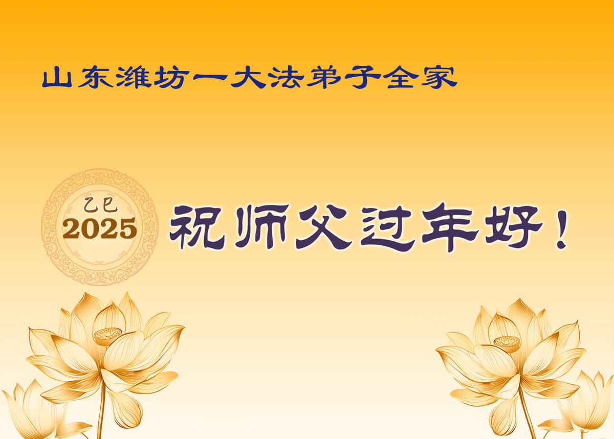 在中国新年来临之际,山东省济南市大法弟子给师尊拜年啦!恭祝师尊新年快乐!师尊新年好!法难中,每个大法弟子都在其中,这不是邪恶逞恶的地方,弟子愿倾尽生命之所有同化大法,做好三件事,不辜负师尊慈悲苦度。