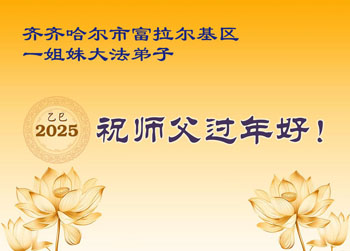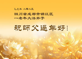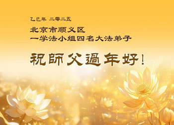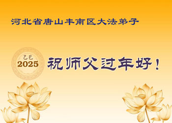 我们原来是一个大组学法的学员,后来分成多个学法小组,分布在多个城区,虽然目前没有集中在一起,但是我们的心一直是向往回归的路,决心跟师父回到美好的家园。在此我们所有学法小组的学员向师父表达我们的心声:师父您好,师父您辛苦了,师父您过年好!我们大家要继续学好法,做好三件事,努力救人,兑现誓约,不辜负师尊的慈悲苦度!叩谢师恩!