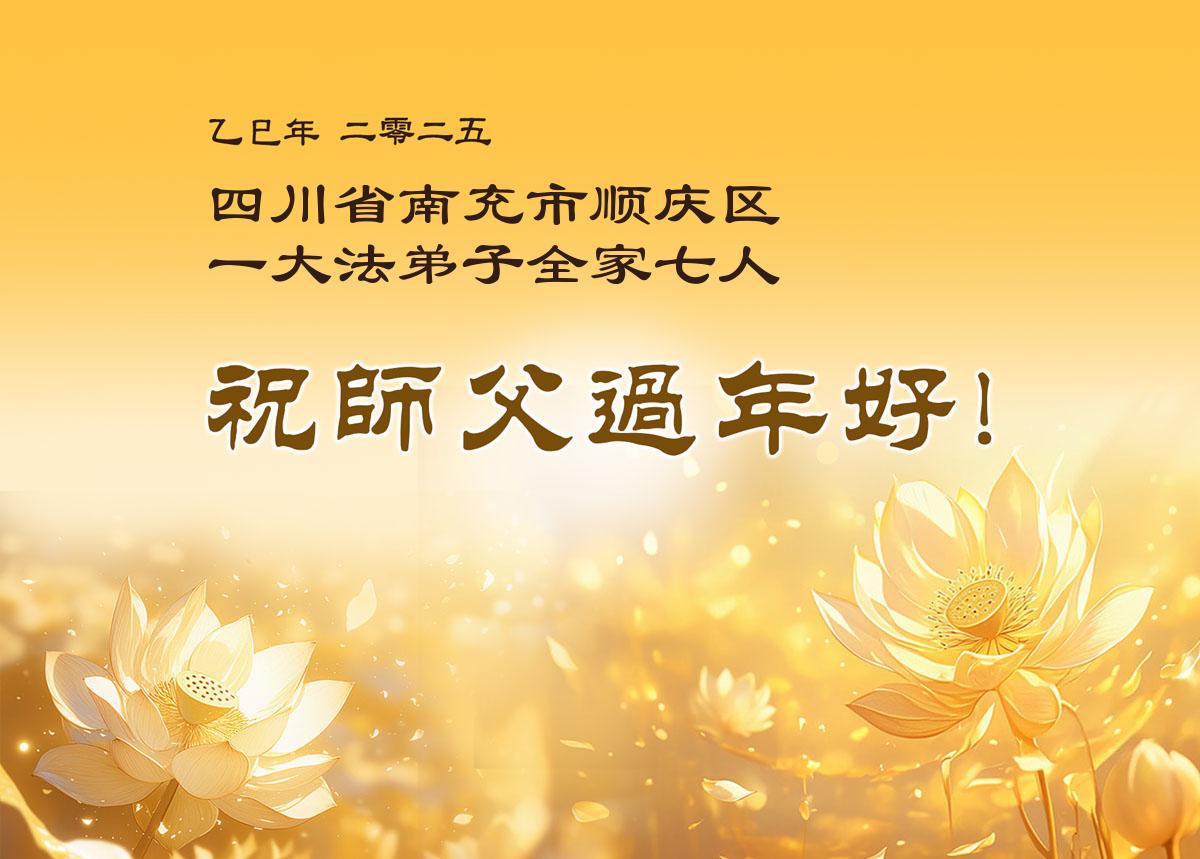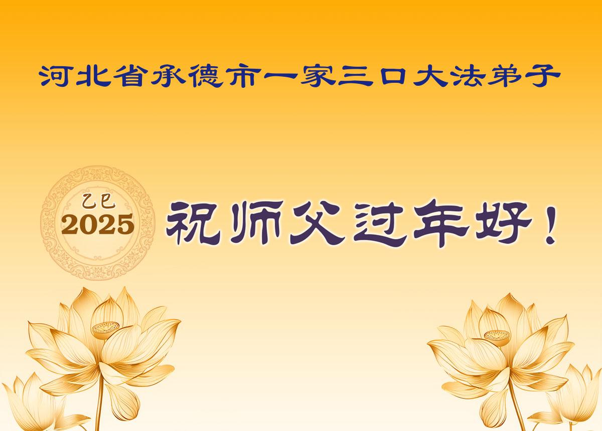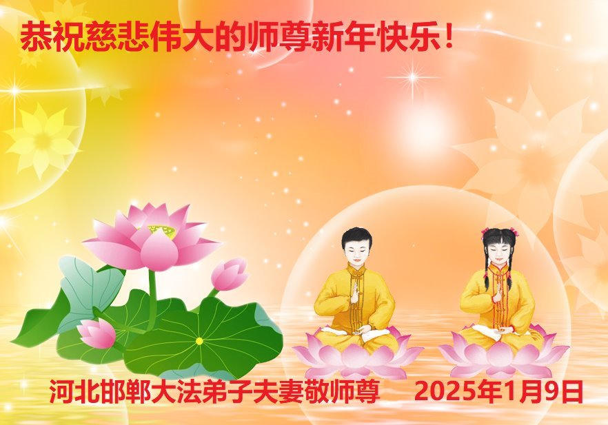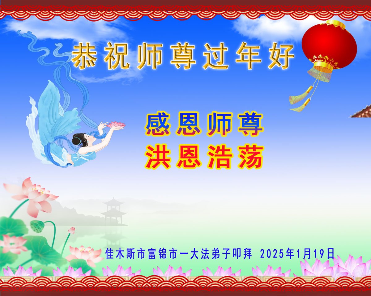弟子全家人感谢师父的慈悲救度和时时看护!恭祝师尊新年好!借此机会表达弟子对师父您的感恩,感恩师父您为弟子的无尽承受,感恩师父您给了弟子再生的机会。在修炼中,在过关过难中,也真正感受到了您的慈悲保护和您给予弟子的一切,弟子倾尽所有也无以回报,只有在师父您给铺就的这条修炼路上,勇猛精進,多学法,多救人,兑现誓约,跟师父您回家。弟子全家跪拜师尊!感恩师尊 !