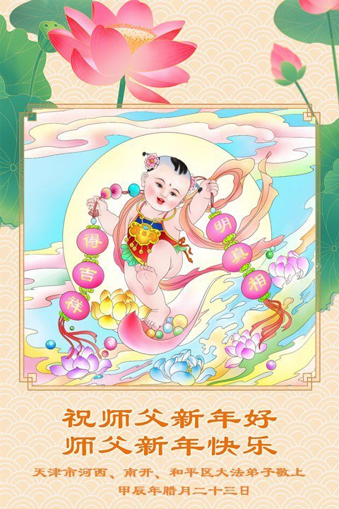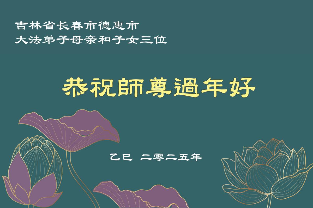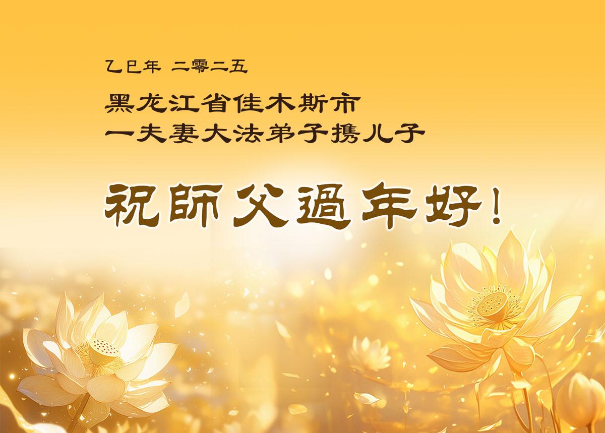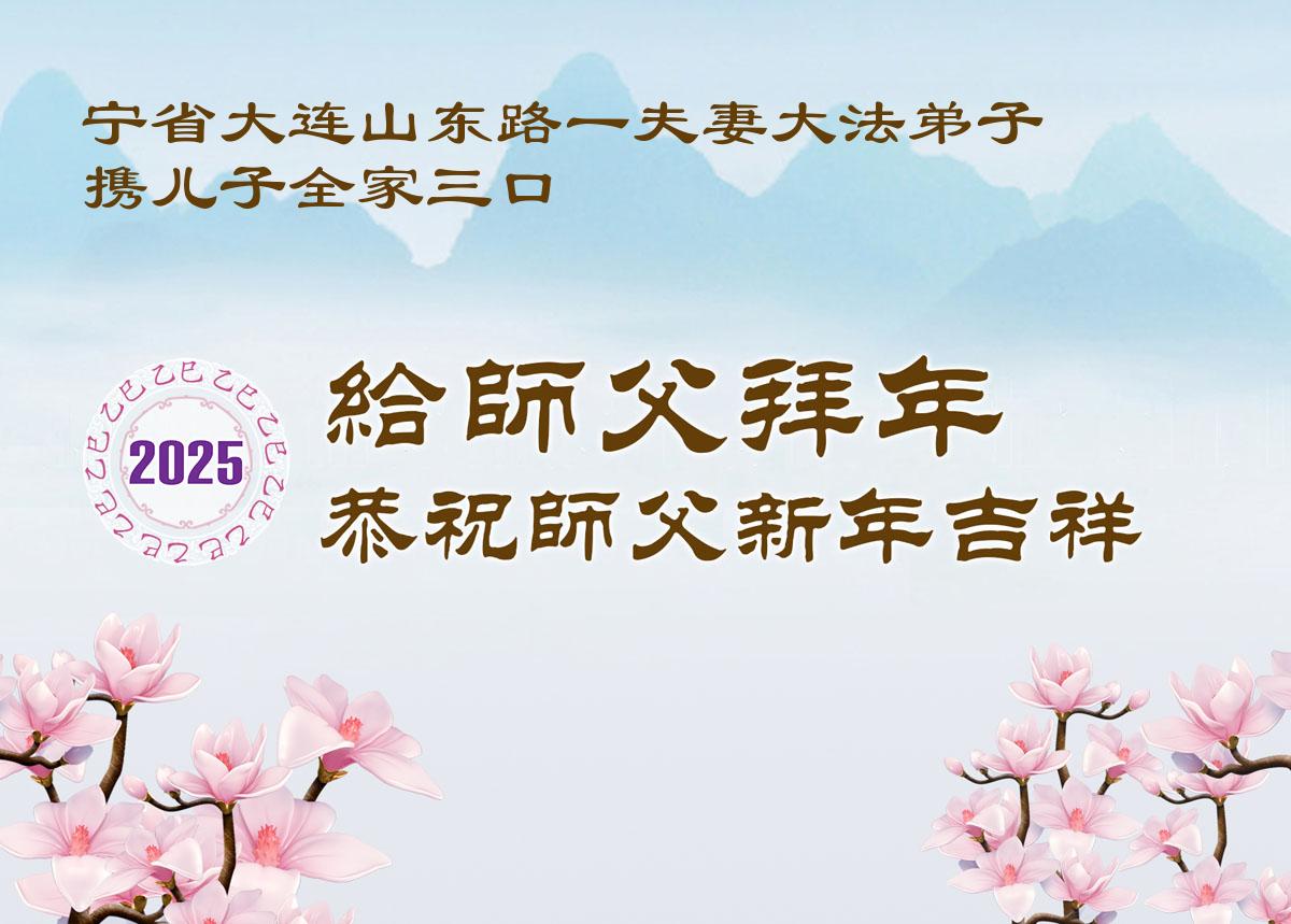 弟子全家人感谢师父的慈悲救度和时时看护!恭祝师尊新年好!借此机会表达弟子对师父您的感恩,感恩师父您为弟子的无尽承受,感恩师父您给了弟子再生的机会。在修炼中,在过关过难中,也真正感受到了您的慈悲保护和您给予弟子的一切,弟子倾尽所有也无以回报,只有在师父您给铺就的这条修炼路上,勇猛精進,多学法,多救人,兑现誓约,跟师父您回家。弟子全家跪拜师尊!感恩师尊 !