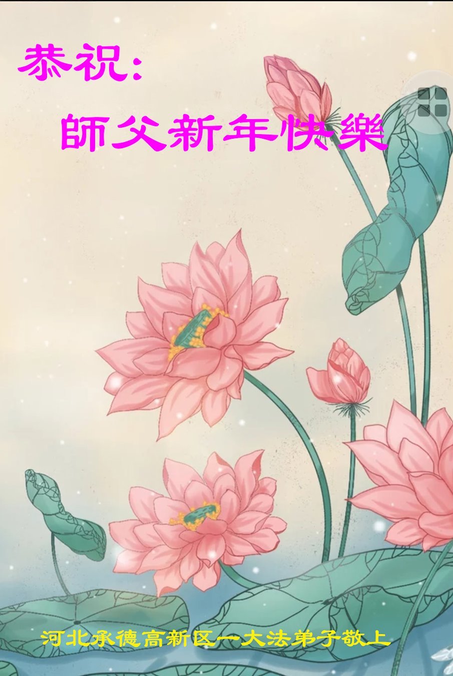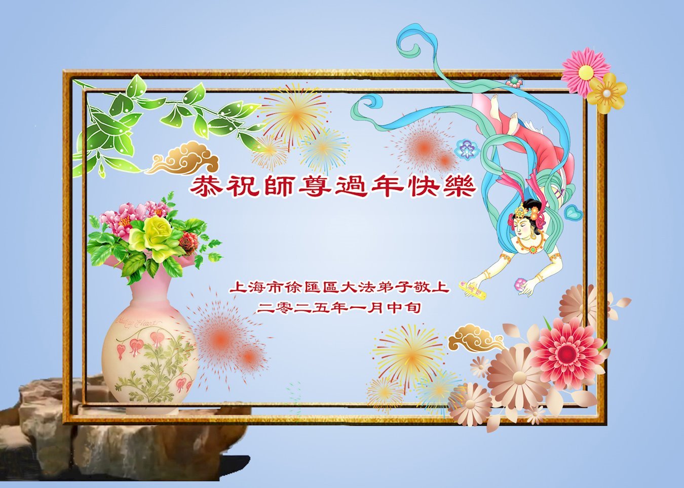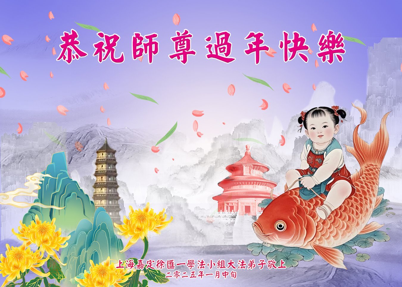 在中国新年即将到来,辞旧迎新,普天同庆的时刻,弟子们怀着万分感恩的心,恭祝慈悲伟大的师尊新年快乐!