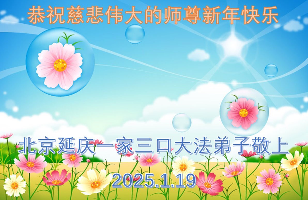 大法弟子们在贺词中写道:师尊为度化弟子,拯救苍生,归正大穹,所承受和付出的一切,弟子们会永远铭记于心,并激励着弟子在返本归真的大道上勇猛精進。在这乾坤再造、苍宇众生都在选择未来的历史时刻,无论世间风云如何变幻,大法弟子都将坚如磐石,随师正法,兑现誓约。