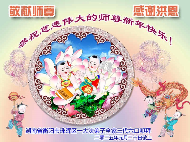 趁此传统佳节之际,中国湖南娄底市娄星区一学法小组的大法弟子恭祝师尊过年好!恭祝慈悲伟大的师尊新年快乐!