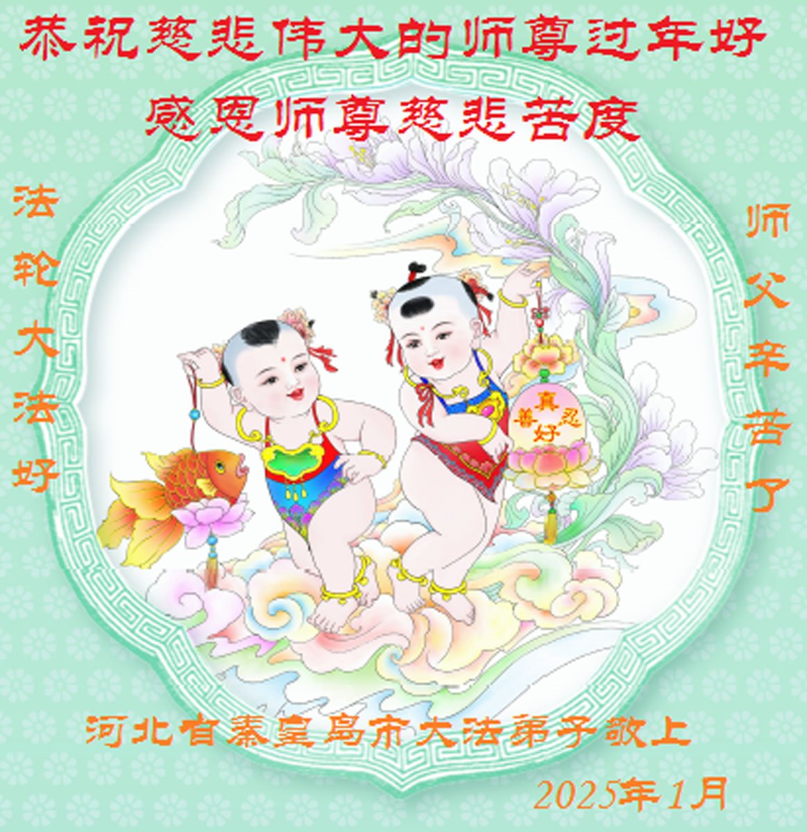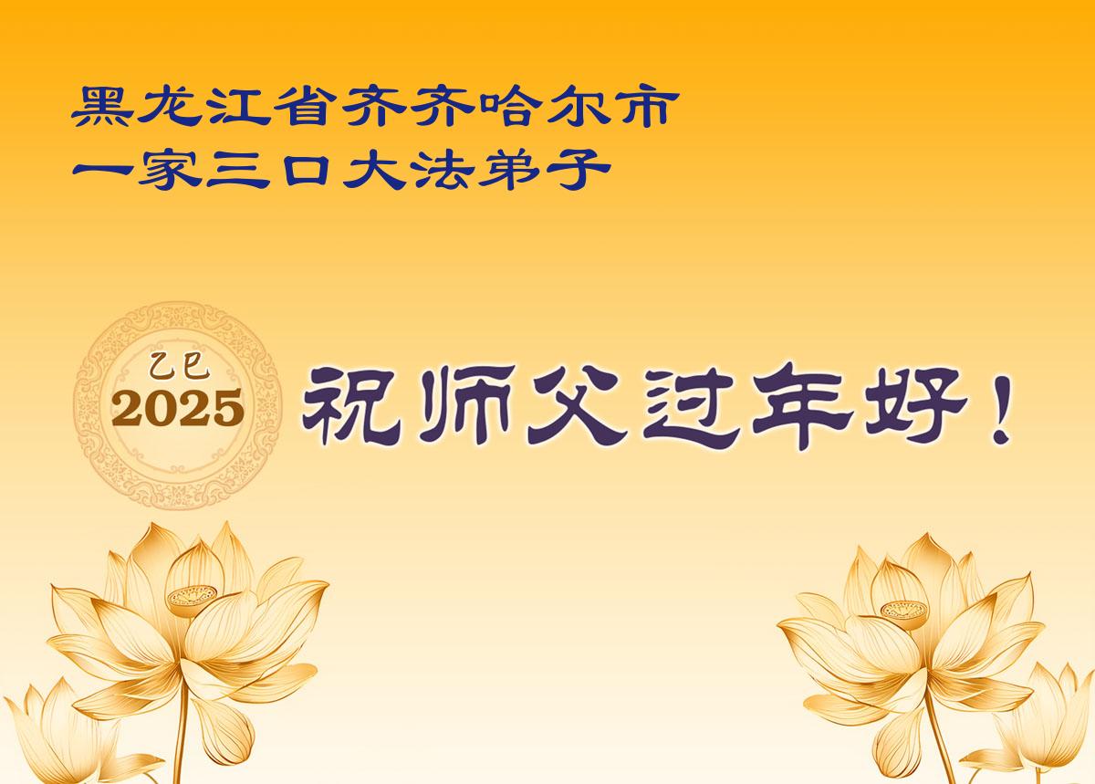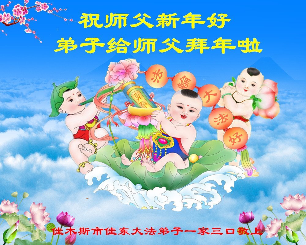 慈悲伟大的师父:您好!弟子一家给您拜年了!