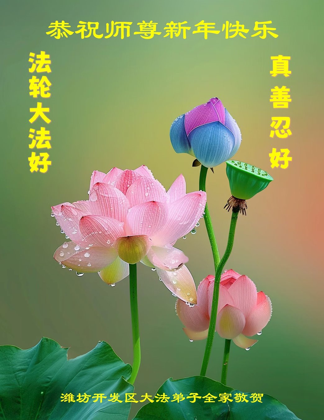 新年伊始弟子恭祝慈悲伟大的师尊新年快乐!师尊您辛苦了!弟子多么希望您少一些操劳,多一份欣慰与快乐!请您放心,我们绝不会辜负您的期望,走好最后修炼路,兑现使命,圆满回天。