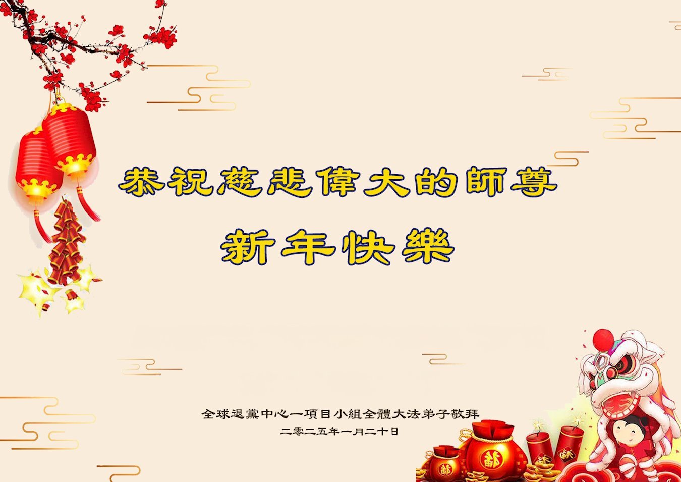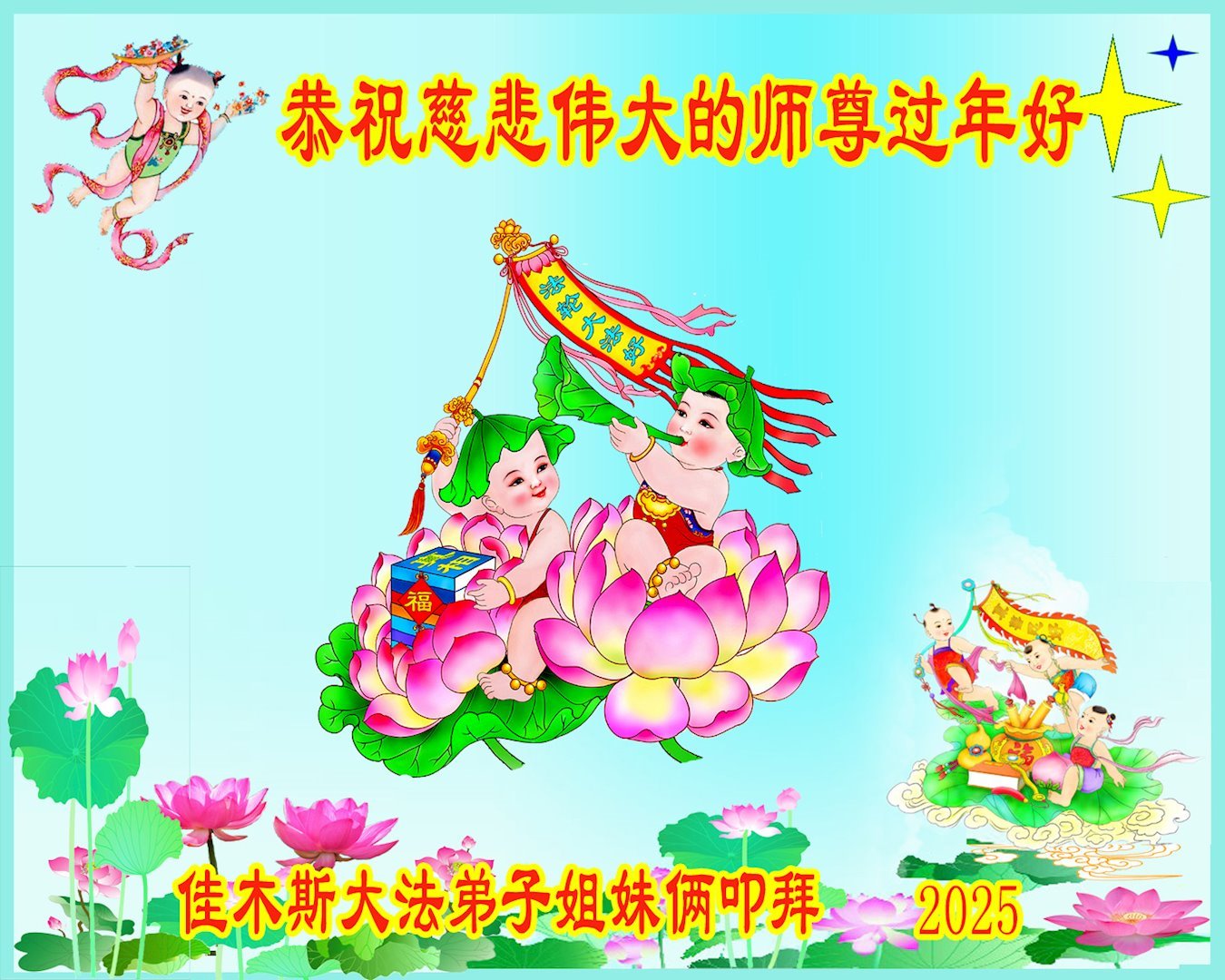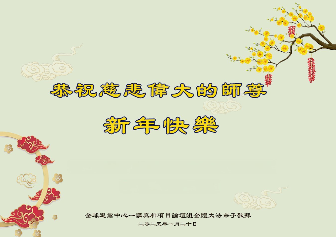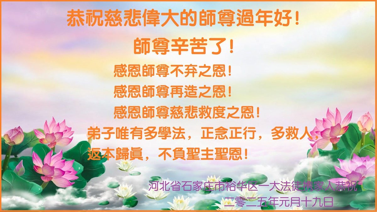 <英文版: https://en.minghui.org/html/articles/2025/1/30/224458.html>中国各地传真相大法弟子恭祝慈悲的师尊新年好
