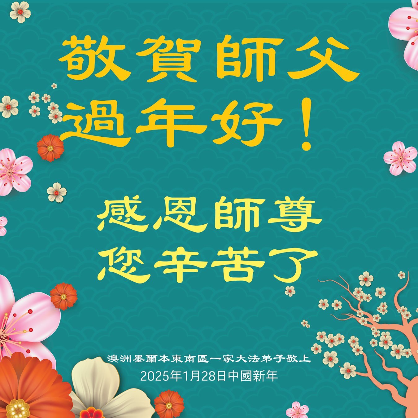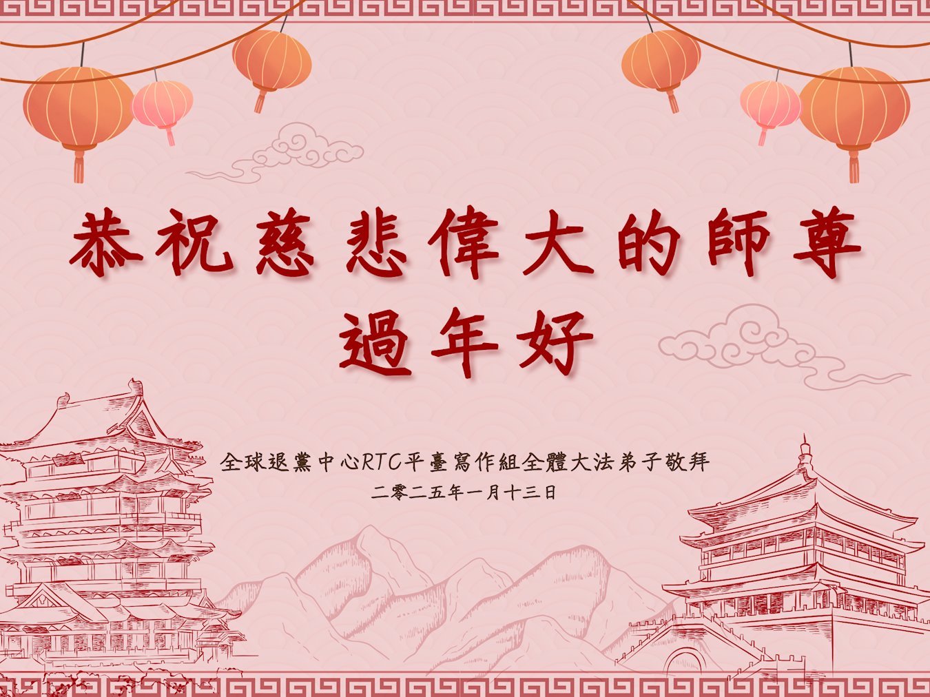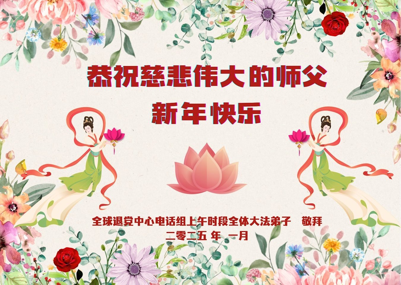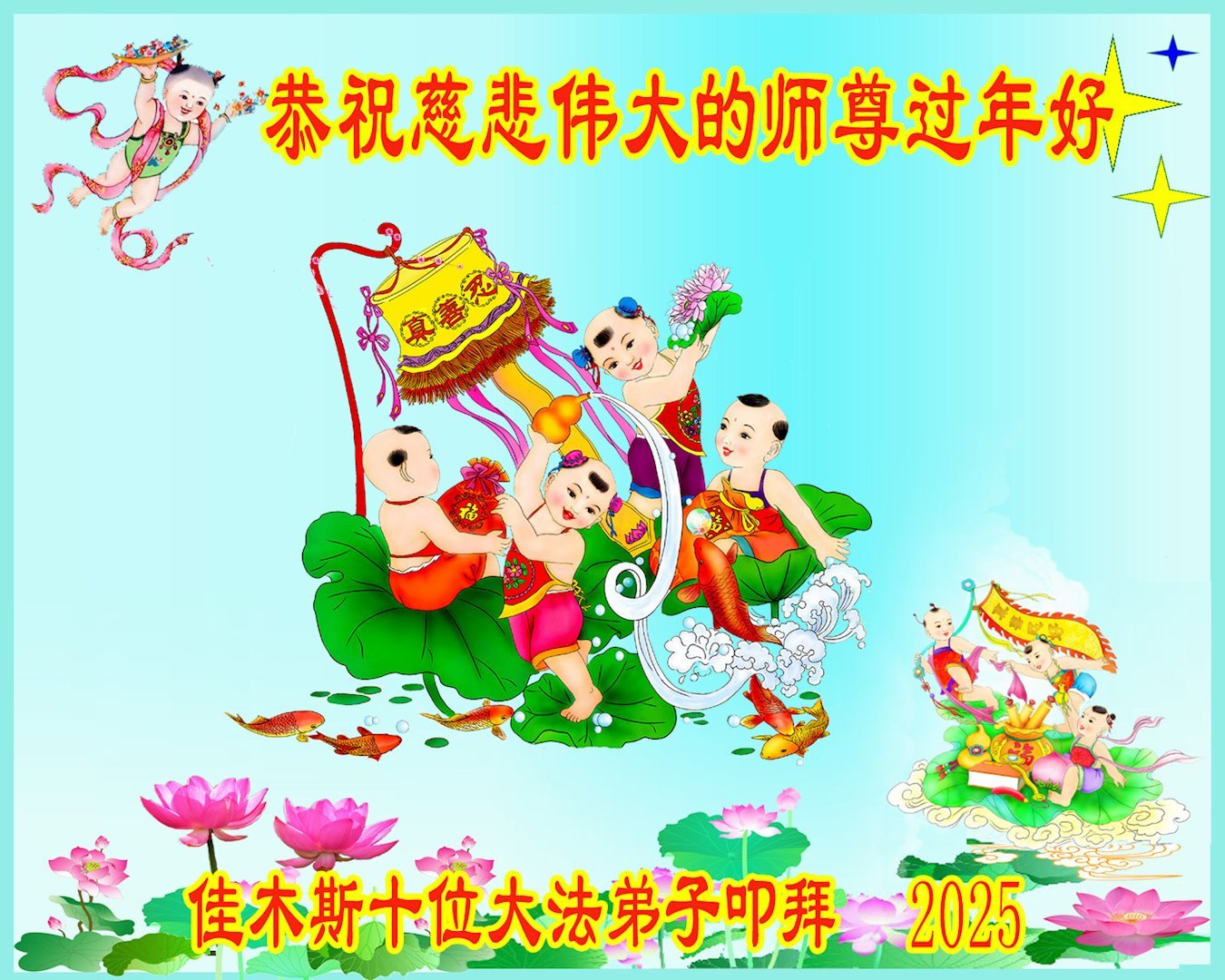 <英文版: https://en.minghui.org/html/articles/2025/1/30/224458.html>中国各地传真相大法弟子恭祝慈悲的师尊新年好