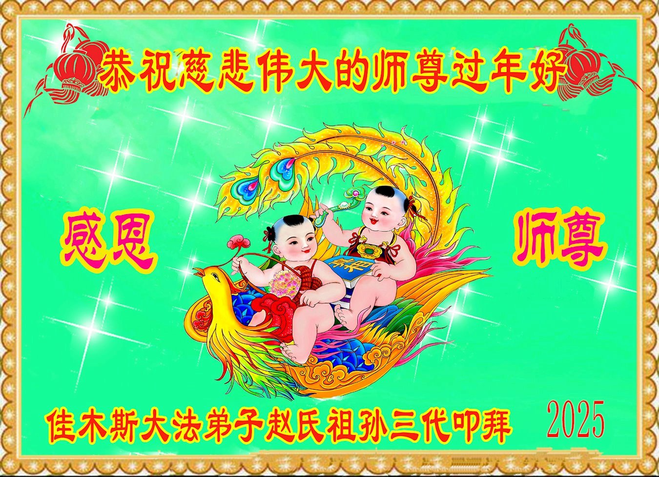 弟子全家感恩师父的慈悲苦度。2025乙巳年到来之际,弟子们恭祝慈悲伟大的师父过年好!