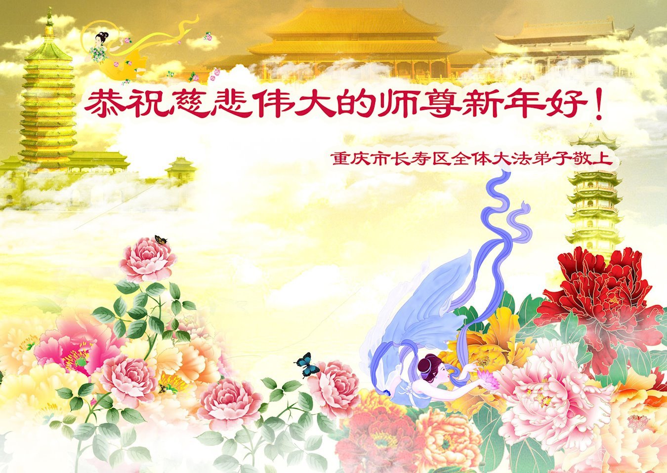 恭祝慈悲伟大的师尊新年快乐!谢师尊无上恩典!
