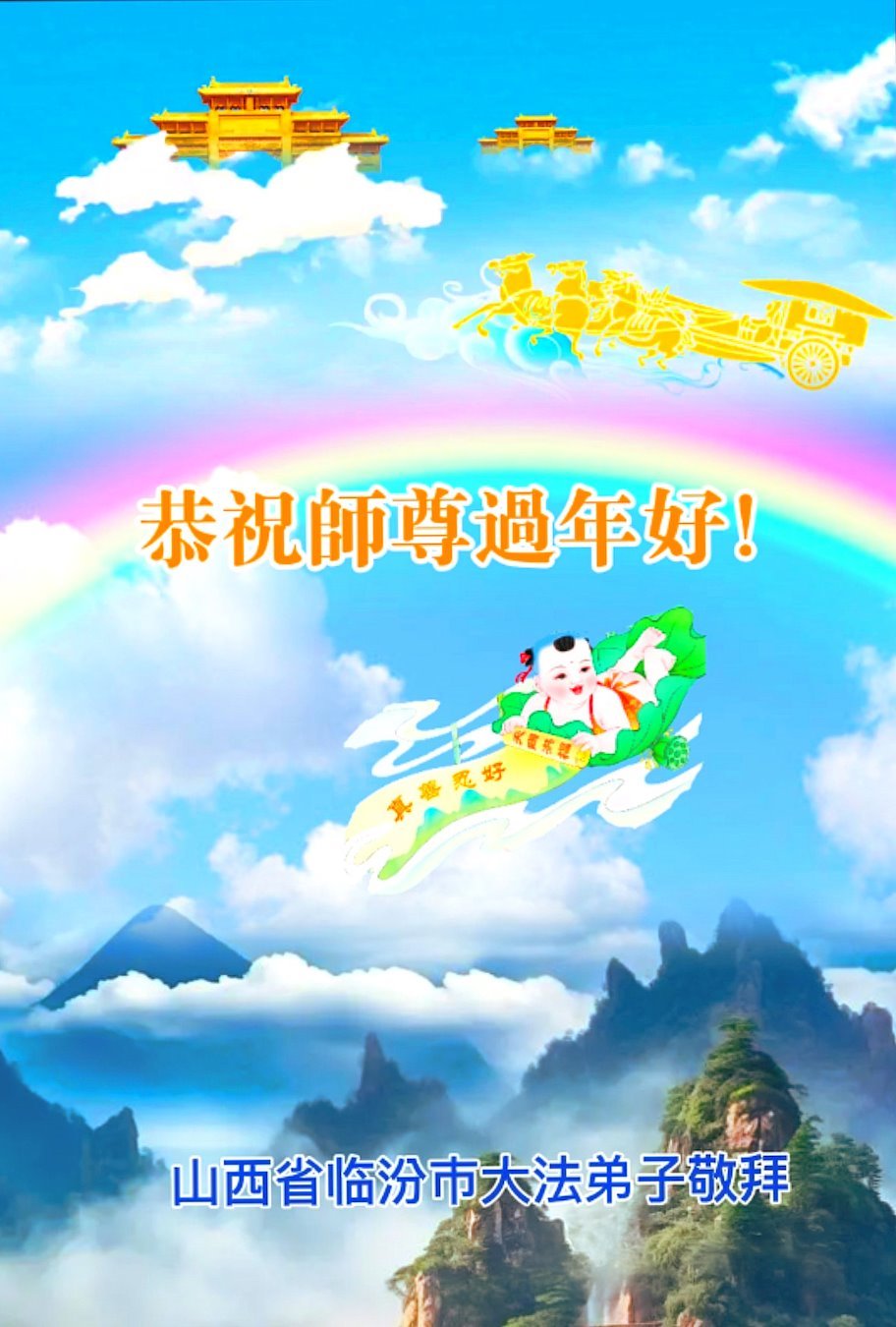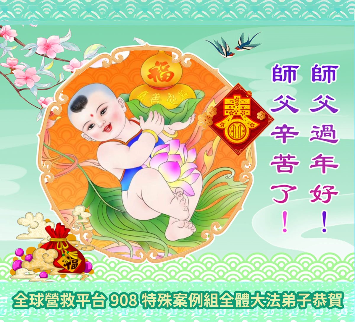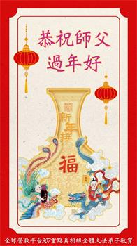 慈悲的师父,过年好!在此佳节之际,感恩师尊慈悲庇护。弟子们在新的一年,继续做好三件事,勇猛精進,救度世人。